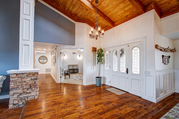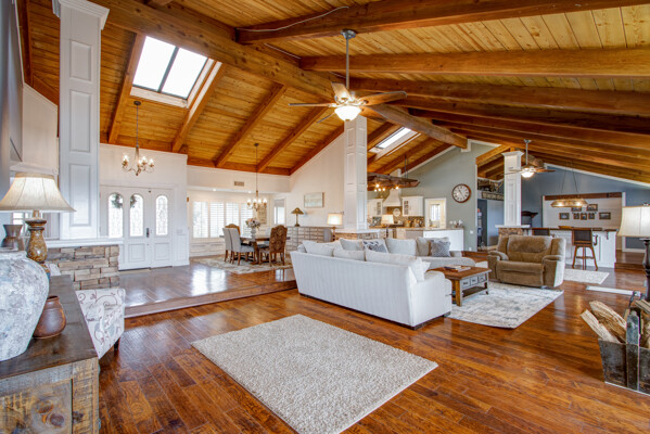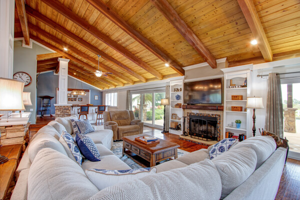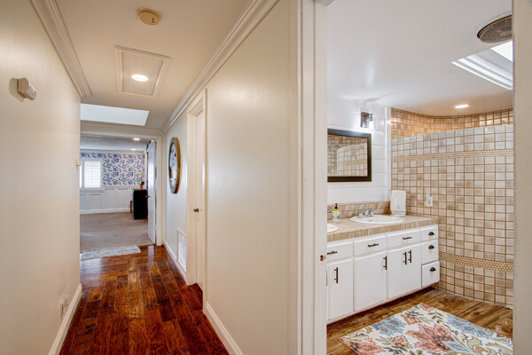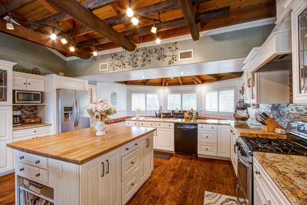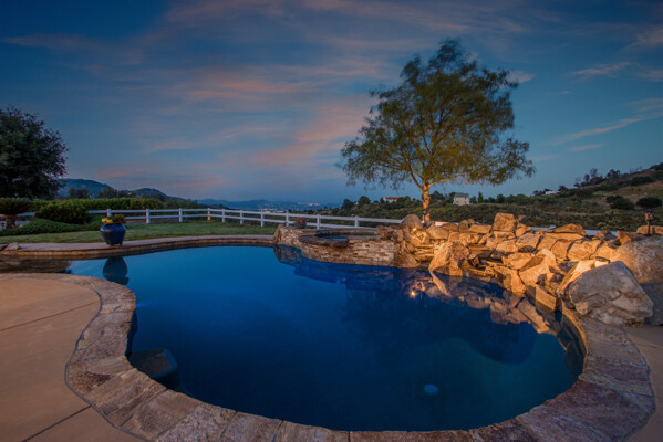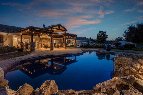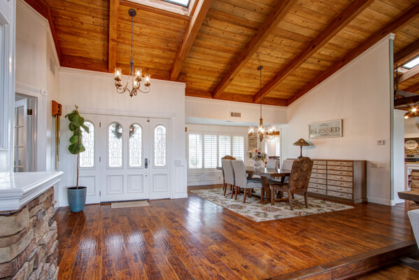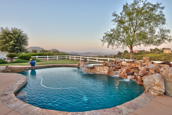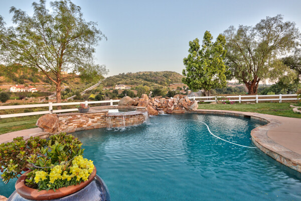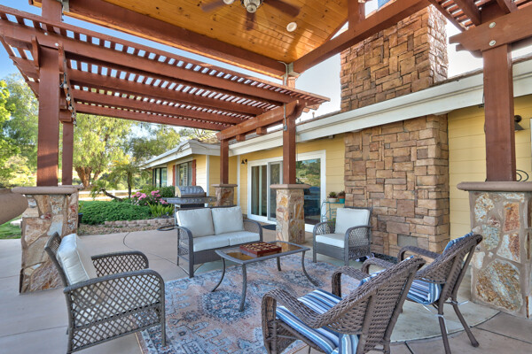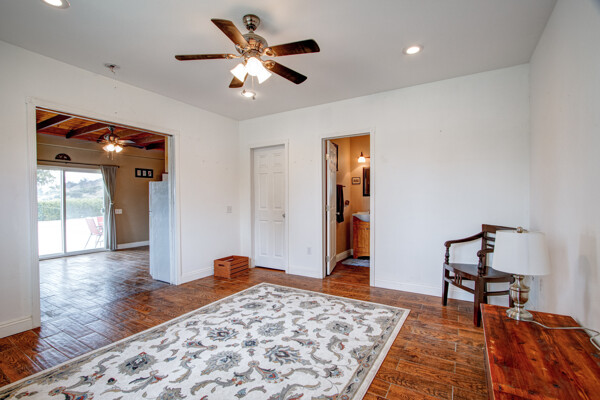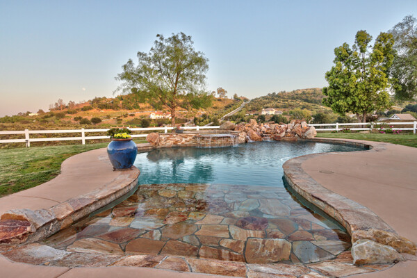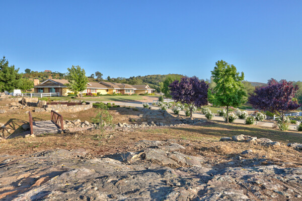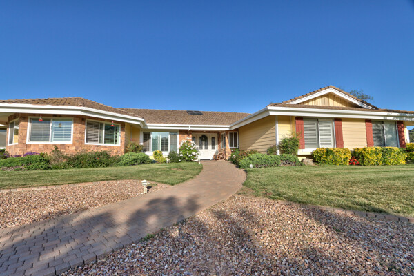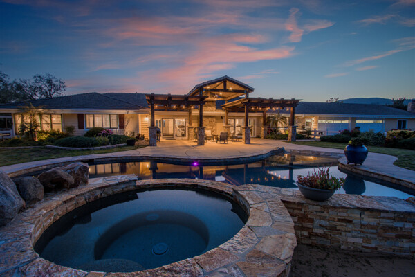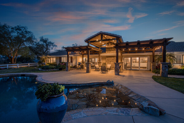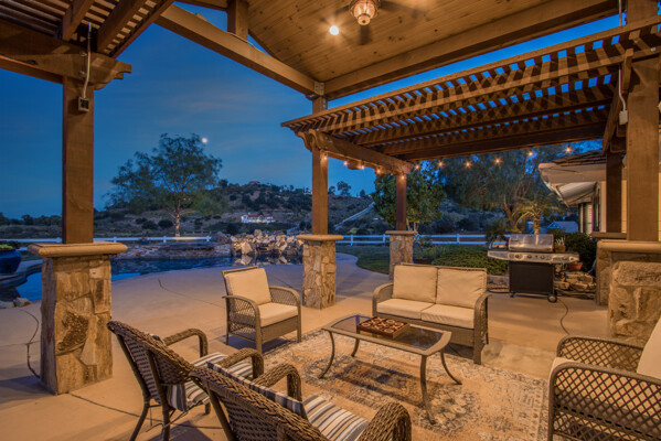 Welcome to this spectacular ranch retreat in the desirable La Cresta community. This gated majestic one-story pool estate checks all the boxes and is in close proximity to town. The sprawling yet private lush grounds are nestled among the breathtaking natural beauty of this country setting, with a rock stream bed and bridge, artificial grass, stone steps and planters, fruit trees, a vineyard and flower garden. As you drive up the concrete circular driveway passing the corral, lean-to cover and storage/tack shed, you'll see this stunning renovated estate atop the gradual knoll with amazing views of the mountains, canyon, valley and city lights. Step into the fantastic great room with beautiful hardwood floors, vaulted wood beam and wood ceiling, including a large family room with fireplace, dining room, game room with pool table and bar, and large chef's kitchen with two islands and self closing cabinet doors and drawers, wet bar and separate breakfast room. This property also boasts a very large primary bedroom suite with a barn door leading to the highly upgraded primary bathroom with custom walk-in shower, stand-alone soaking tub, double sinks and extra-large walk-in closet. Additional features are an attached guest/maid or mother-in-law apartment with its own living room with fireplace, kitchen, full bathroom and bedroom with walk-in closet (which was converted from a two-car garage and has added an additional 492 square feet), 6 skylights, recessed lighting, extensive use of custom molding, crown molding, wainscoting, ship-lath and custom bench seating. The gorgeous sparkling salt pool and spa, large beam patio cover and spacious patio is perfect for entertaining. An extra-large 4 car garage with workbench and storage, RV parking and hookups, horse shoe pit, in-ground roasting pit, stone walkways, dual HVAC systems and water heaters, and too many additional extras to list. This one is must see!