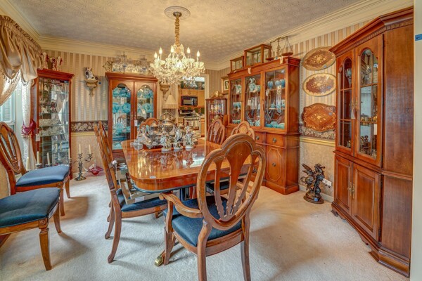 Open Floor Plan For Entertaining | Formal Dinning with Chandelier