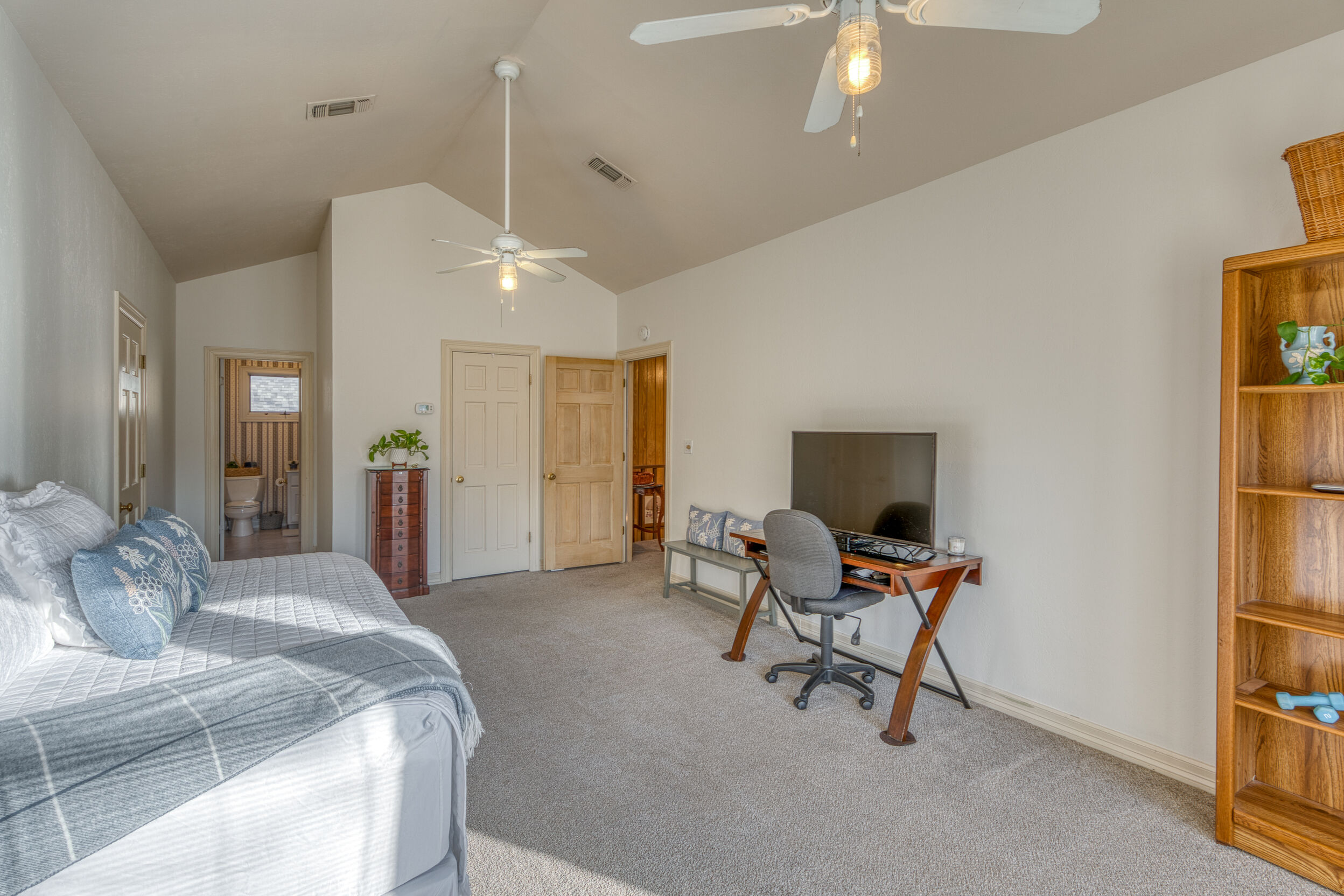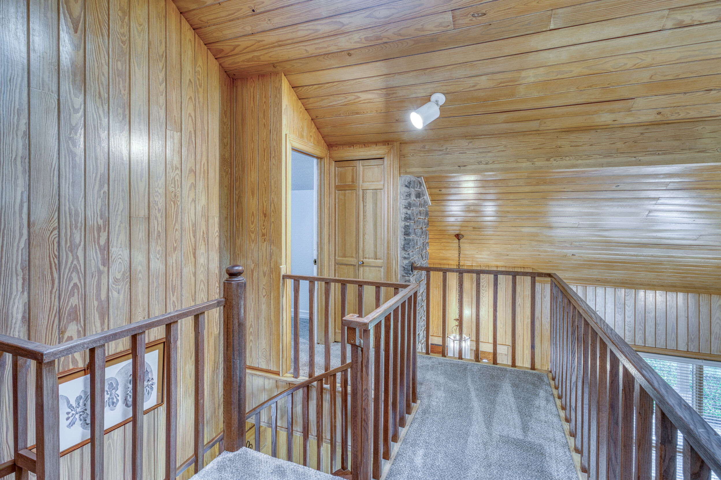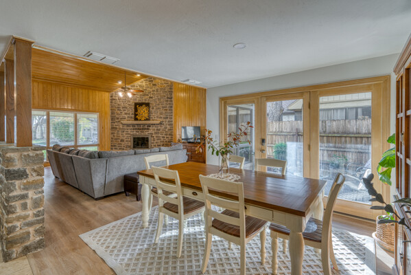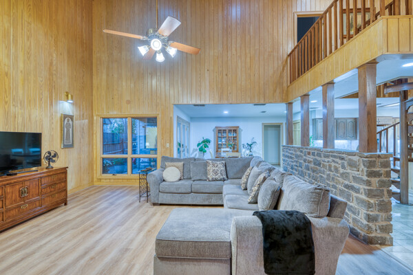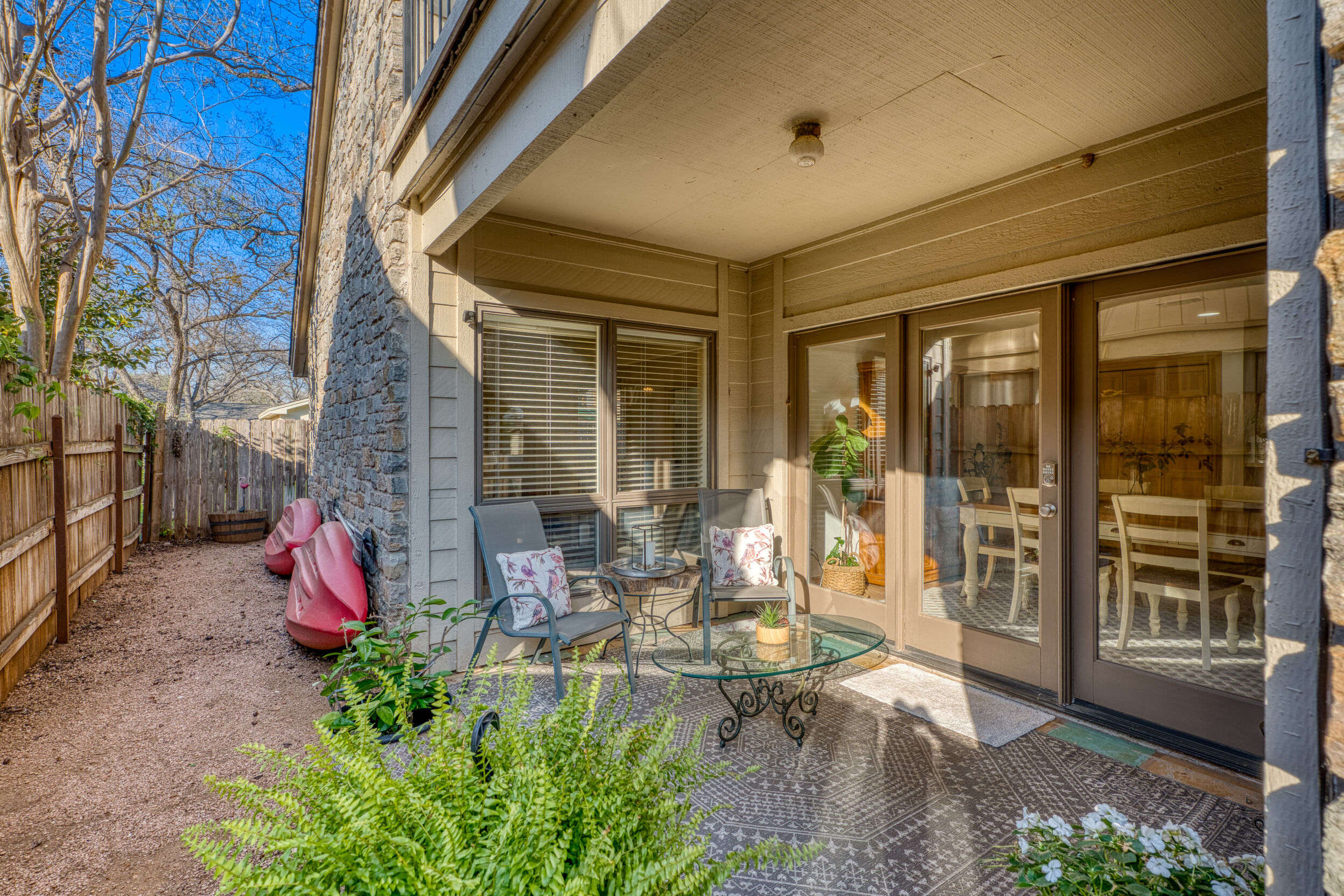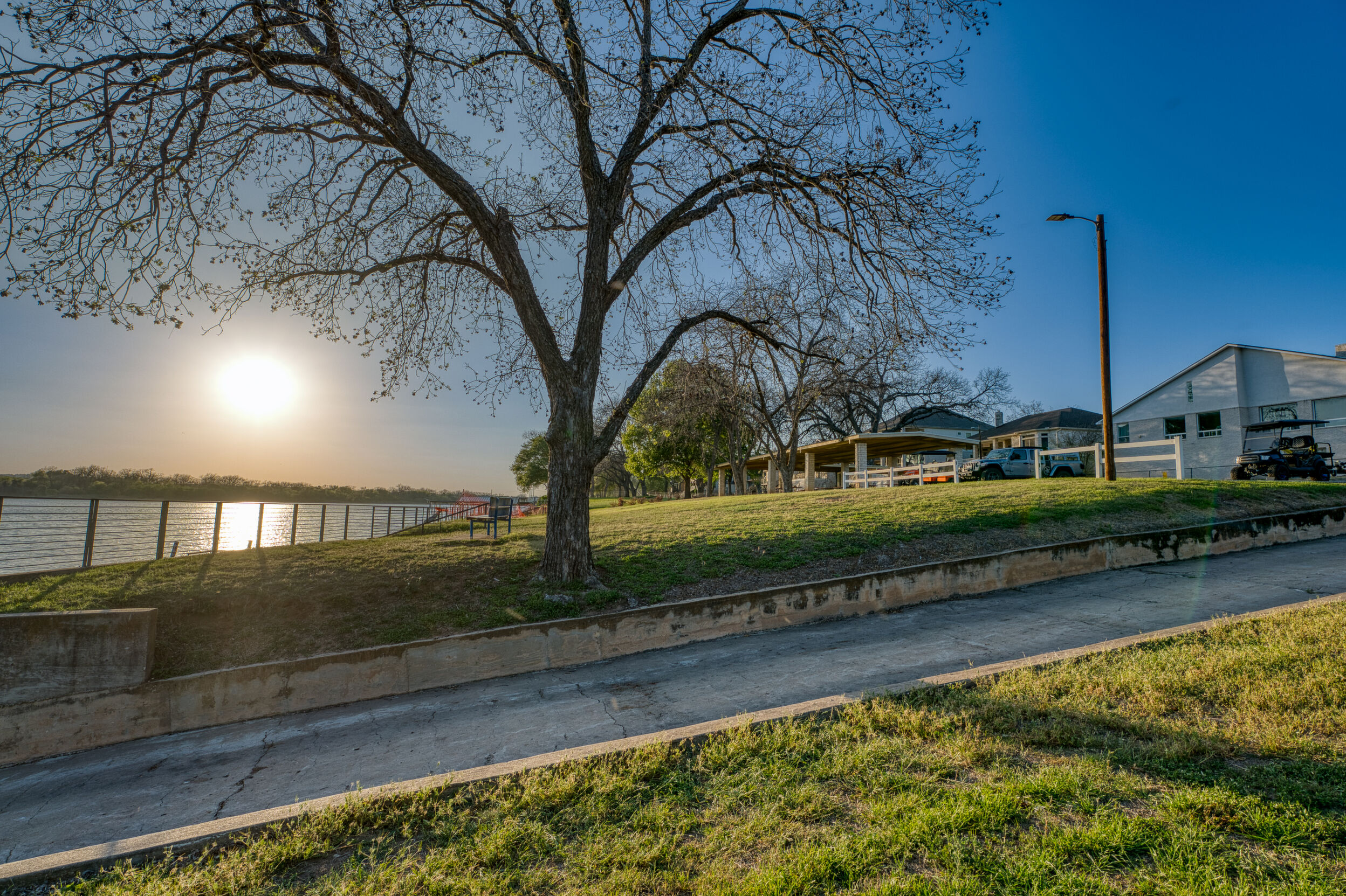 Welcome to this charming 4 bedroom, 3 bath home located in the orchard of Meadowlakes , a gated, golf course neighborhood on the shores of Lake Marble Falls. Residents enjoy 24-hour security, an 18 hole golf course and new clubhouse coming soon, waterfront property owners park with boat ramp, fishing dock, and scenic lake access, all just minutes from downtown Marble Falls. From the moment you arrive, the stunning curb appeal makes a lasting impression, with mature, towering trees and a circular drive that adds both beauty and convenience. This cozy yet spacious home is full of character, featuring soaring ceilings, a stunning floor-to-ceiling masonry fireplace, and warm natural wood accents throughout. The inviting front porch sets the tone, while a peaceful side porch offers the perfect spot for morning coffee or relaxing evenings. Inside, the flexible floor plan includes a primary suite on the main level along with an additional bedroom and full bath downstairs, ideal for guests or multi-generational living. Upstairs, you’ll find two additional bedrooms and a full bath, along with a charming balcony that fills the space with beautiful natural light. Enjoy Lake Marble Falls with ease, and take advantage of the unbeatable location less than half a mile from the community lakeside park, where you can launch your boat, fish, or simply unwind by the water.