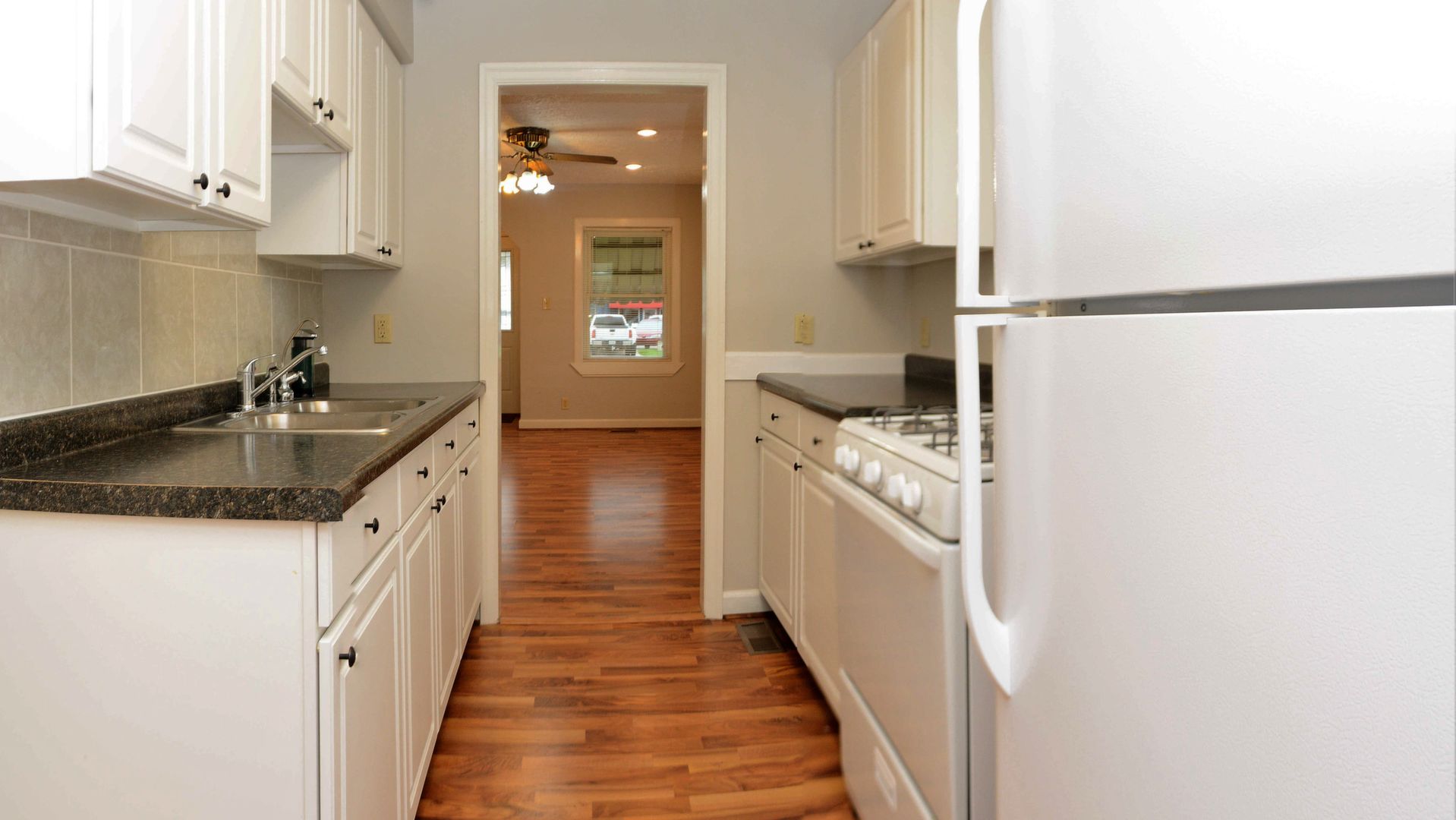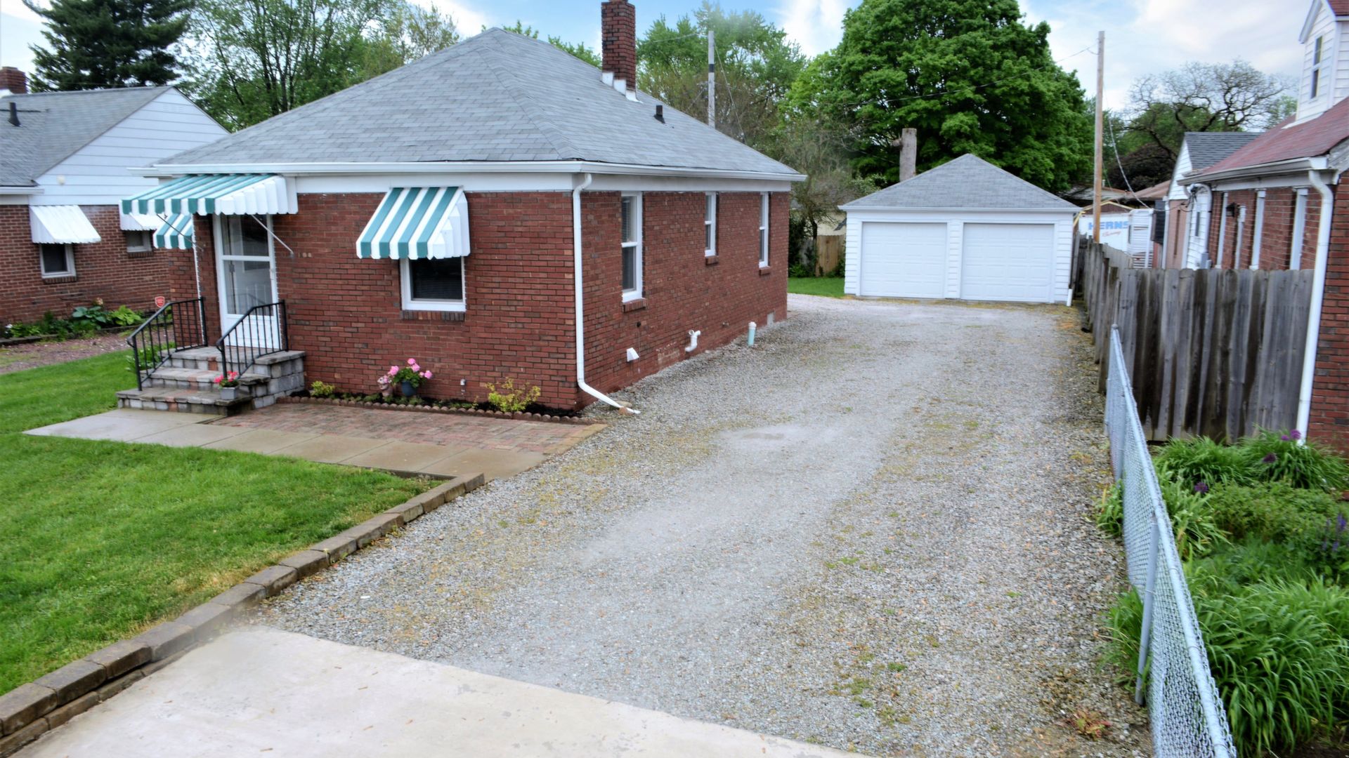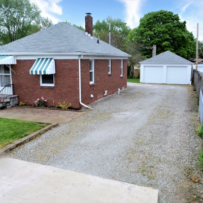 Move in ready brick bungalow with basement and oversized 2 car detached garage. Fresh paint everywhere, laminate floors and hardwoods under carpet in bedrooms. Replacement windows, newer exterior doors, updated plumbing, light fixtures, kitchen and bath. Breakfast nook overlooks fenced back yard. All appliances included. Neat and clean basement! Close to shopping/restaurants and 465!