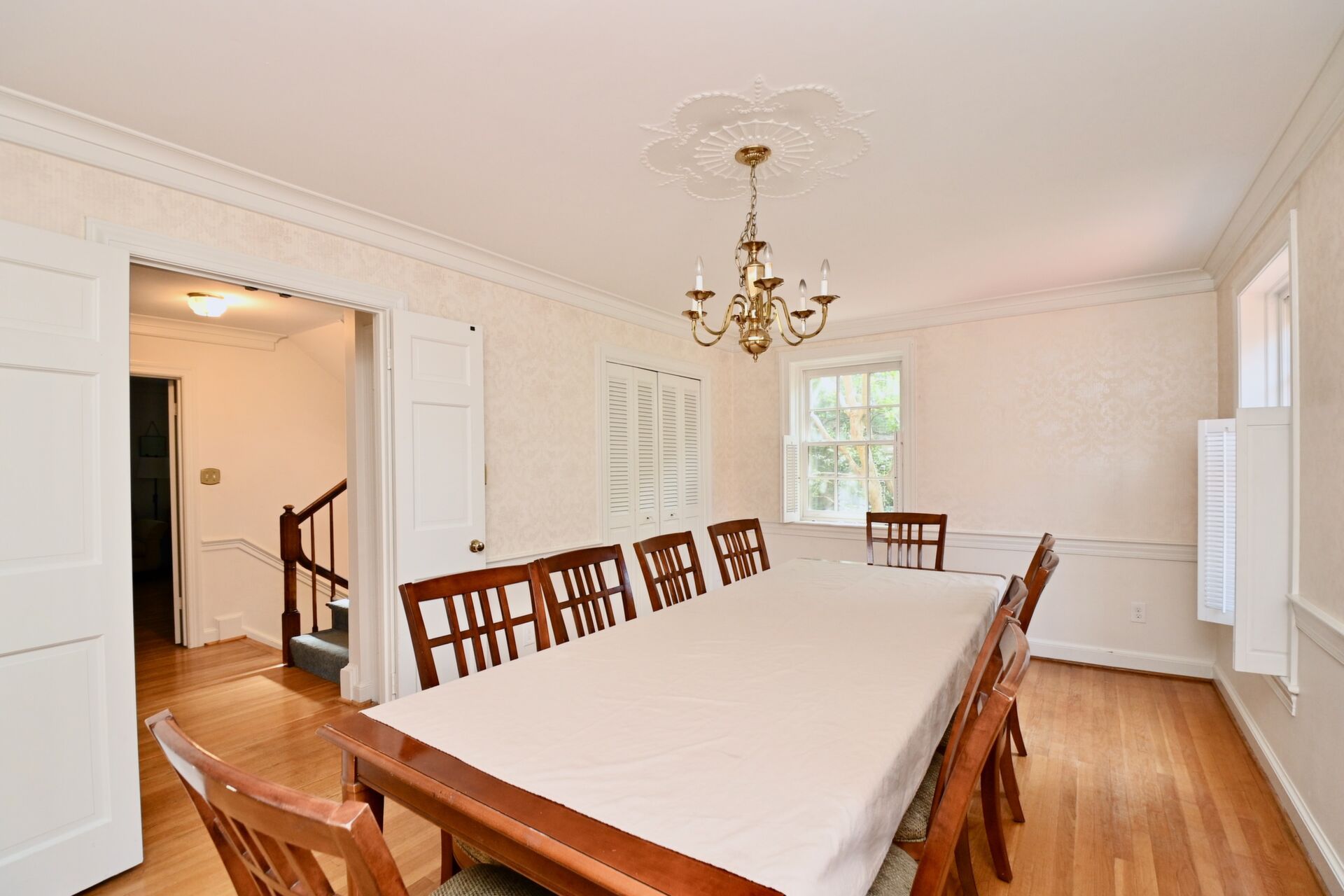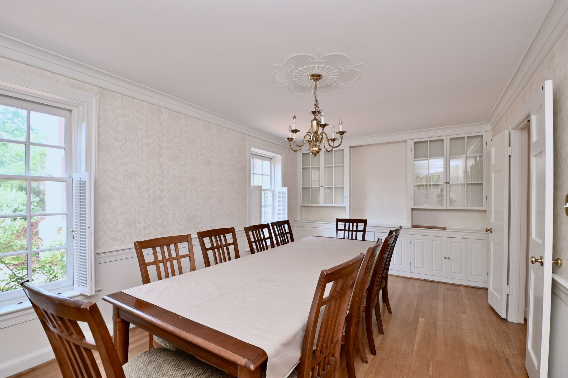 This home boasts a large kitchen with a dumbwaiter, formal dining room, fireplaces and so much more.