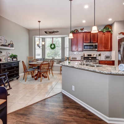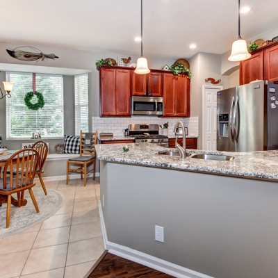 Don’t miss the opportunity to live in DeLand’s most desirable VICTORIA PARK COMMUNITY. This recently renovated home features 3 bedrooms, 2 baths, and a 2 car garage. Enter the home through the large open foyer with a transom window allowing for rays of natural lighting. The floorplan showcases a SPACIOUS OPEN KITCHEN, great room and split bedroom plan. The kitchen is a chef’s delight with lots of 42” cupboards, NEW GRAINITE COUNTERTOPS, subway tile backsplash and stainless appliances including the REFRIGERATOR, RANGE, DISHWASHER AND MICROWAVE. Designer touches throughout include the BAY WINDOW WITH A WINDOW SEAT in the breakfast nook and open shelving to display your favorite keepsakes. Large closet pantry. Pendant lighting above the breakfast bar. Tiled flooring in the kitchen and breakfast nook area. The flex room is great for a formal dining room, playroom, den or office space. The oversized master suite includes 2 large walk in closets. The master bath features NEW DESIGNER TILE FLOORING, soaking tub and separate tiled shower, double vanities and new lighting. Laundry room with cupboards for extra storage space. WASHER AND DRYER INCLUDED. 2nd bathroom has new tile flooring, tiled bath and new lighting. NEW A/C AND HOT WATER TANK REPLACED IN 2020. Great home for entertaining. Open the triple sliding doors in the great room for additional entertaining area in the 13x18 covered and screened patio overlooking the beautifully landscaped private backyard . Large corner lot. Only minutes to I-4 for an easy commute. Victoria Park offers something for everyone. Enjoy golf at Victoria Park's championship golf course and dinner at Sparrows Restaurant, 3 heated swimming pools, 3 fitness centers, lighted tennis and pickle ball courts, volleyball court, playground and walking trails around beautiful Lake Victoria. Located in the Village Center is Advent Health medical center, restaurants, florist, hair salon and more. Minutes to historic Downtown Deland, Publix, Starbucks, shopping, restaurants and Stetson University. Monthly HOA fee includes HD cable, high speed internet and reclaimed water for irrigation.