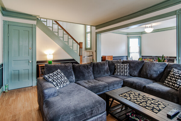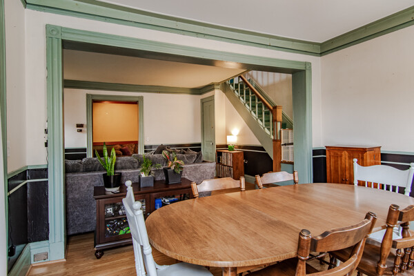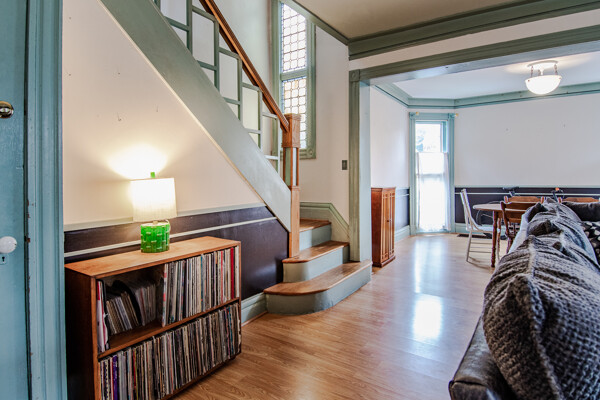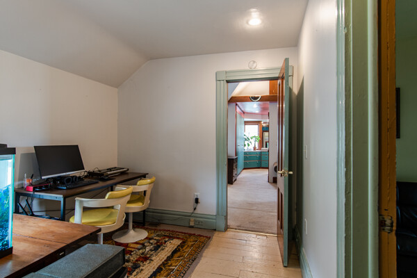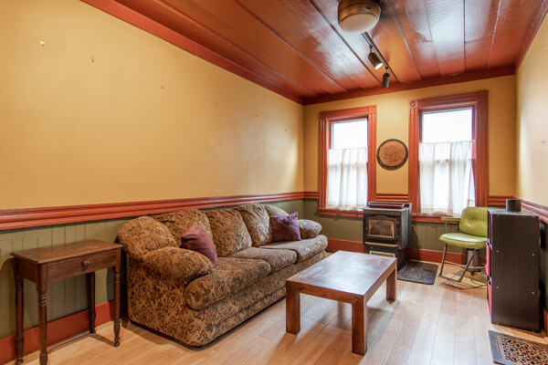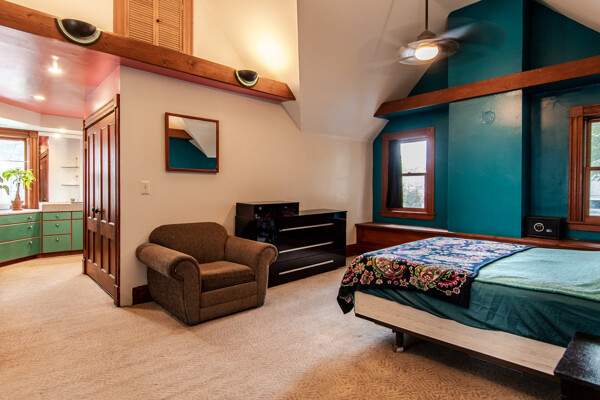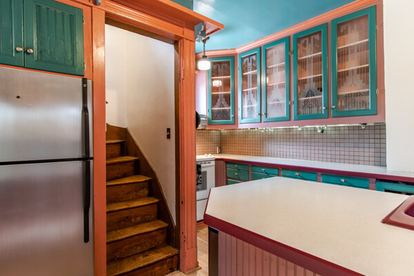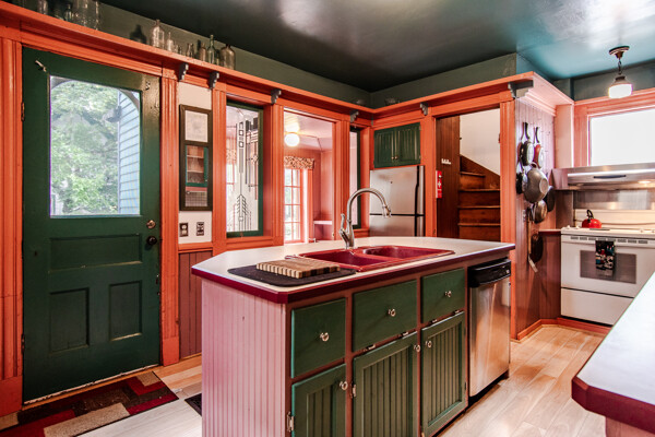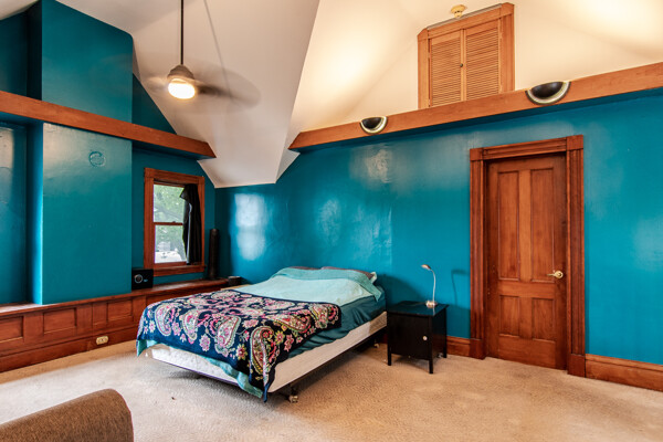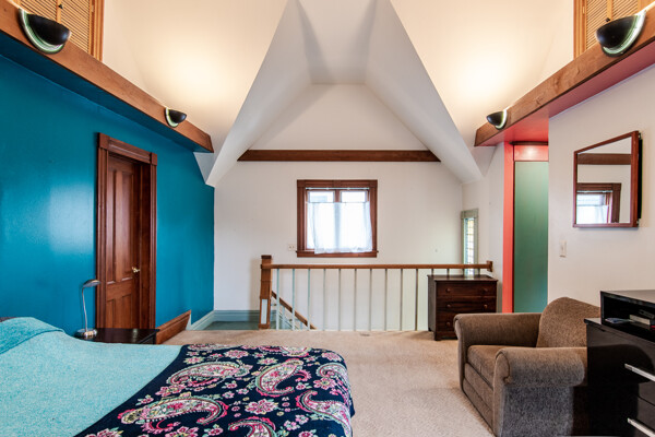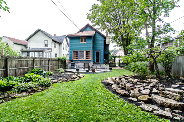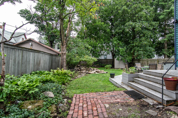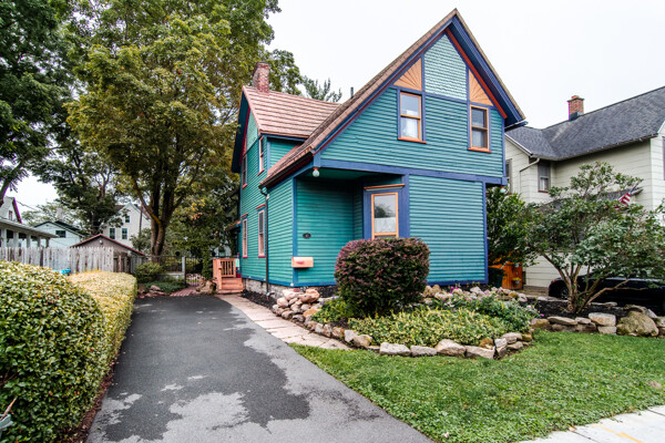 Late 19th century Victorian home with eclectic architectural details! The openness of the interior spaces will take you completely by surprise! Some interior walls on the first floor have been removed to create a unique living space. Combine that with a period carved marble decorative fireplace, a remarkable Gothic-style stained glass window, wainscoting and a pocket door! The kitchen has been remodeled with a sort of updated Victorian feeling. Center island workstation. There's even a separate breakfast room. Oh, the windows! The Master bedroom is CRAZY: check out the cathedral ceiling! There's also a private full bathroom suite with laundry!! Not kidding! 154' deep lot with multi-tiered deck and lush landscaping. High efficiency furnace. New $14K metal roof should last for decades!
