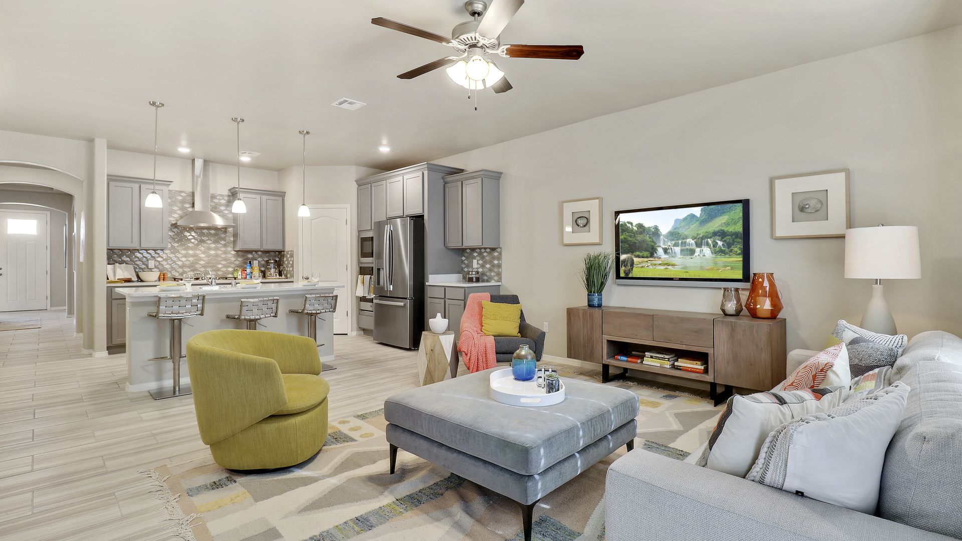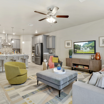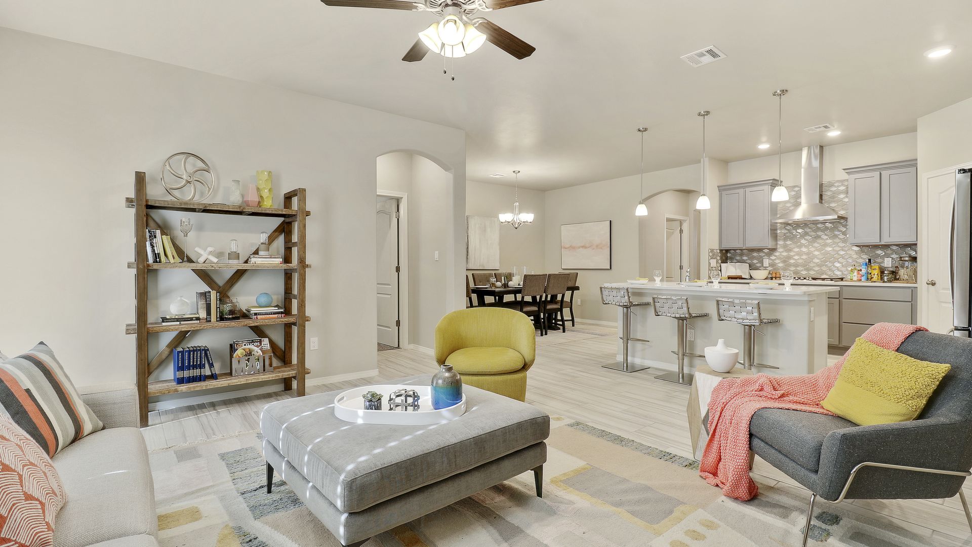 Single levels, 4 bedrooms,3 bathrooms, living room, kitchen open to dining area, large covered front porch, loft, laundry room, and a 2 car garage.
