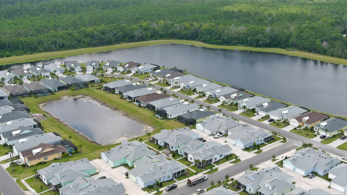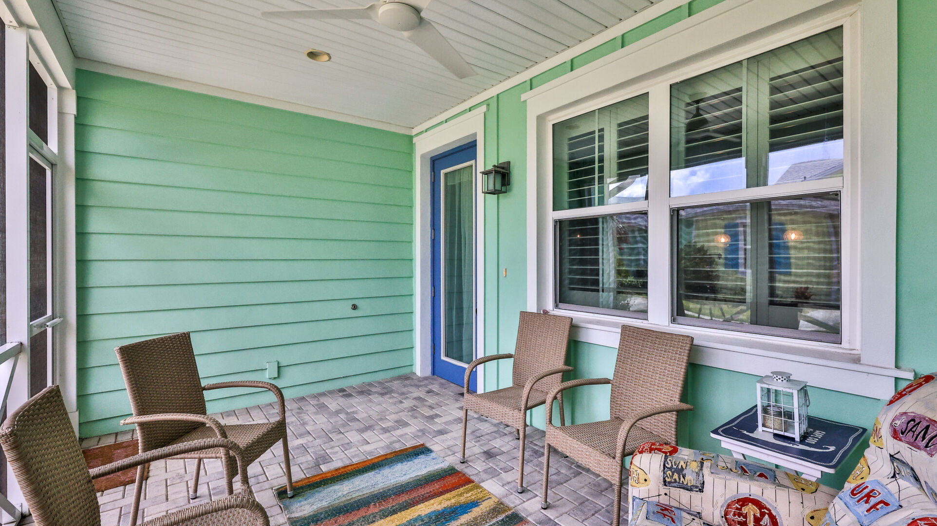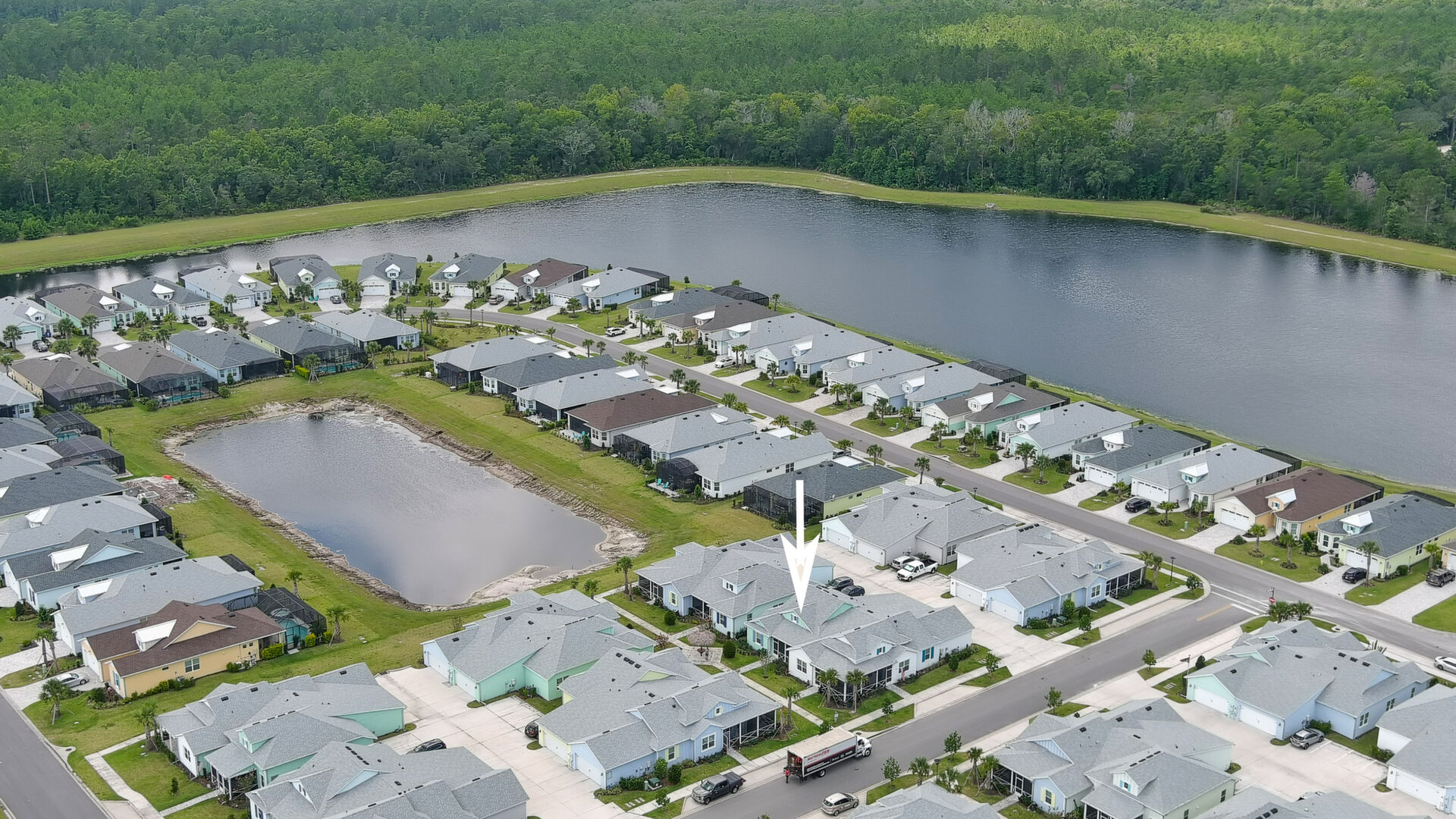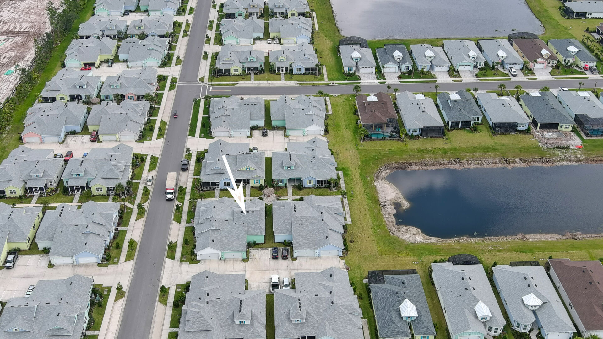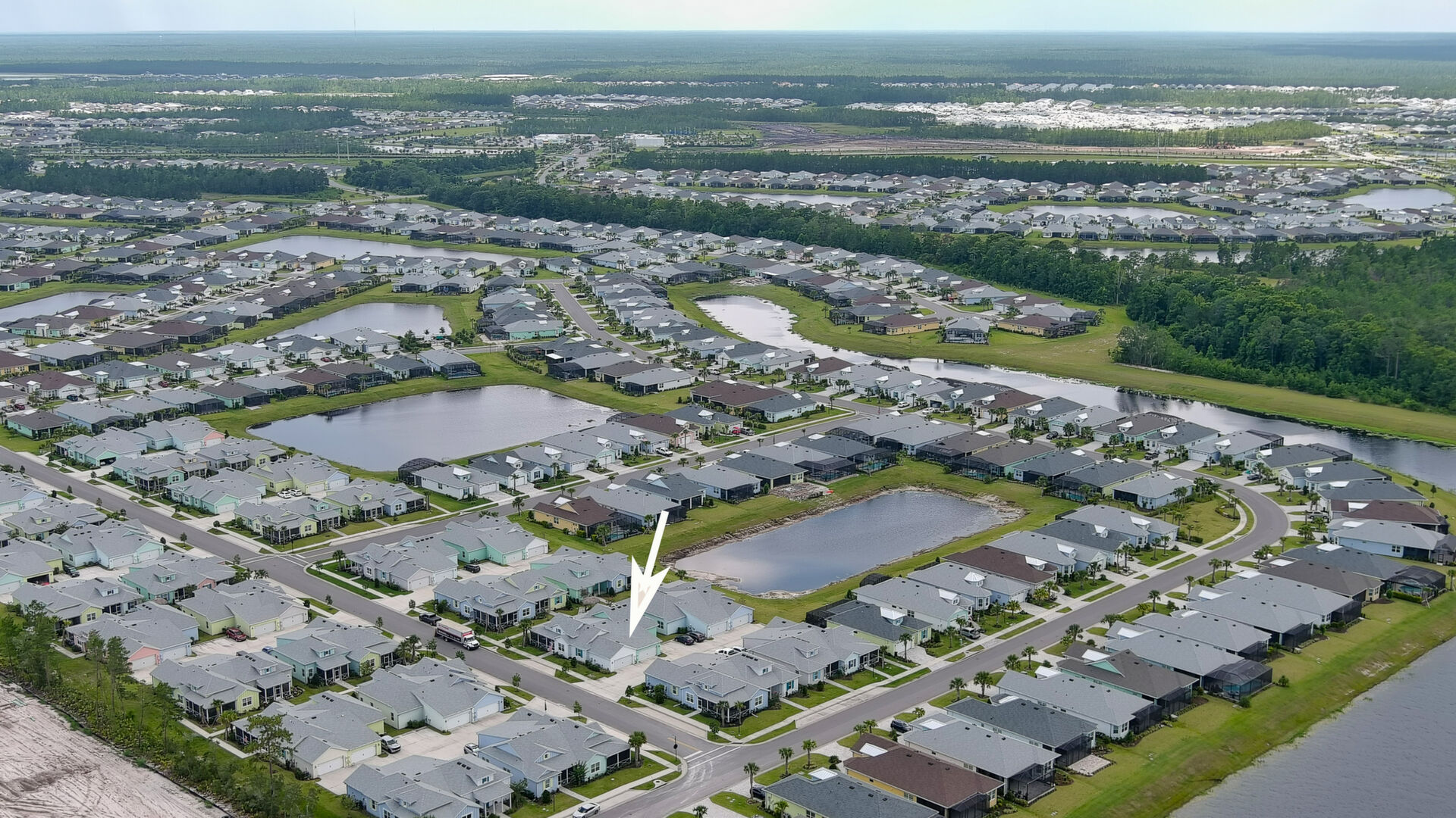 Welcome to your charming Camelia Cottage located in the vibrant Margaritaville community. With its 2 bedrooms, 2 bathrooms, roomy flex space, & 2-car garage, your cozy home is perfect for those 55+ seeking a balance between an active social life & serene relaxation. Your cottage features a 20/20 fine-mesh screened porch near a peaceful pond, providing a private retreat for unwinding. Step inside this meticulously designed cottage, & be greeted by a host of luxurious upgrades. The kitchen boasts stunning quartz countertops, sleek flooring, & an extended island perfect for culinary adventures. With a double-oven at your disposal, preparing meals for guests or simply indulging in your favorite recipes becomes a breeze.The elegant touches continue throughout w/plantation shutters and sleek flooring, adding a touch of sophistication to every room. Seamless shower doors, and a handheld, adjustable double showerhead further enhance the overall sense of refinement and convenience. Your upgraded HVAC system includes superior humidity control and a smart thermostat. These features, combined with the whole-house water softener loop, ensure energy efficiency and longevity, helping to protect both your health and your investment. Living in this award-winning 55+ community, you can enjoy a lavish, active lifestyle. The community offers a private beach club, multiple pools, a state-of-the-art fitness center, pottery and wood-shop facilities, a dog park and spa, a movie theater, and a lively town square with regular live entertainment. Whether you're seeking an active retirement filled with social and physical activities or a tranquil sanctuary to enjoy peace and quiet, this Camelia Cottage in Margaritaville is a fantastic choice.
