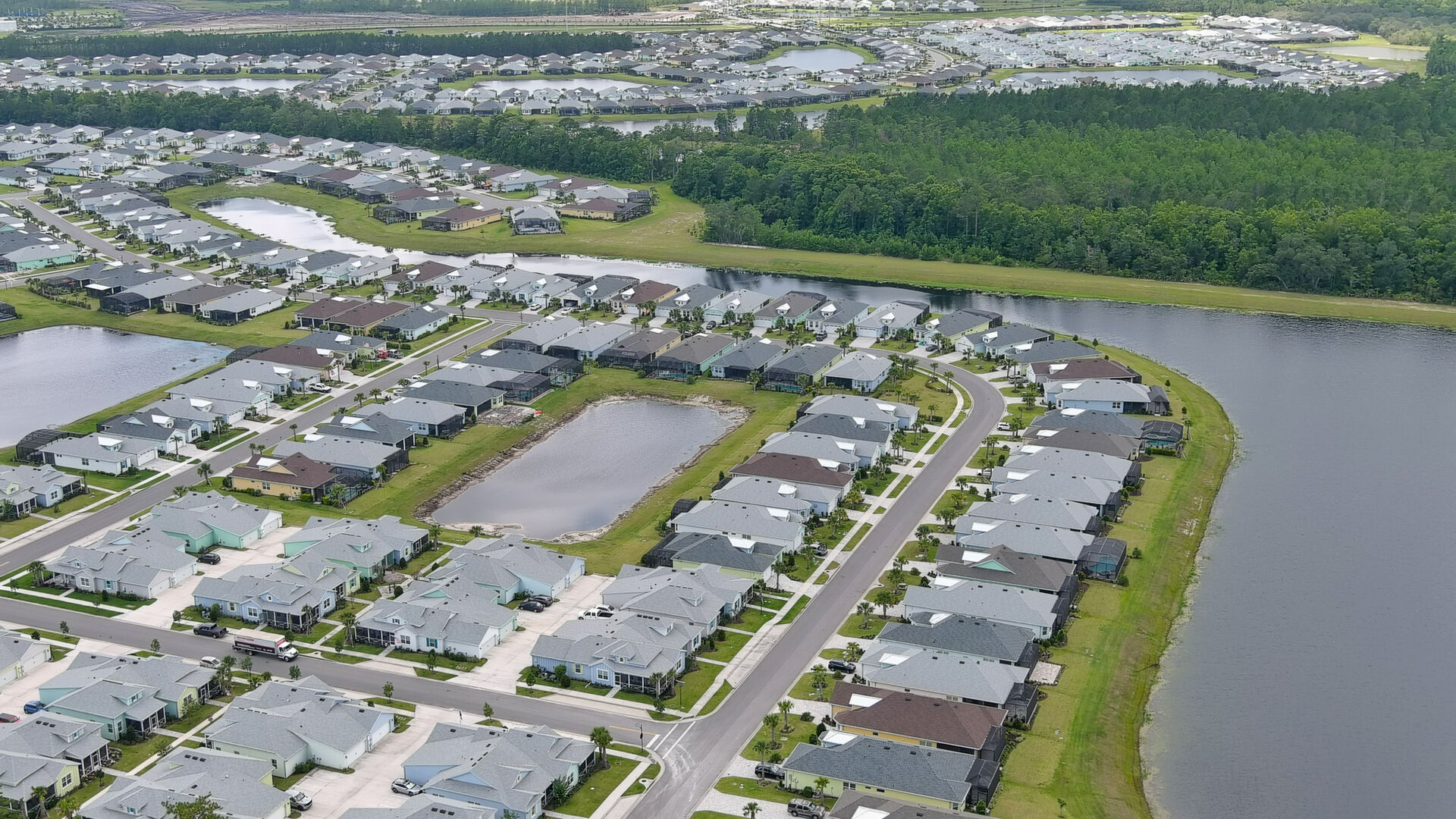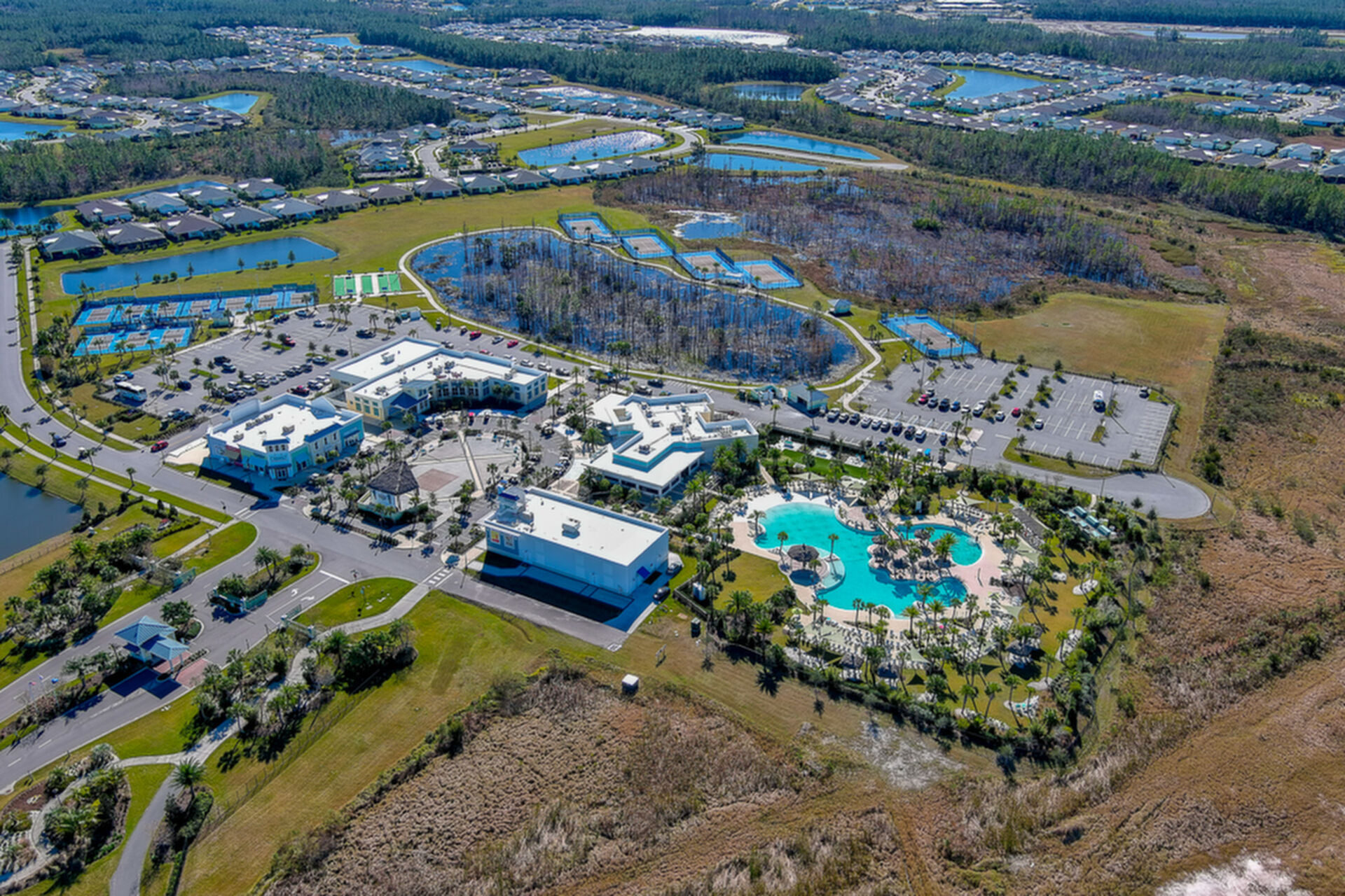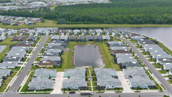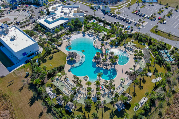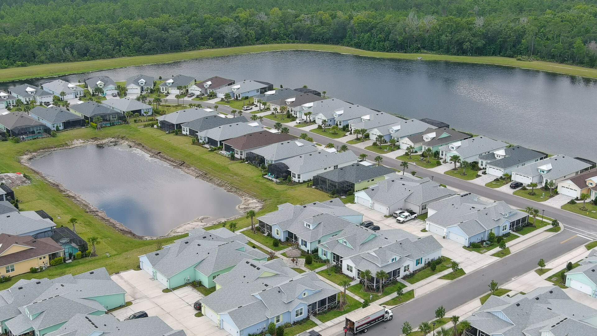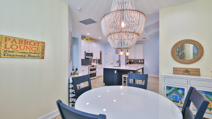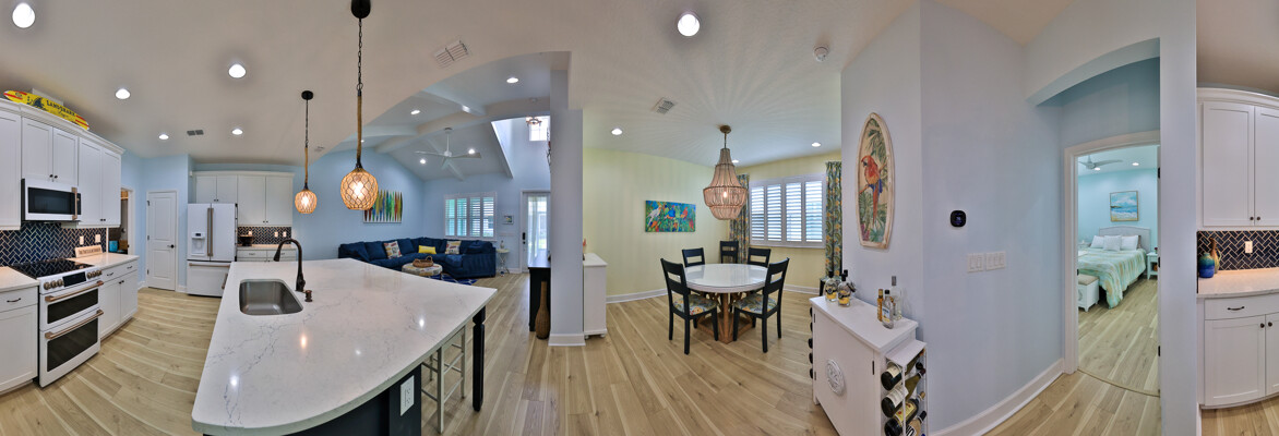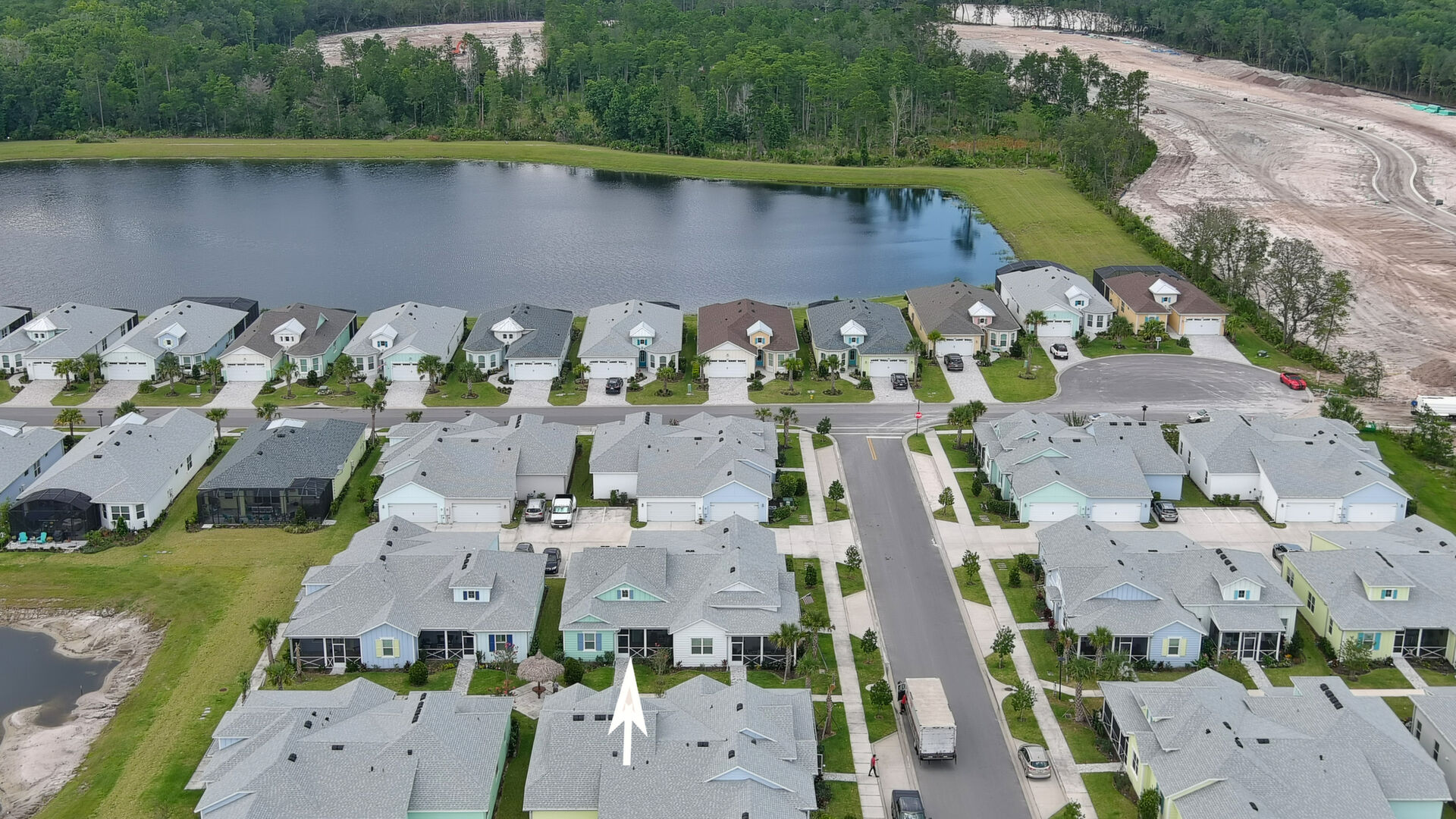Welcome to your charming Camelia Cottage located in the vibrant Margaritaville community. With its 2 bedrooms, 2 bathrooms, roomy flex space, & 2-car garage, your cozy home is perfect for those 55+ seeking a balance between an active social life & serene relaxation. Your cottage features a 20/20 fine-mesh screened porch near a peaceful pond, providing a private retreat for unwinding. Step inside this meticulously designed cottage, & be greeted by a host of luxurious upgrades. The kitchen boasts stunning quartz countertops, sleek flooring, & an extended island perfect for culinary adventures. With a double-oven at your disposal, preparing meals for guests or simply indulging in your favorite recipes becomes a breeze.The elegant touches continue throughout w/plantation shutters and sleek flooring, adding a touch of sophistication to every room. Seamless shower doors, and a handheld, adjustable double showerhead further enhance the overall sense of refinement and convenience. Your upgraded HVAC system includes superior humidity control and a smart thermostat. These features, combined with the whole-house water softener loop, ensure energy efficiency and longevity, helping to protect both your health and your investment. Living in this award-winning 55+ community, you can enjoy a lavish, active lifestyle. The community offers a private beach club, multiple pools, a state-of-the-art fitness center, pottery and wood-shop facilities, a dog park and spa, a movie theater, and a lively town square with regular live entertainment. Whether you're seeking an active retirement filled with social and physical activities or a tranquil sanctuary to enjoy peace and quiet, this Camelia Cottage in Margaritaville is a fantastic choice.