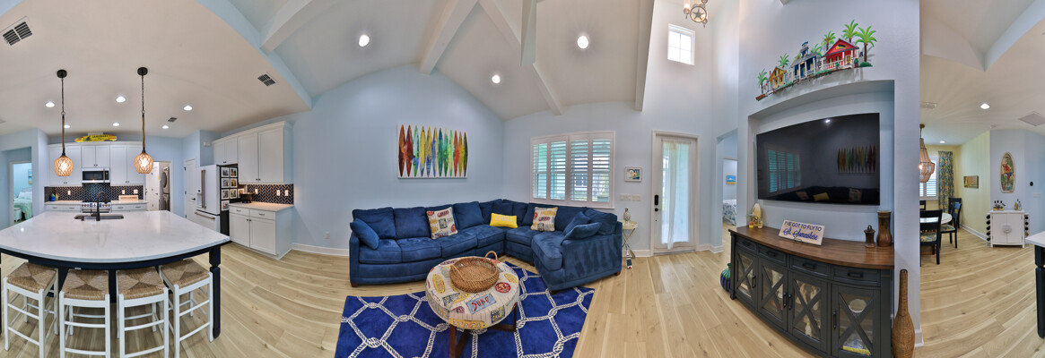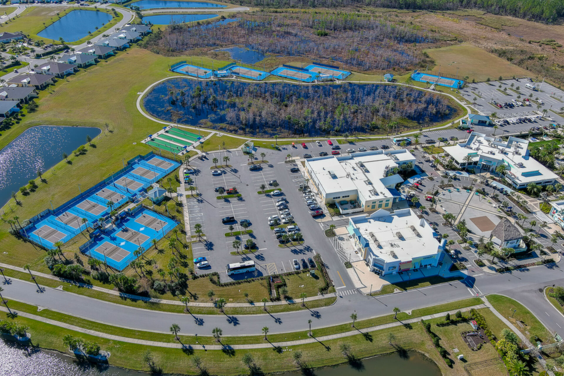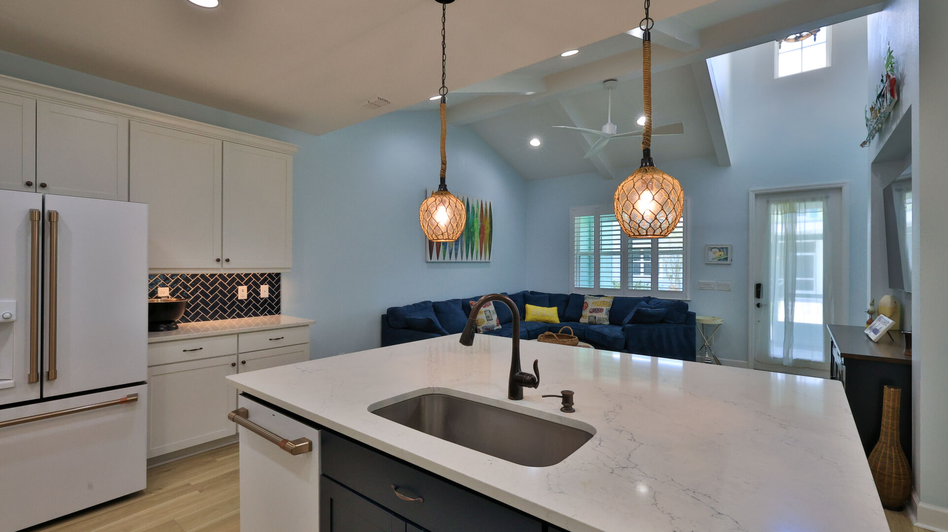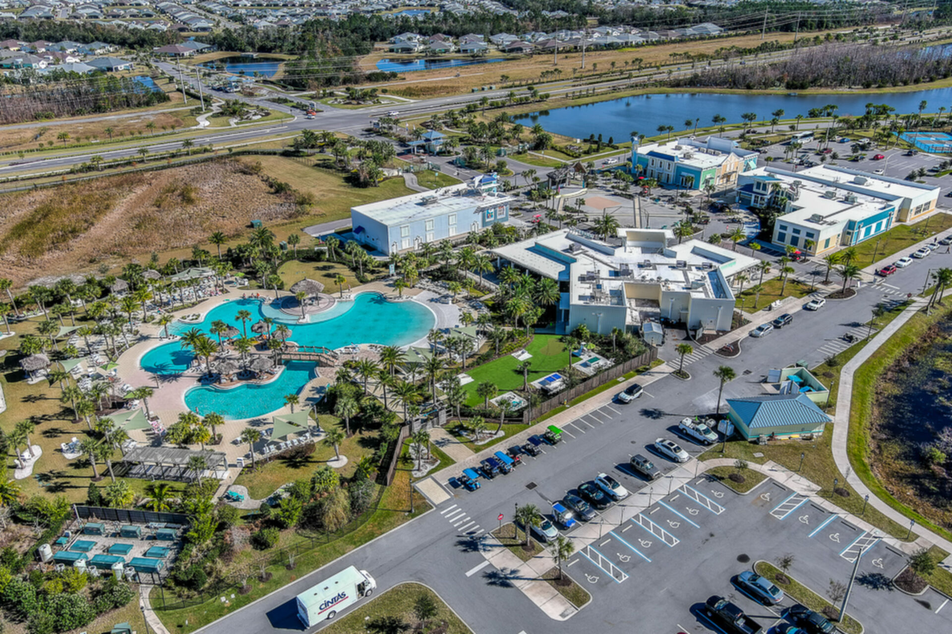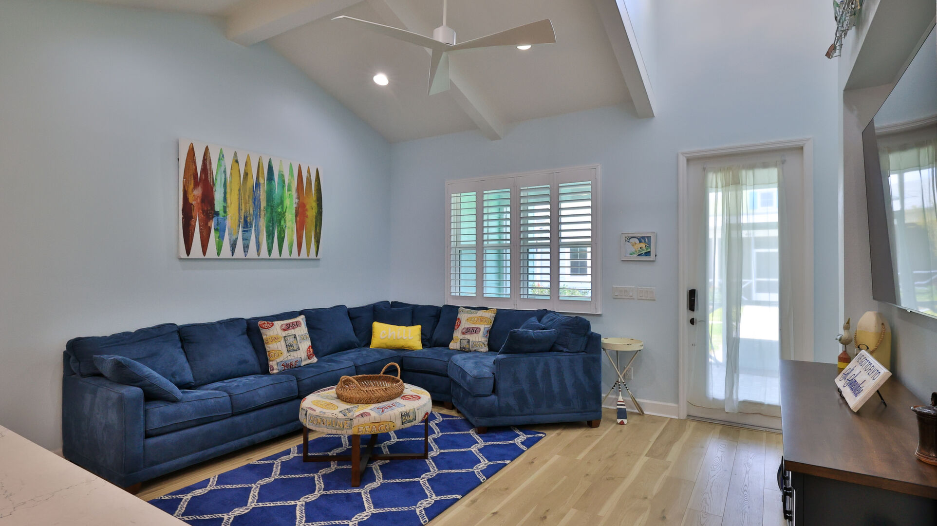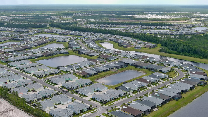 Welcome to your charming Camelia Cottage located in the vibrant Margaritaville community. With its 2 bedrooms, 2 bathrooms, roomy flex space, & 2-car garage, your cozy home is perfect for those 55+ seeking a balance between an active social life & serene relaxation. Your cottage features a 20/20 fine-mesh screened porch near a peaceful pond, providing a private retreat for unwinding. Step inside this meticulously designed cottage, & be greeted by a host of luxurious upgrades. The kitchen boasts stunning quartz countertops, sleek flooring, & an extended island perfect for culinary adventures. With a double-oven at your disposal, preparing meals for guests or simply indulging in your favorite recipes becomes a breeze.The elegant touches continue throughout w/plantation shutters and sleek flooring, adding a touch of sophistication to every room. Seamless shower doors, and a handheld, adjustable double showerhead further enhance the overall sense of refinement and convenience. Your upgraded HVAC system includes superior humidity control and a smart thermostat. These features, combined with the whole-house water softener loop, ensure energy efficiency and longevity, helping to protect both your health and your investment. Living in this award-winning 55+ community, you can enjoy a lavish, active lifestyle. The community offers a private beach club, multiple pools, a state-of-the-art fitness center, pottery and wood-shop facilities, a dog park and spa, a movie theater, and a lively town square with regular live entertainment. Whether you're seeking an active retirement filled with social and physical activities or a tranquil sanctuary to enjoy peace and quiet, this Camelia Cottage in Margaritaville is a fantastic choice.