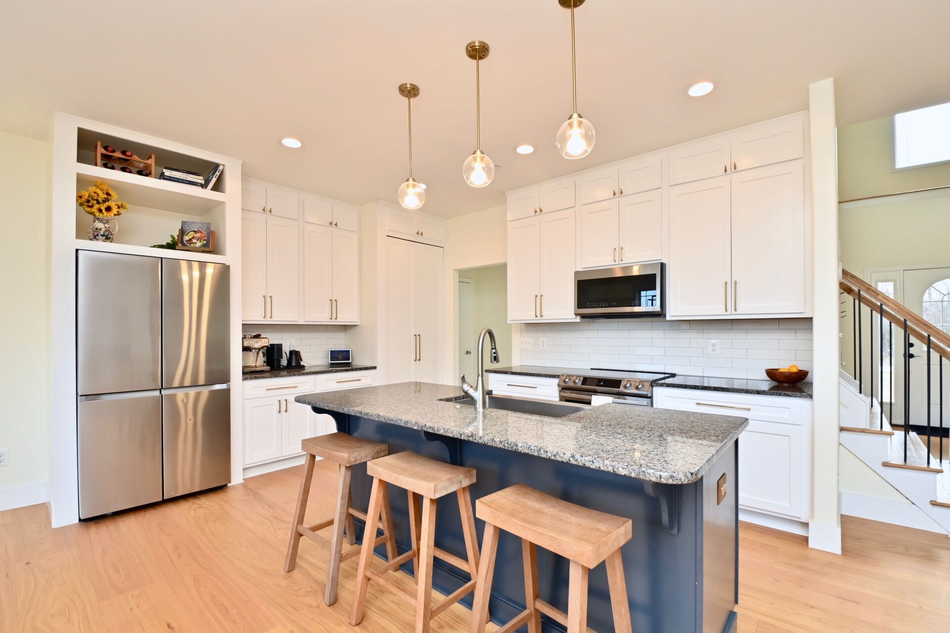 This home is run on solar energy and features large gourmet kitchen, hardwood floors, cozy fireplace in the living room, updates throughout, primary bedroom with walk-in closet, private bath with double shower, finished recreation room and so much more.
