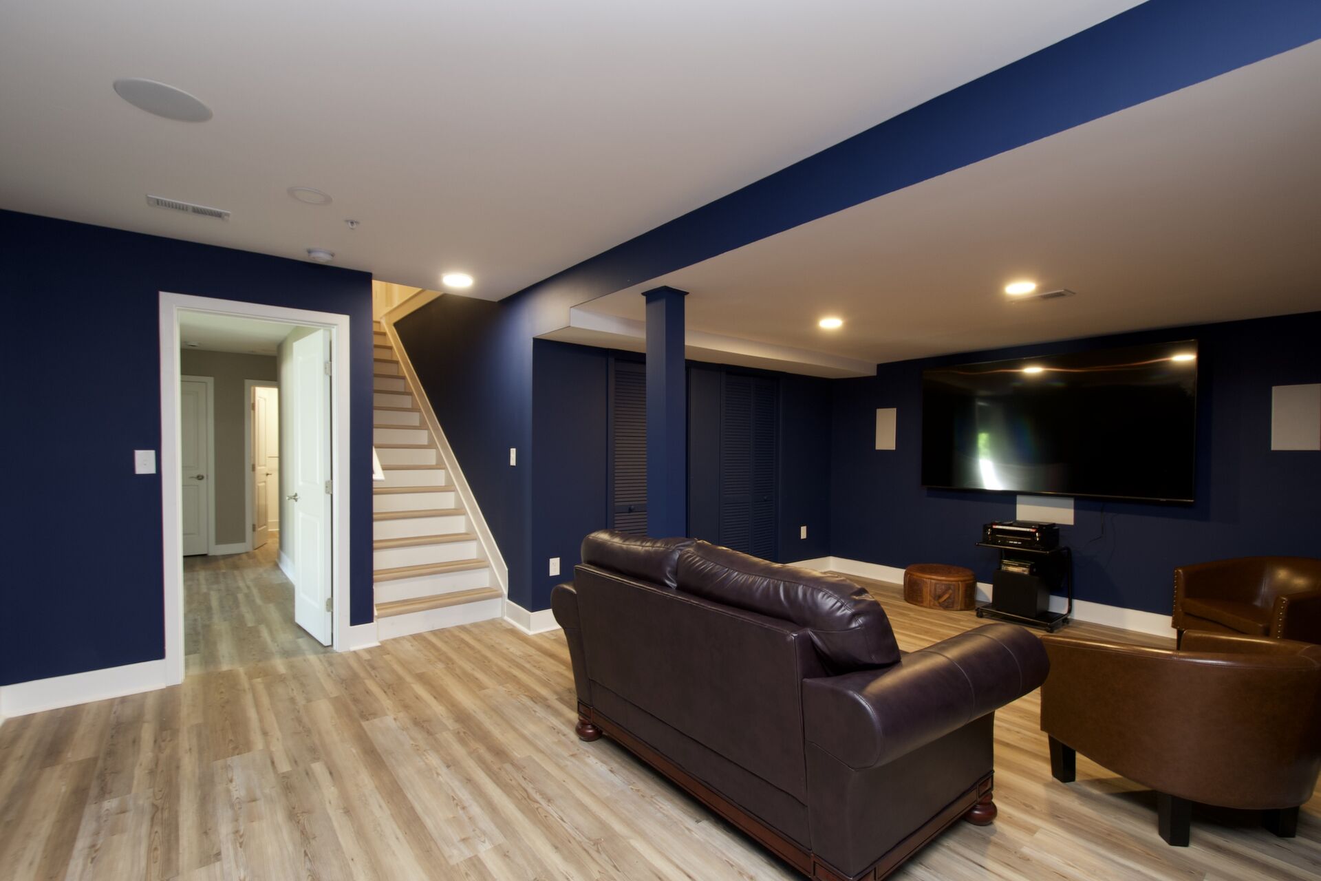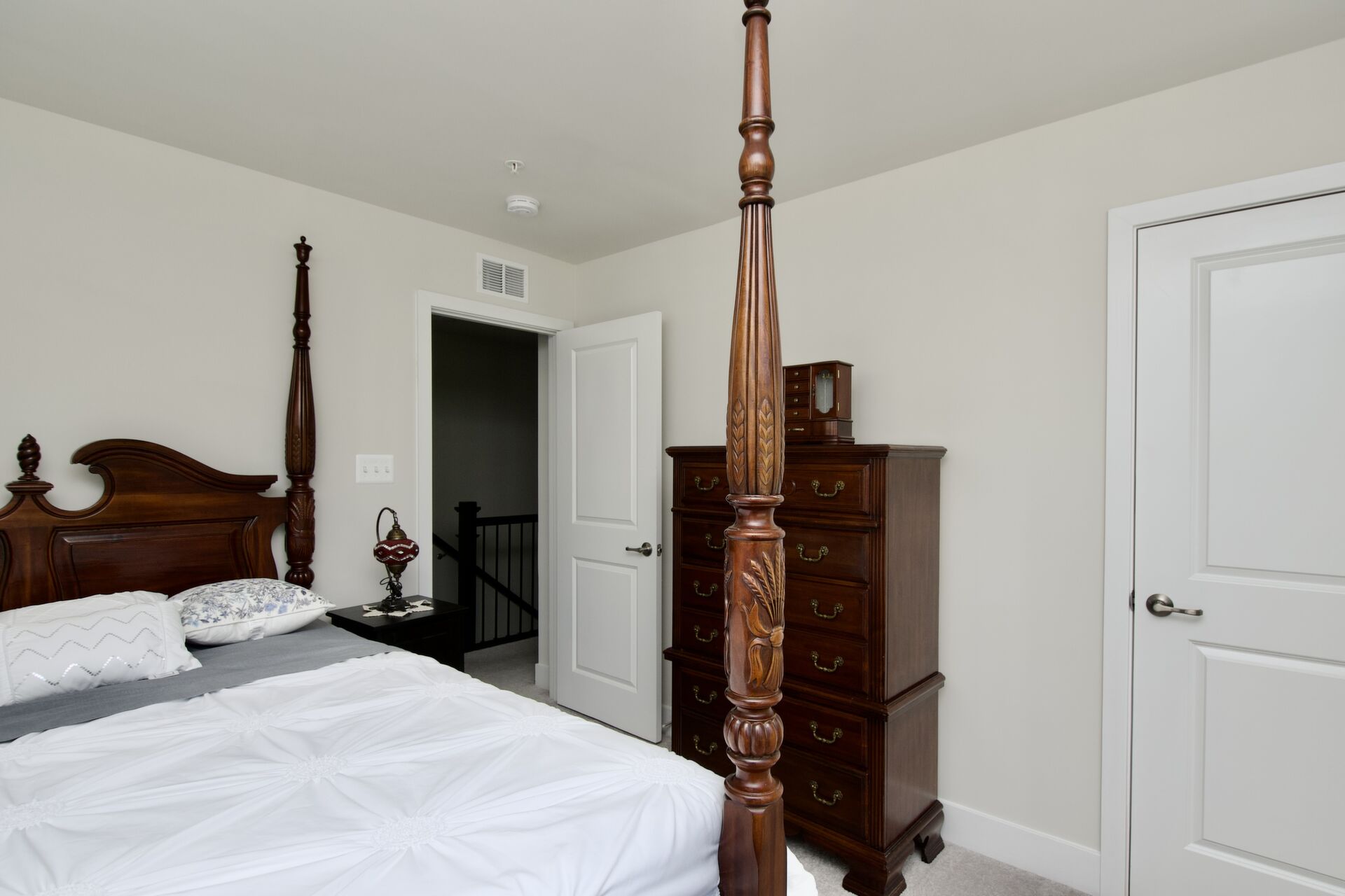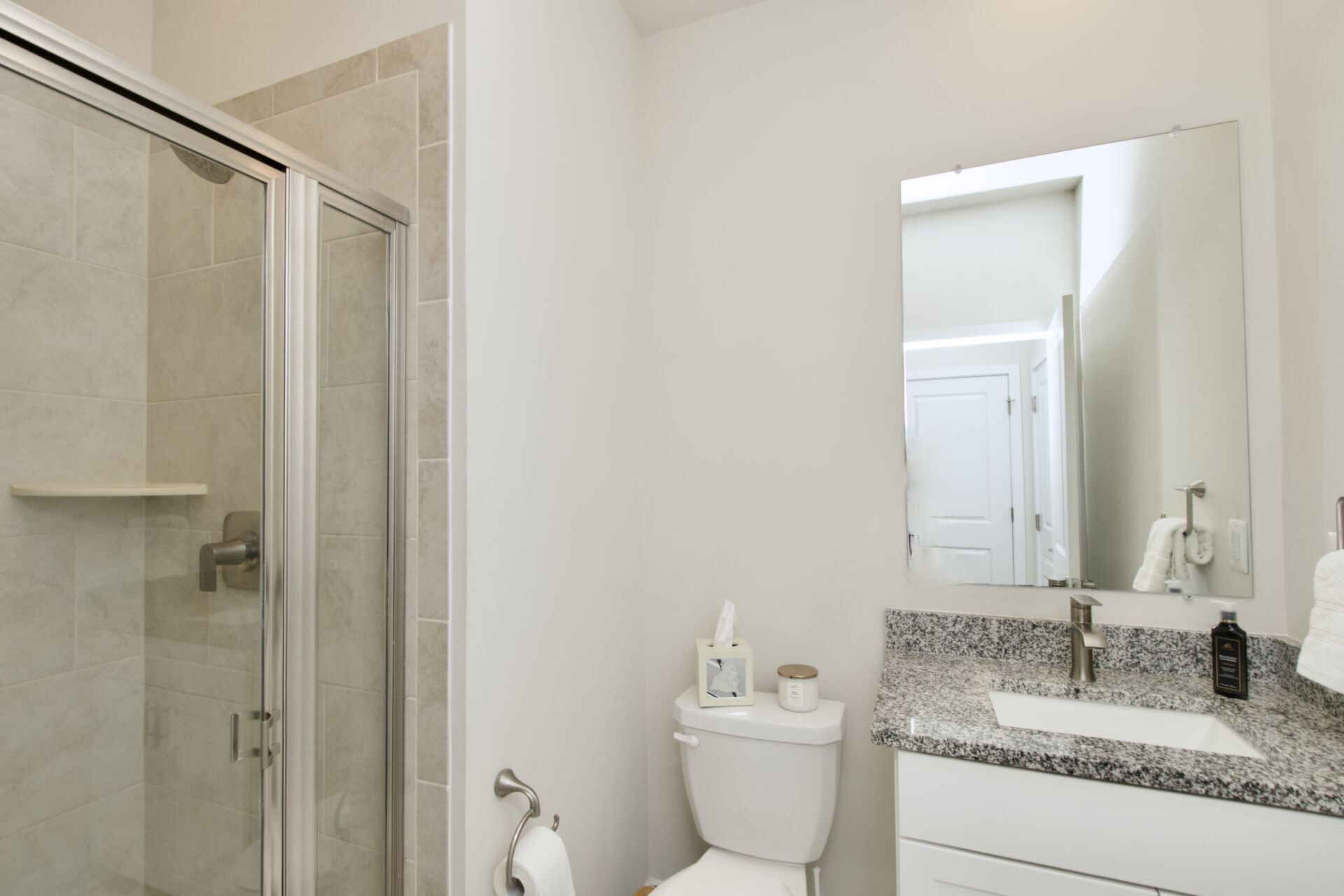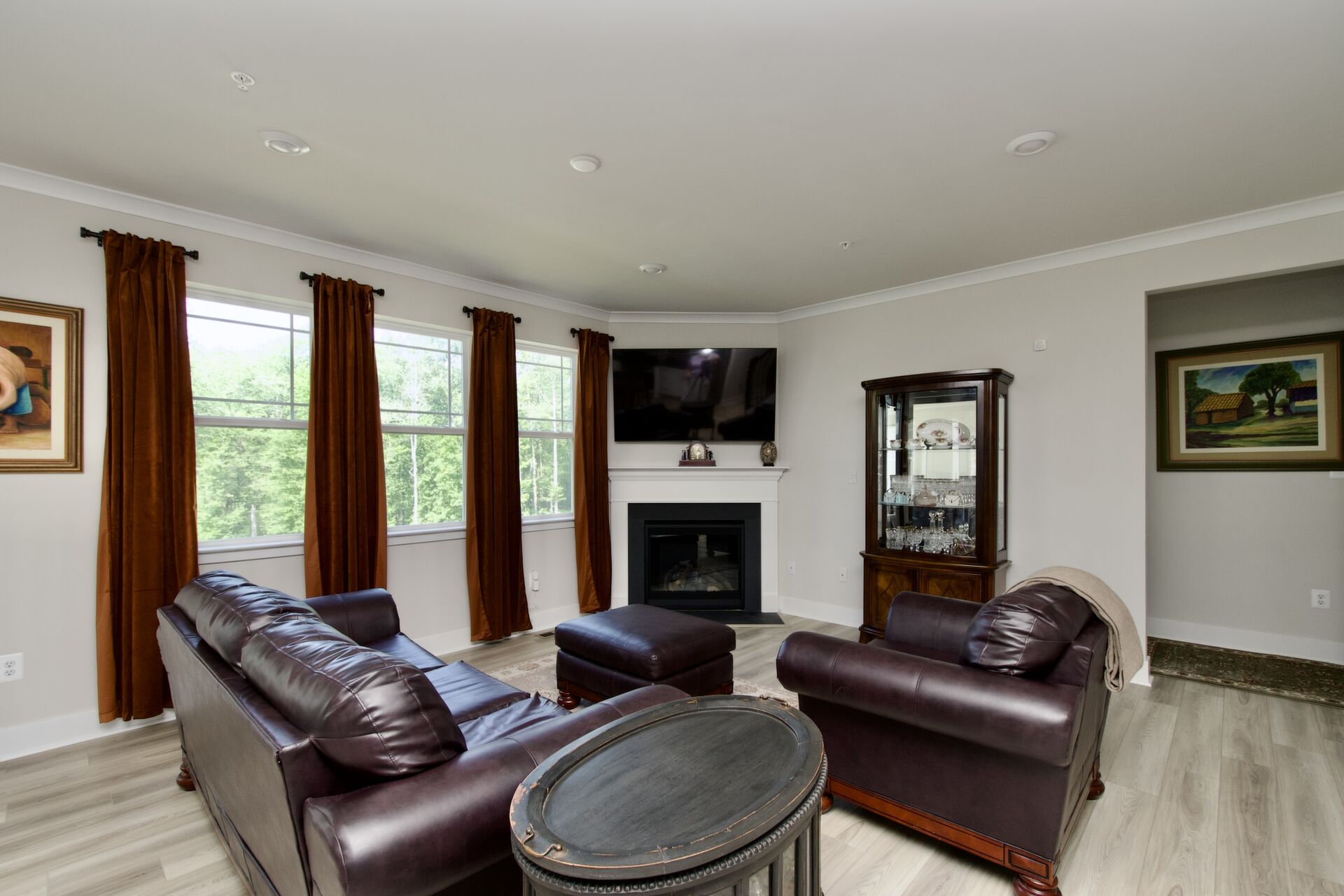 The kitchen is a chef’s delight, complete with a large island with seating, sleek countertops, and premium appliances. It seamlessly flows into a cozy family room with a fireplace and an inviting dining area—ideal for everyday living and special gatherings. For more formal occasions, enjoy the separate living room that exudes sophistication. Hosting overnight guests or need an extra room for a nanny? A main-level guest bedroom with an adjacent full bath ensures comfort and privacy.