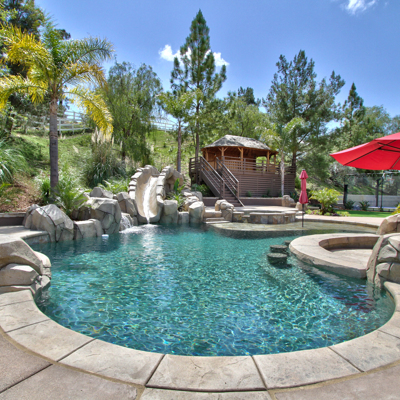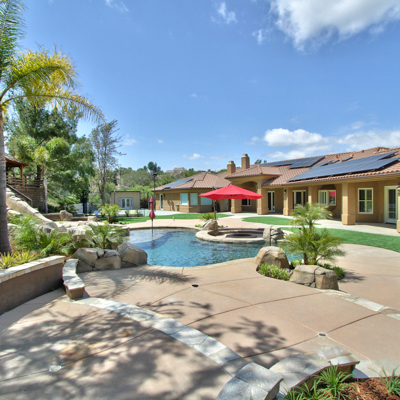 INCREDIBLE SANTIAGO ESTATES OPPORTUNITY- Look no more, this awesome 6,234 square foot Luxury single story estate has it all! SIX Bedrooms, Eight Bathrooms all on the same level, Heavily upgraded in the last year, the Backyard is an OFF THE CHARTS Tropical Getaway, Multiple Pools, Waterfalls, Slide, Firepit, New Koi Pond/Pool with Rock Waterfalls, Spa, Tahiti Hut, Sport Court/ Basketball Court, New Landscaping. New Workshop/ Shed. This will be your Entertainment Paradise, no need to go to Hawaii, this Estate will be your Forever Party Destination! The Interior has been completely upgraded with New smooth wall texture, New Light Fixtures, New Door Hardware, New Paint throughout, some New Plumbing, New Electrical Switches, Plates, & Outlets, New Ecobee Smart House and Ring Controls, New Artificial no maintenance Turf Front & Back, New Plants & Shrubs Landscaping, New Landscape Lighting, New Massive Entry Palm Tree, Gated Entry for Privacy with Smart Phone Controls, New Tankless Water Heaters, New Remote Control Blinds, New Vinyl Wood Flooring. Private Exercise Room with Gym padded Floor and Flexline Equipment. Private Home Study Room for Distance Learning. Massive Master Bedroom High Roller Suite. Very Large Four Car Garage with Motor Court & Off Street & RV Plus Boat Parking. . Centrally located in the best Estates area in Town, close to everything. These large single story houses are very rare and hard to find, don't miss out on this Fantastic Turn Key Estate!!