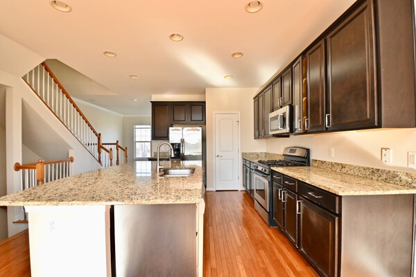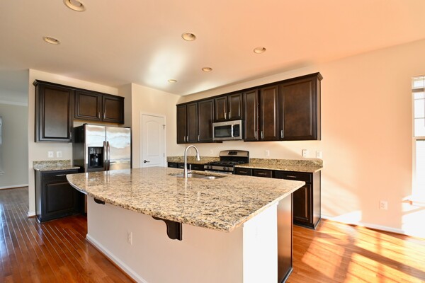 This home boasts hardwood floors, recessed lighting, large kitchen with island seating, dining room with enough space for a family room or work space, large living room with lots of natural light, primary bedroom with walk-in closet private bath and so much more.