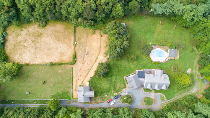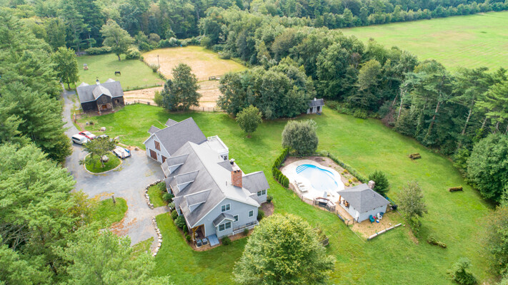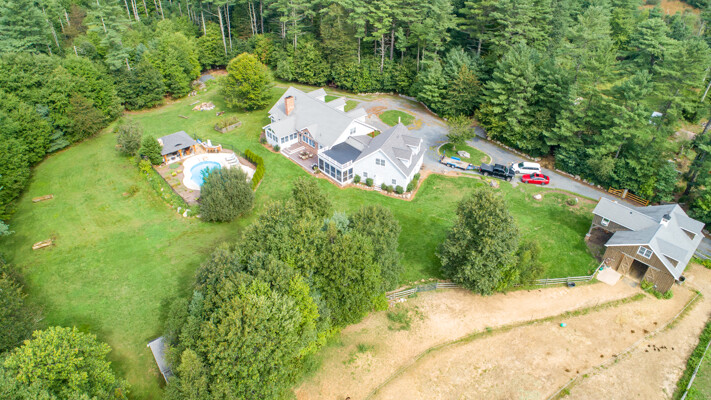 - In-ground pool and a pool house