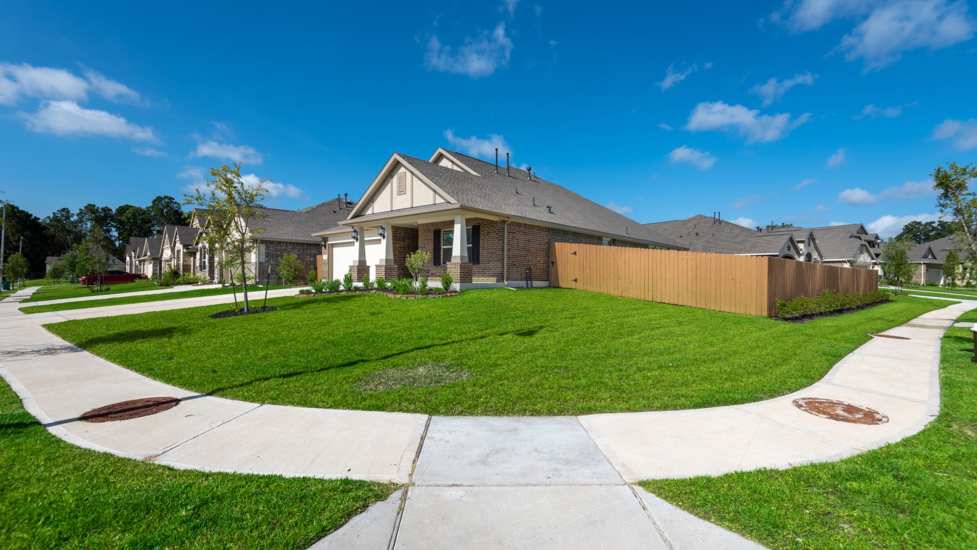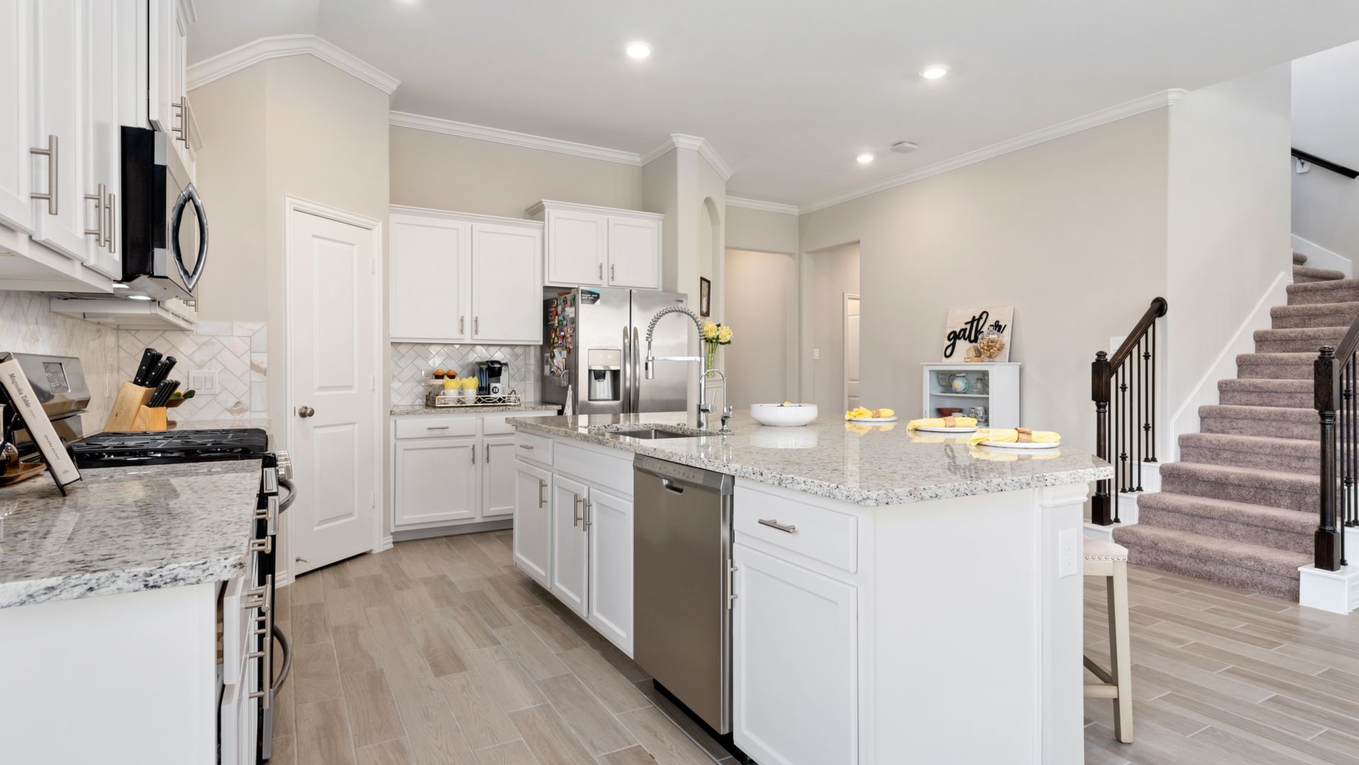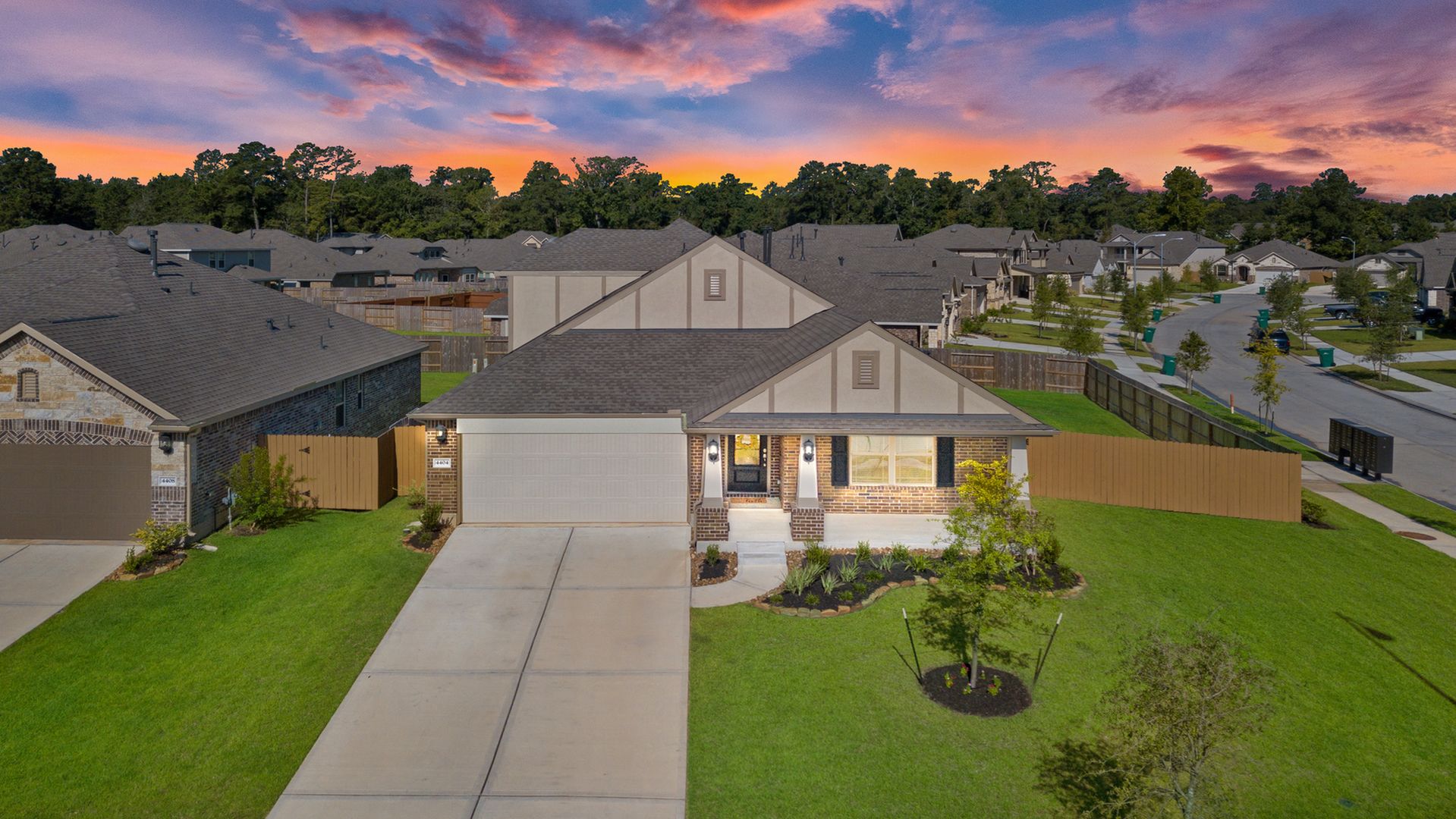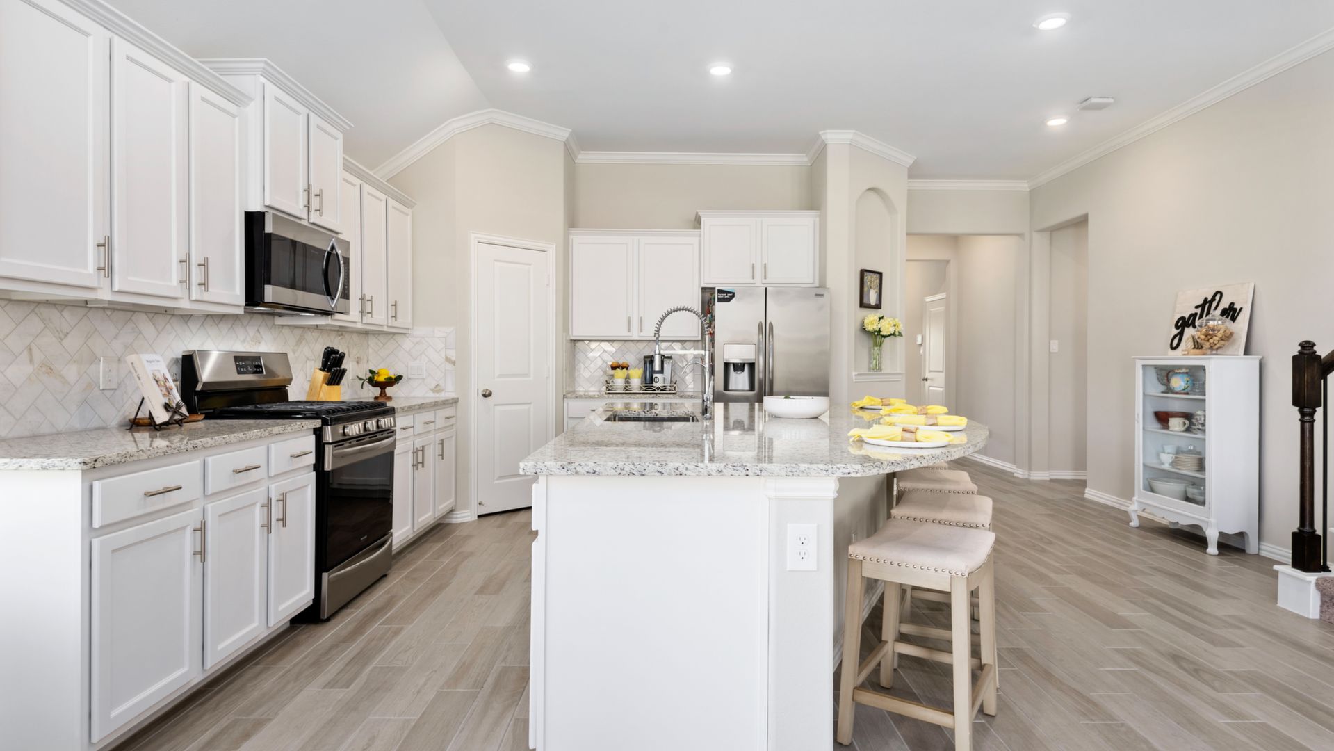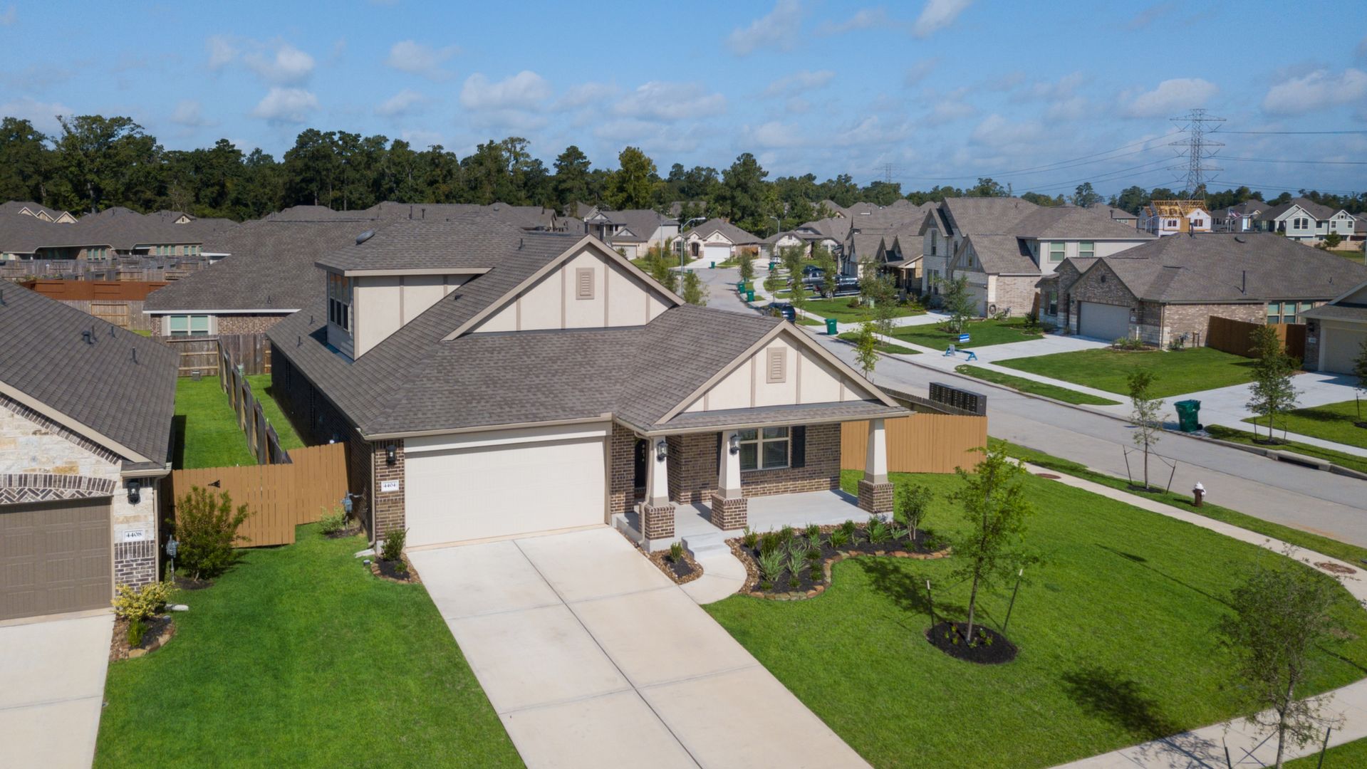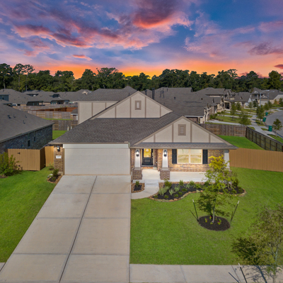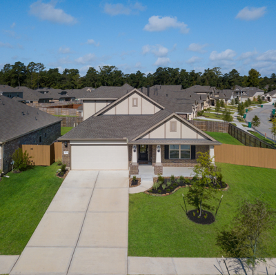 This stunning 1.5 story 4 bedroom home was BUILT IN 2019, is BARELY LIVED IN and offers great function & flow. Amazing modern architectural details + clean lines in this split floor plan. Features: OPEN FLOOR PLAN; grand entry w/soaring ceilings; 8 foot doors; great storage; light neutral paint; porcelain wood-look tile floors; crown molding, stunning kitchen w/granite counters, stainless appliances (fridge stays), island w/bar seating, dining area & painted cabinets. Luxurious master + ensuite w/dual vanities, oversized shower & soaking tub. 3 more BR's & 2 more full baths down. Upstairs are a game room & half bath. Home is on a large corner lot with a sprinkler system & room for a pool. This Wi-Fi Certified Smart Home features integrated automation & voice control w/Amazon Alexa. Neighborhood amenities include 2 pools, parks, splash pads, walking trails, tennis, basketball, fitness center & club house. A+ rated schools, Grand Oaks High. WHY WAIT TO BUILD WHEN YOU CAN HAVE NEW NOW!