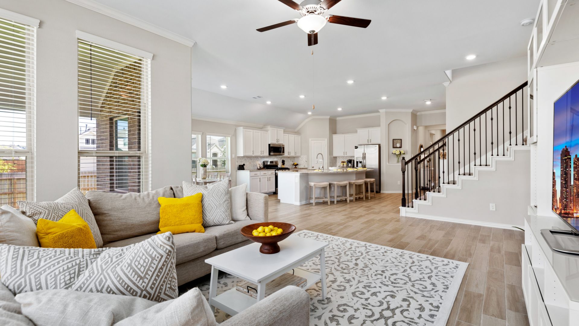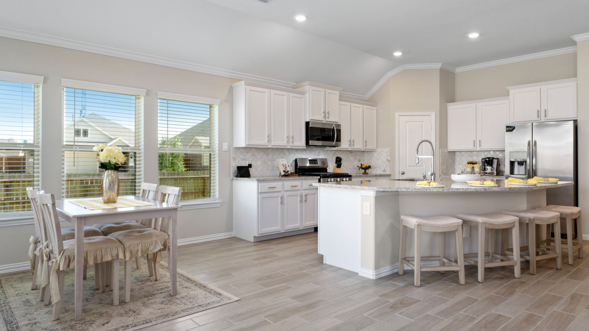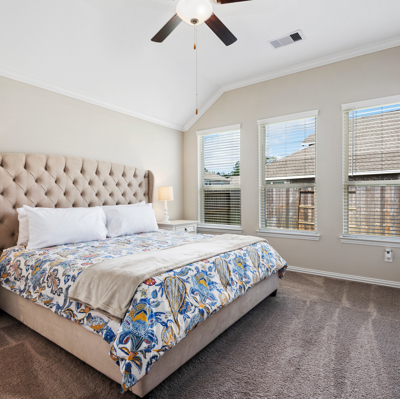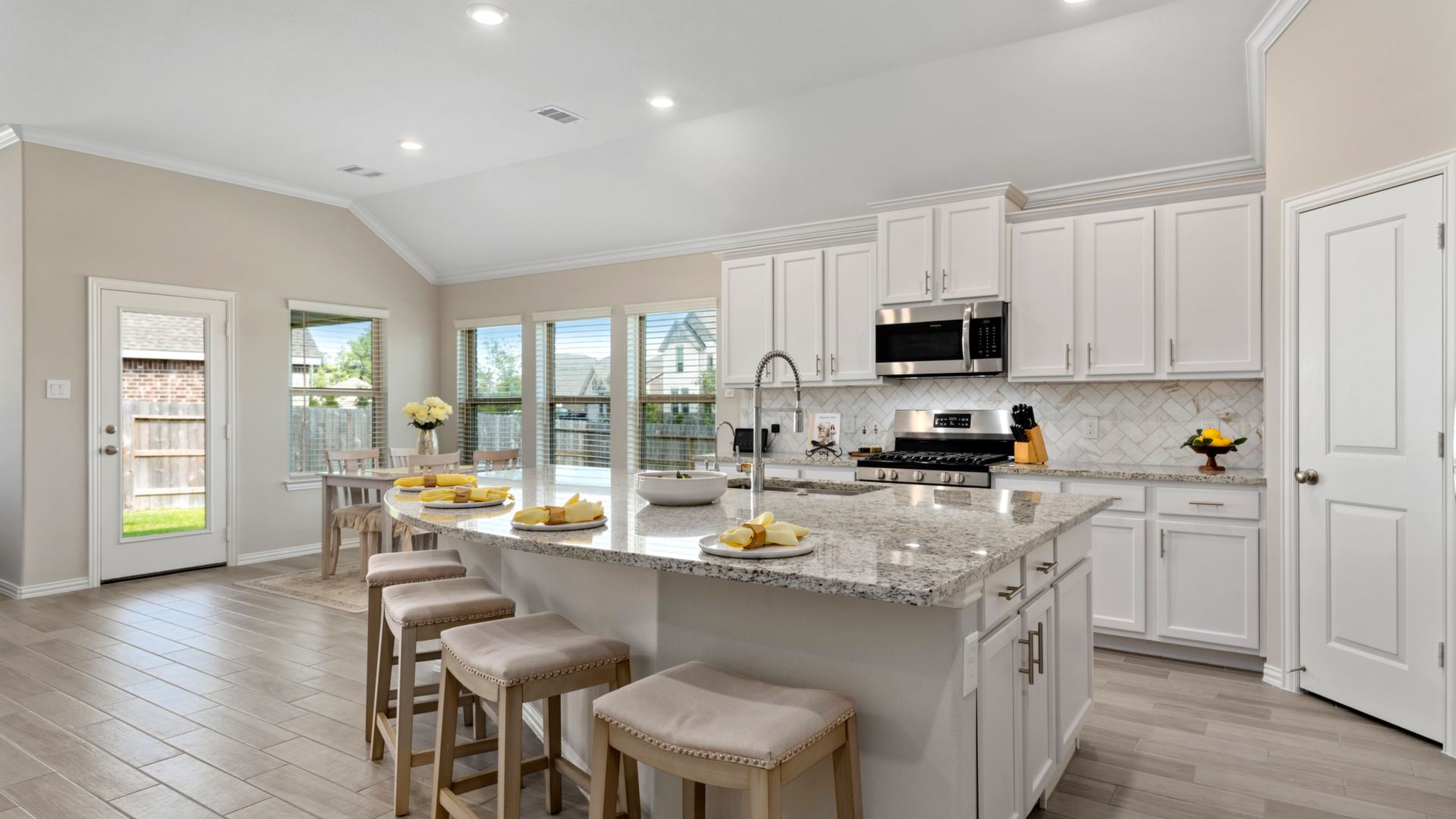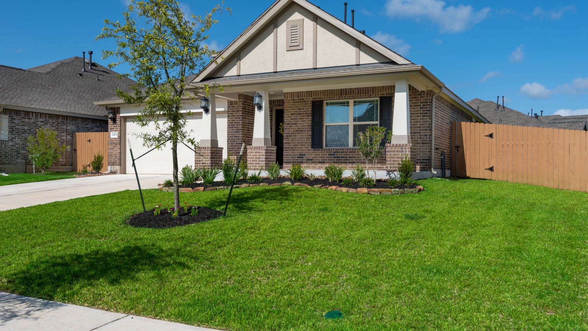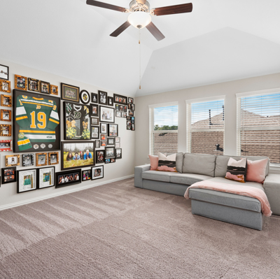 This stunning 1.5 story 4 bedroom home was BUILT IN 2019, is BARELY LIVED IN and offers great function & flow. Amazing modern architectural details + clean lines in this split floor plan. Features: OPEN FLOOR PLAN; grand entry w/soaring ceilings; 8 foot doors; great storage; light neutral paint; porcelain wood-look tile floors; crown molding, stunning kitchen w/granite counters, stainless appliances (fridge stays), island w/bar seating, dining area & painted cabinets. Luxurious master + ensuite w/dual vanities, oversized shower & soaking tub. 3 more BR's & 2 more full baths down. Upstairs are a game room & half bath. Home is on a large corner lot with a sprinkler system & room for a pool. This Wi-Fi Certified Smart Home features integrated automation & voice control w/Amazon Alexa. Neighborhood amenities include 2 pools, parks, splash pads, walking trails, tennis, basketball, fitness center & club house. A+ rated schools, Grand Oaks High. WHY WAIT TO BUILD WHEN YOU CAN HAVE NEW NOW!