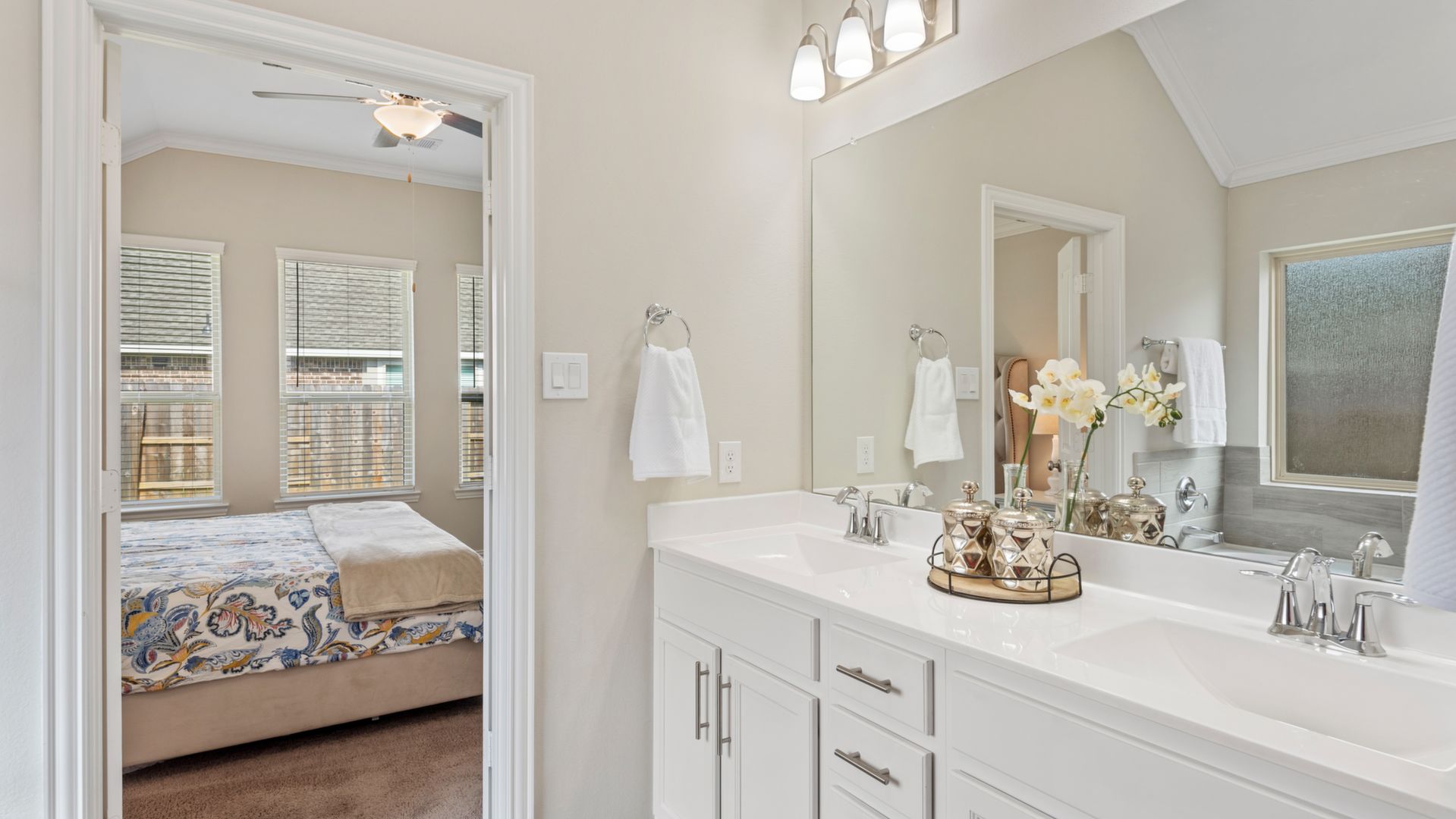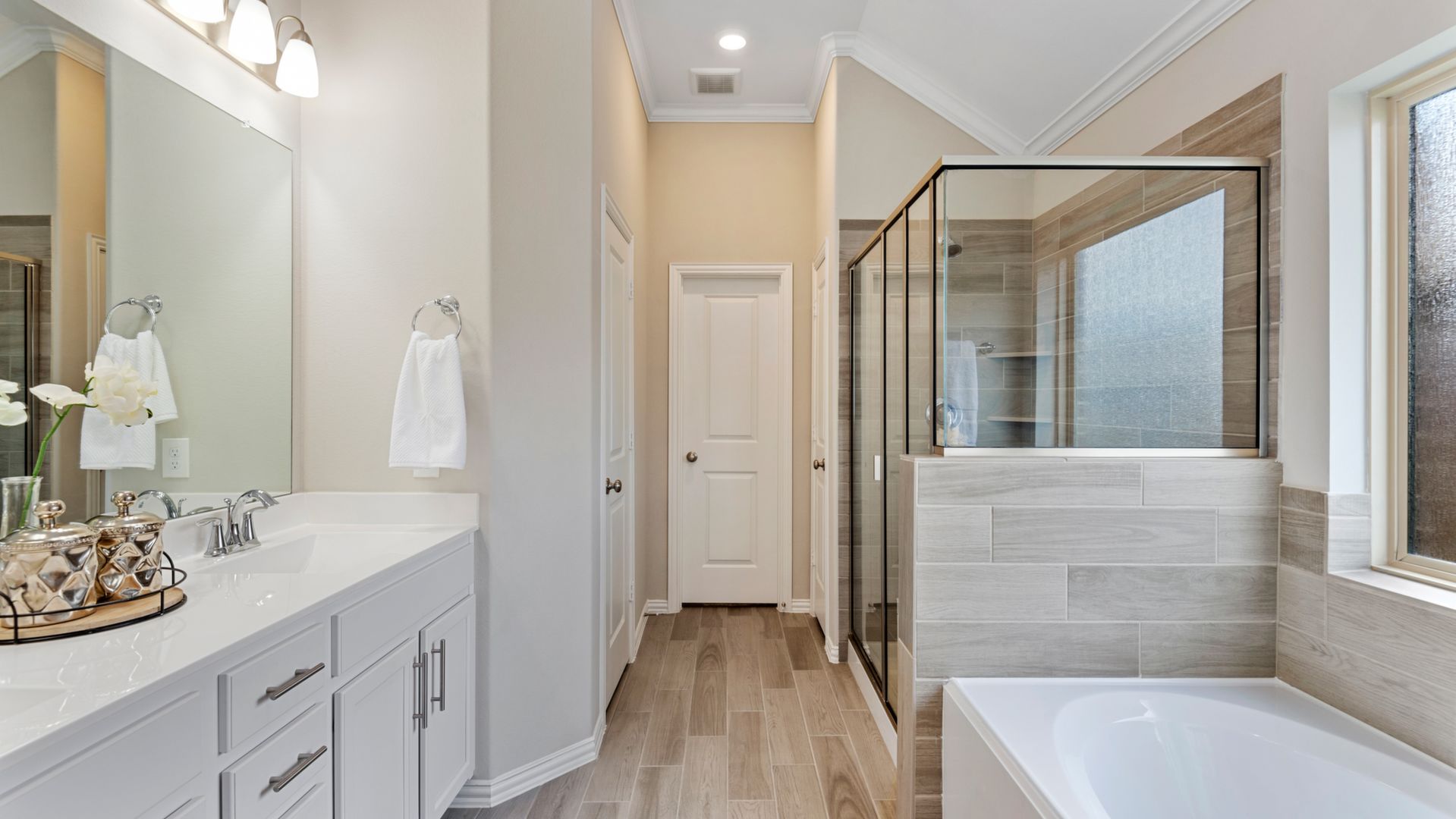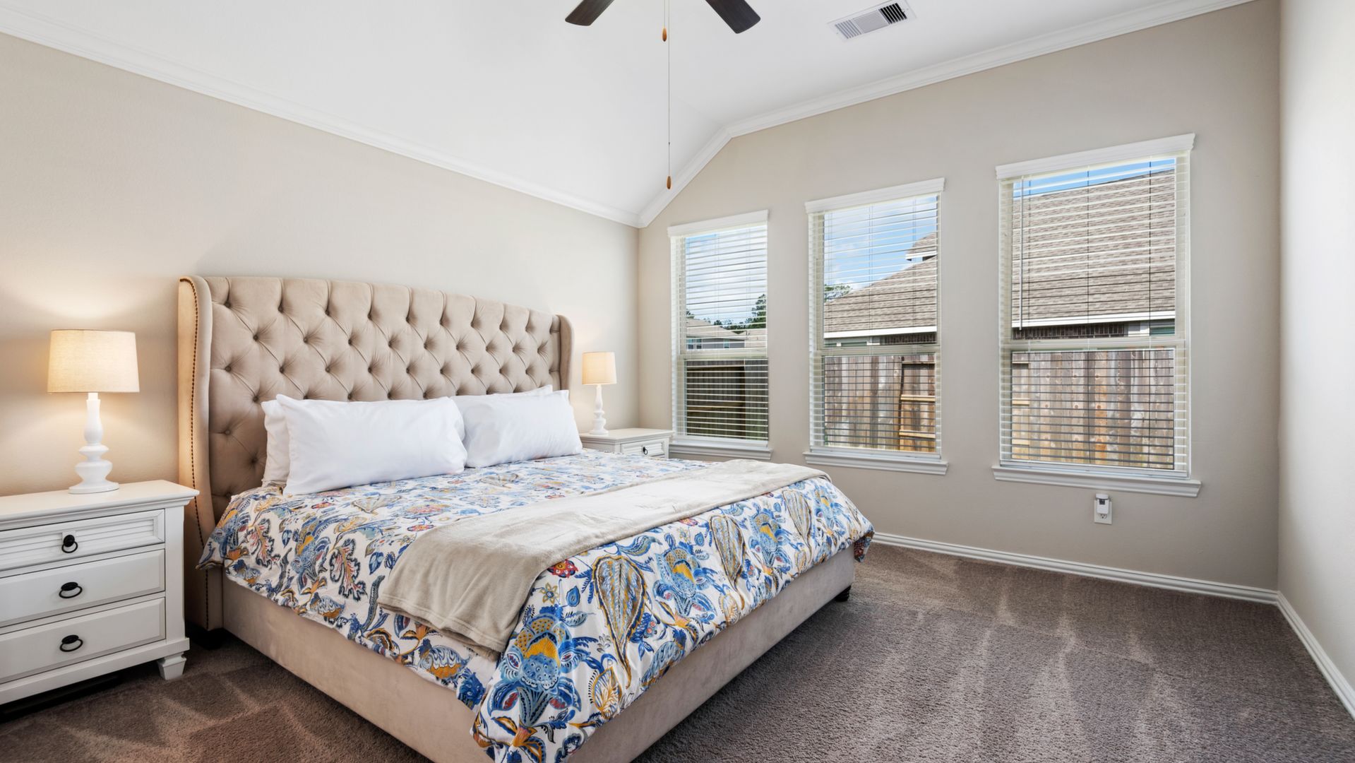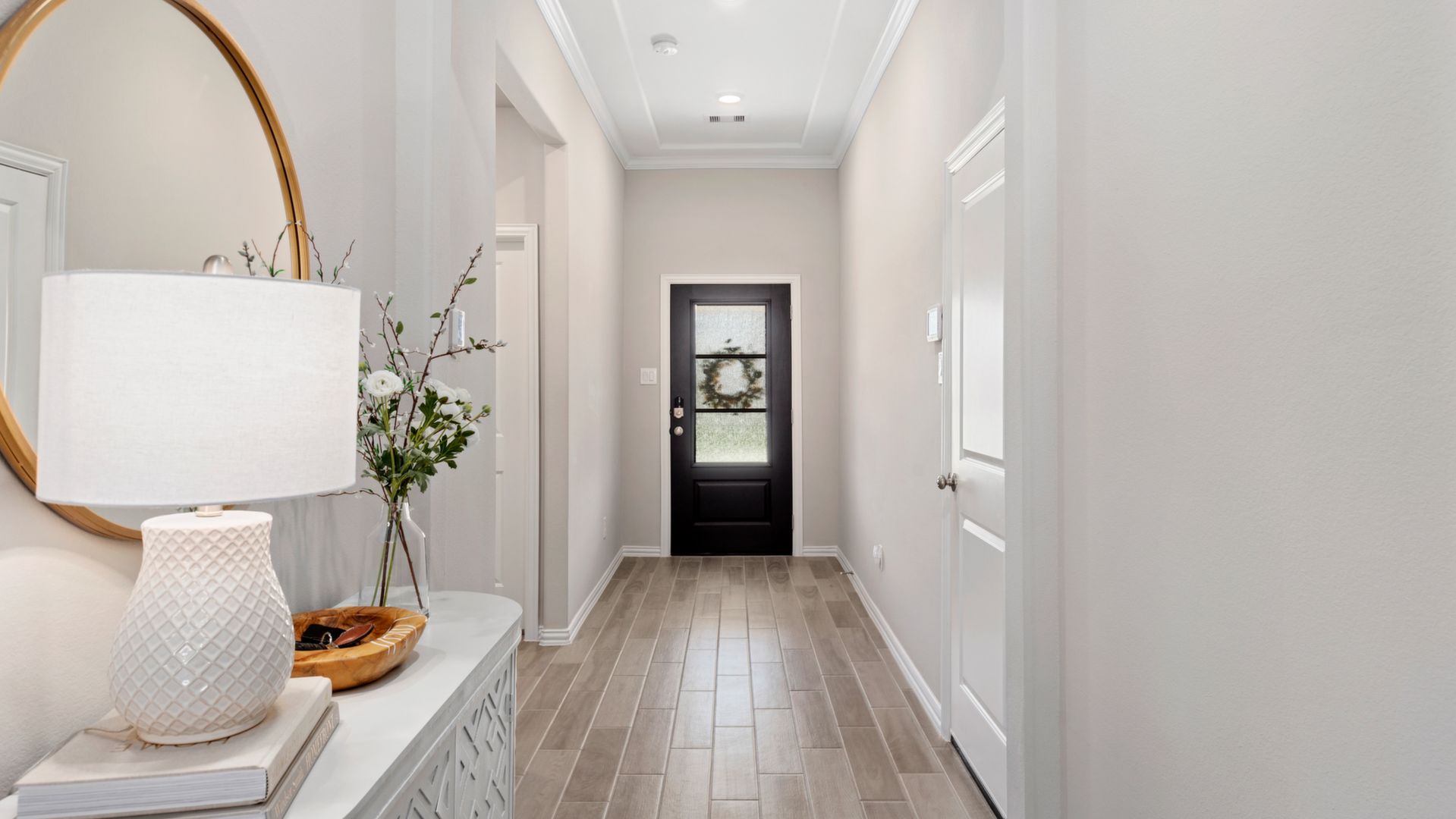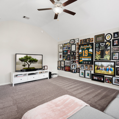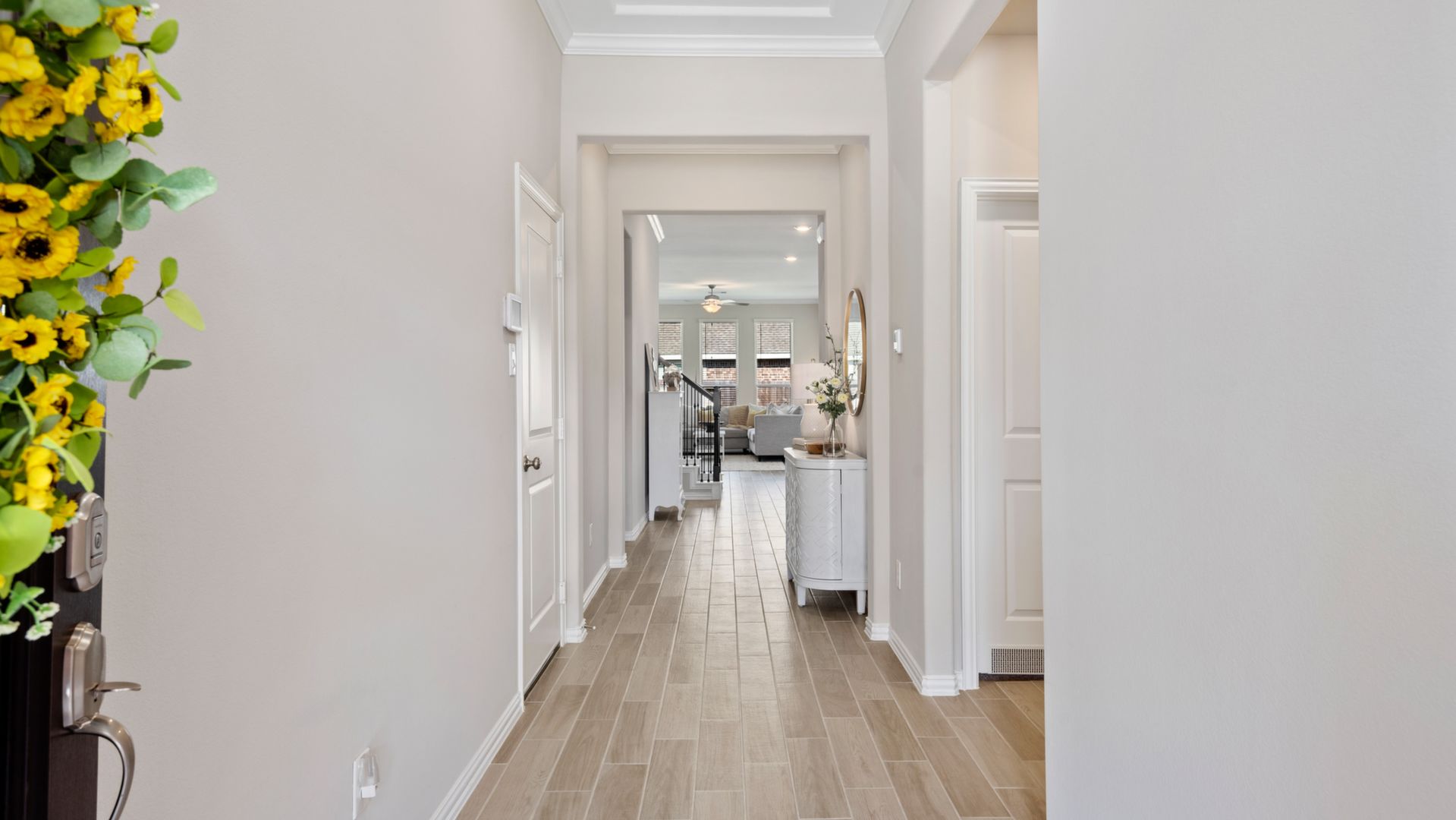This stunning 1.5 story 4 bedroom home was BUILT IN 2019, is BARELY LIVED IN and offers great function & flow. Amazing modern architectural details + clean lines in this split floor plan. Features: OPEN FLOOR PLAN; grand entry w/soaring ceilings; 8 foot doors; great storage; light neutral paint; porcelain wood-look tile floors; crown molding, stunning kitchen w/granite counters, stainless appliances (fridge stays), island w/bar seating, dining area & painted cabinets. Luxurious master + ensuite w/dual vanities, oversized shower & soaking tub. 3 more BR's & 2 more full baths down. Upstairs are a game room & half bath. Home is on a large corner lot with a sprinkler system & room for a pool. This Wi-Fi Certified Smart Home features integrated automation & voice control w/Amazon Alexa. Neighborhood amenities include 2 pools, parks, splash pads, walking trails, tennis, basketball, fitness center & club house. A+ rated schools, Grand Oaks High. WHY WAIT TO BUILD WHEN YOU CAN HAVE NEW NOW!