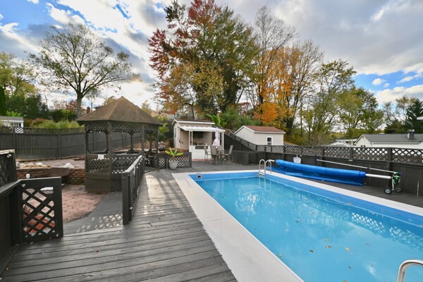 This beauty features an addition that boasts a primary bedroom suite and recreation room. The family room has a cozy fireplace for chilly winter nights and the backyard pool is great for summer heat, the best of both worlds!