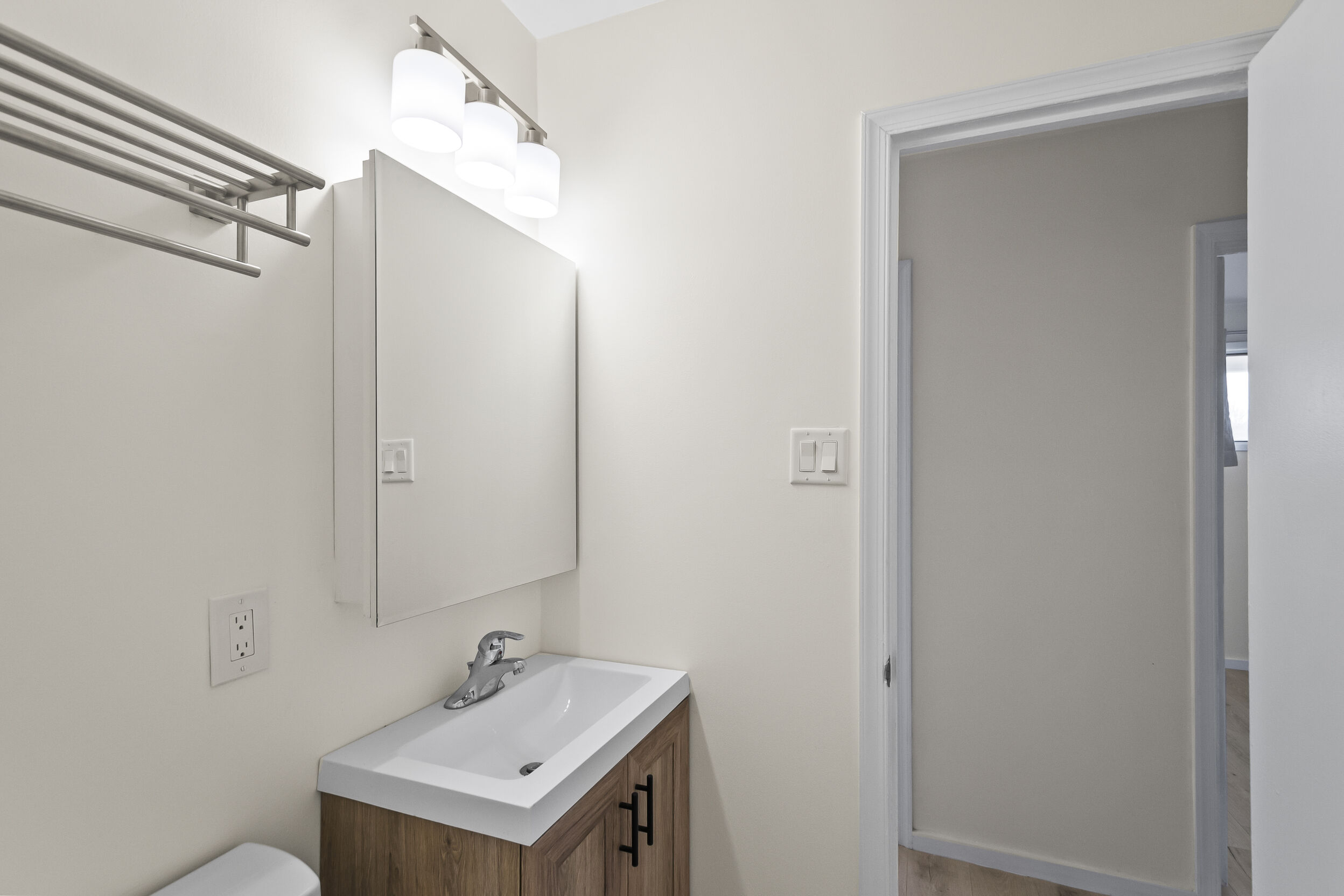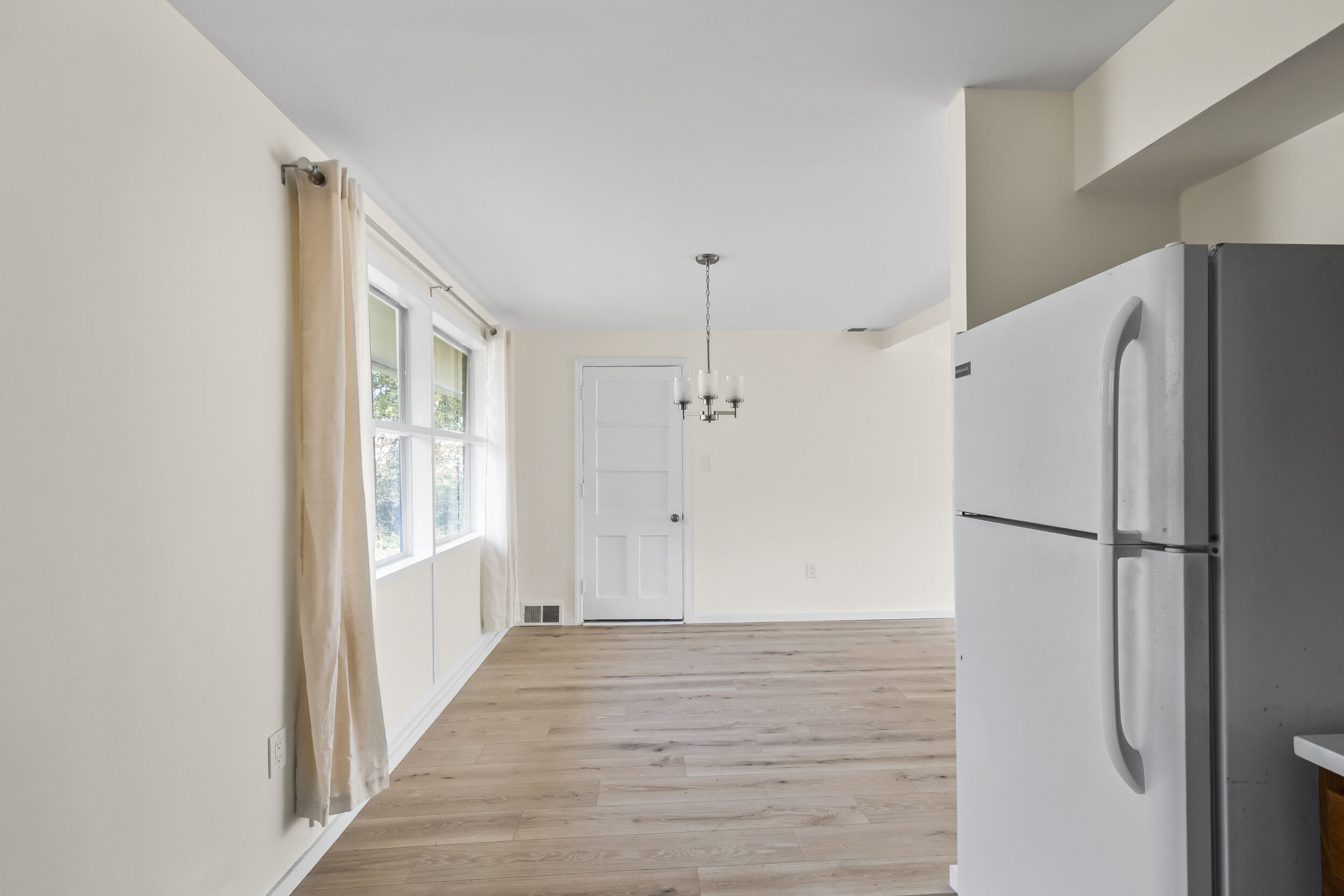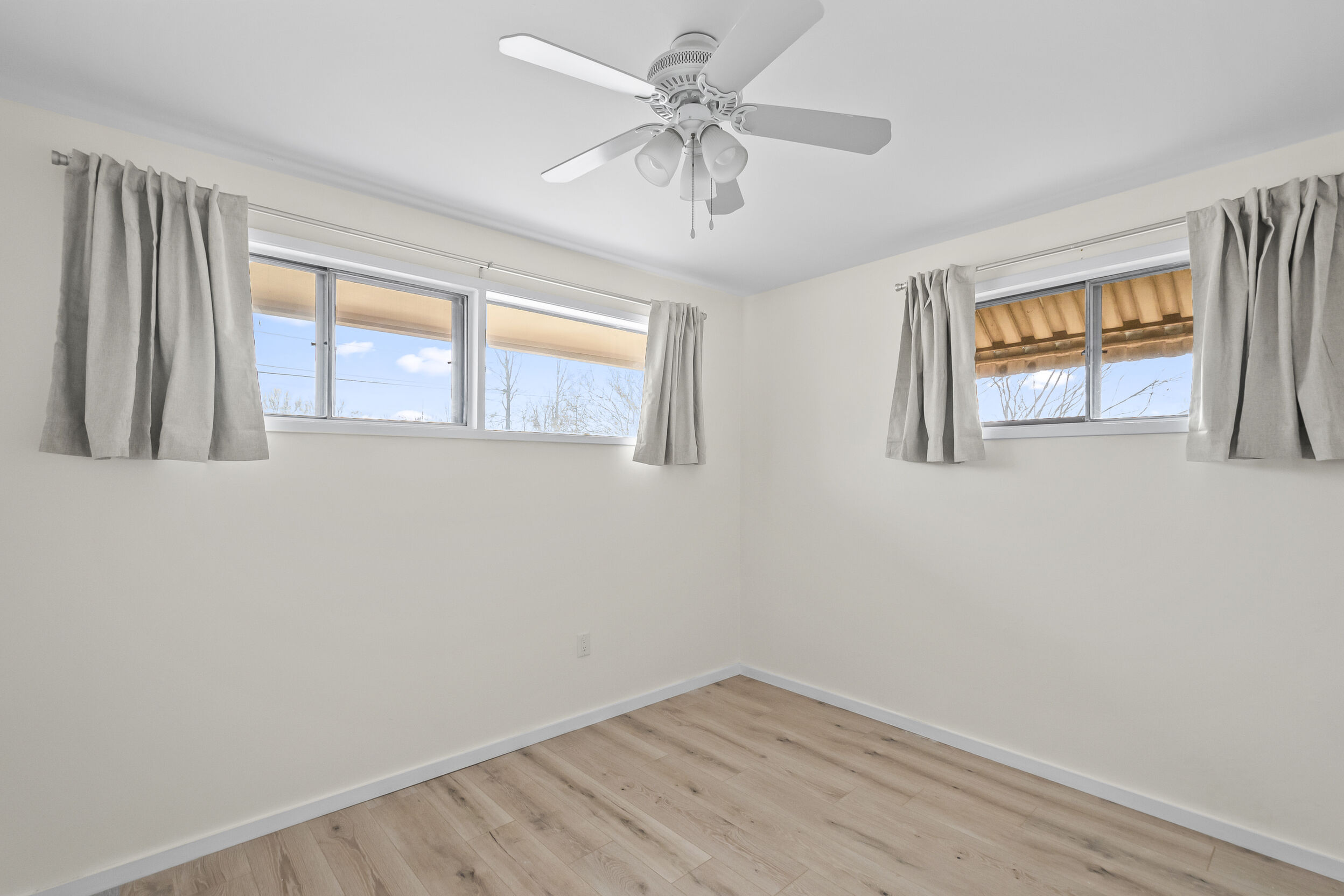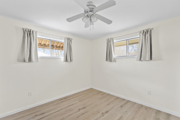 Outside, you'll find a large flat backyard, ideal for outdoor activities and gatherings. Whether you're hosting a barbecue or simply enjoying a quiet evening under the stars, this backyard is sure to become your favorite spot in the home.