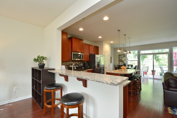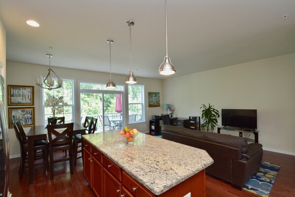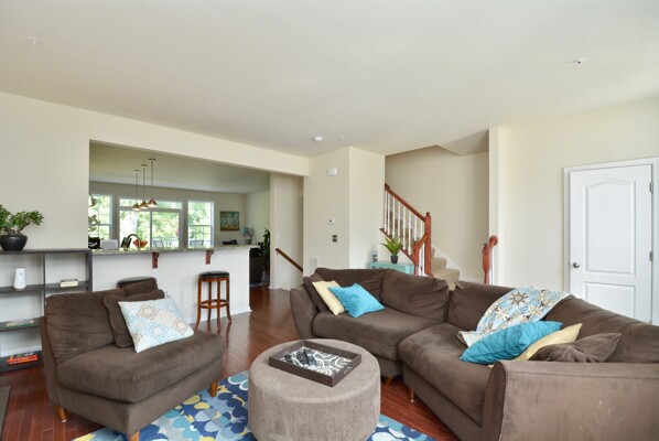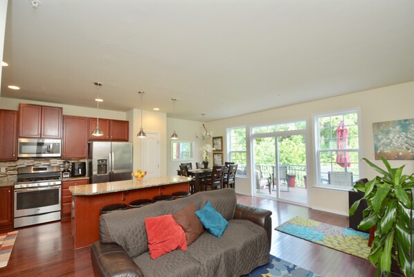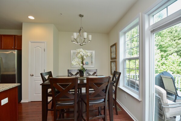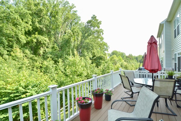 Come home after a long day and relax on your composite deck overlooking the wooded conservation area.