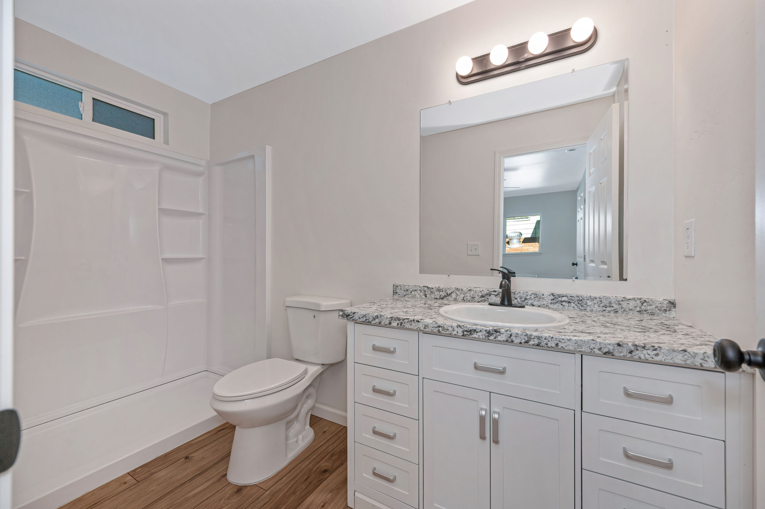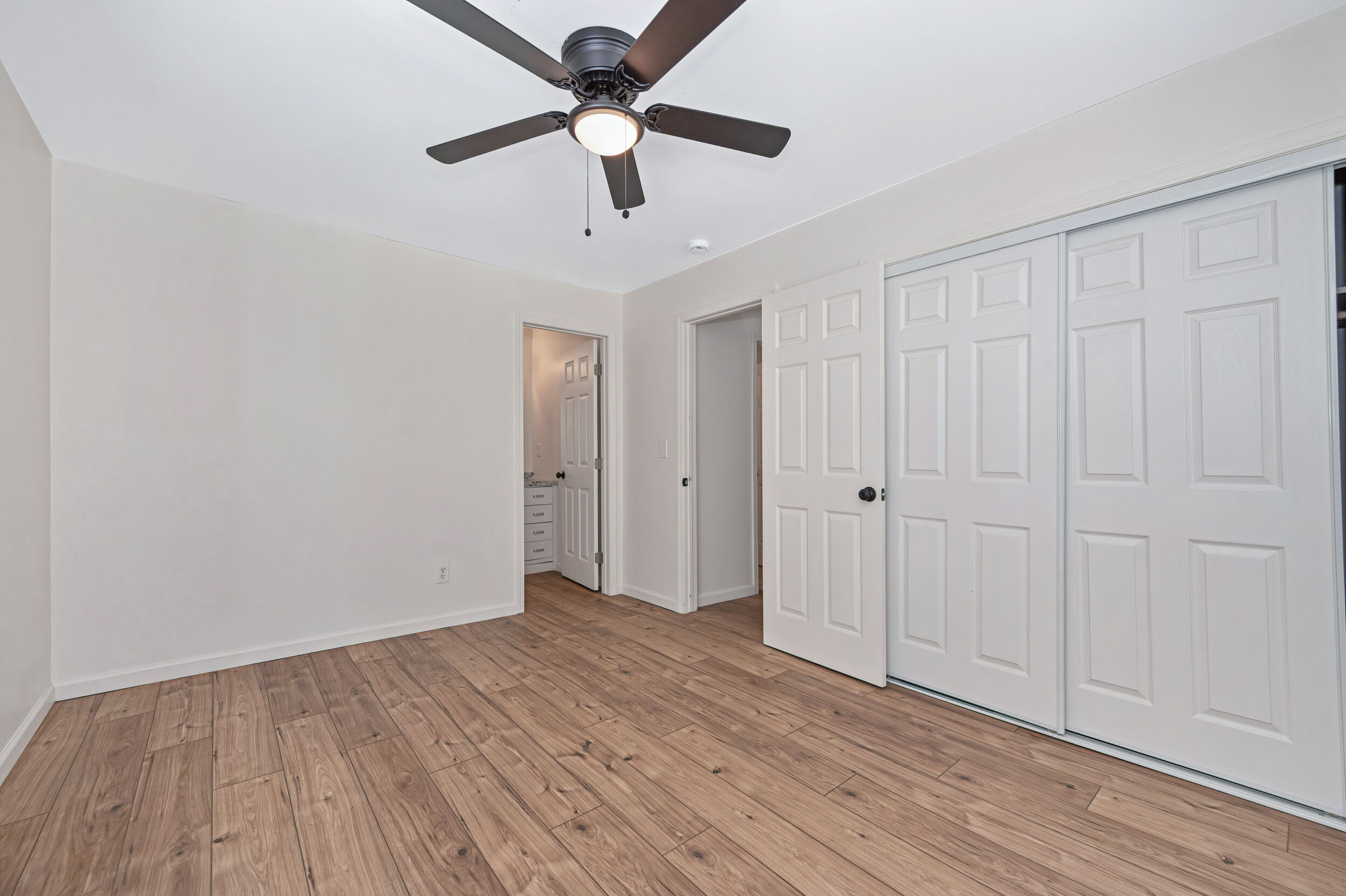 Both bathrooms have been stylishly refreshed with new vanities, fixtures, and a new shower enclosure, continuing the home’s clean, modern feel. The spacious primary bedroom features a sliding door that opens directly to a new back deck—perfect for morning coffee or relaxing in the evening.