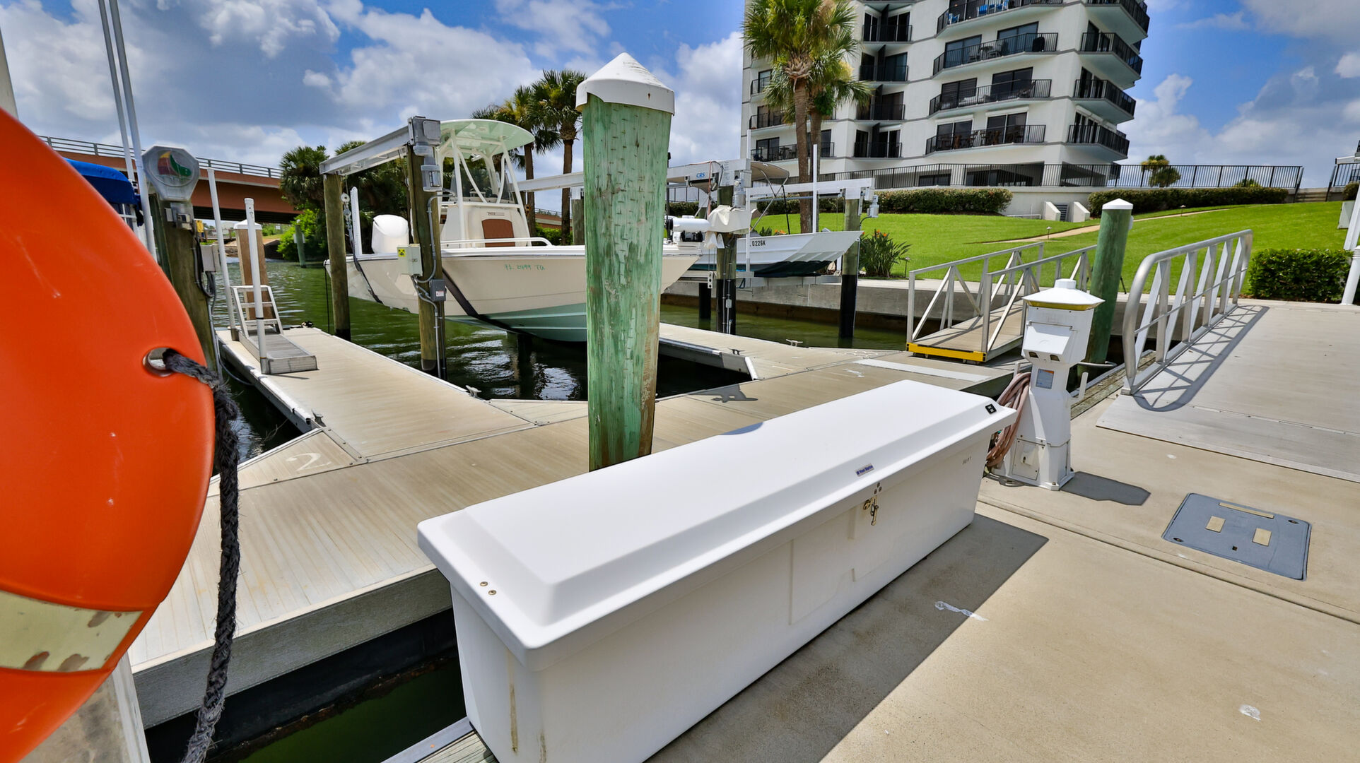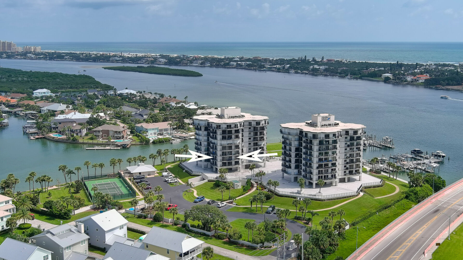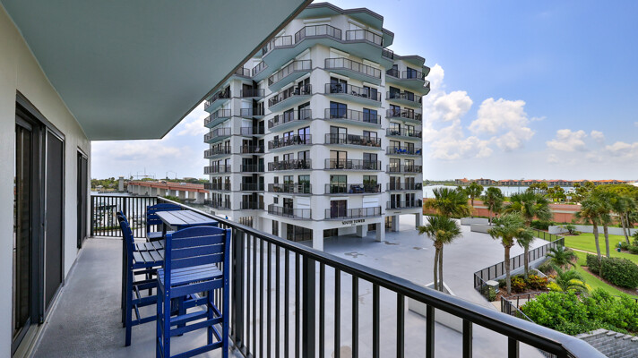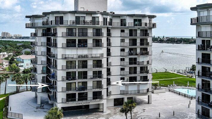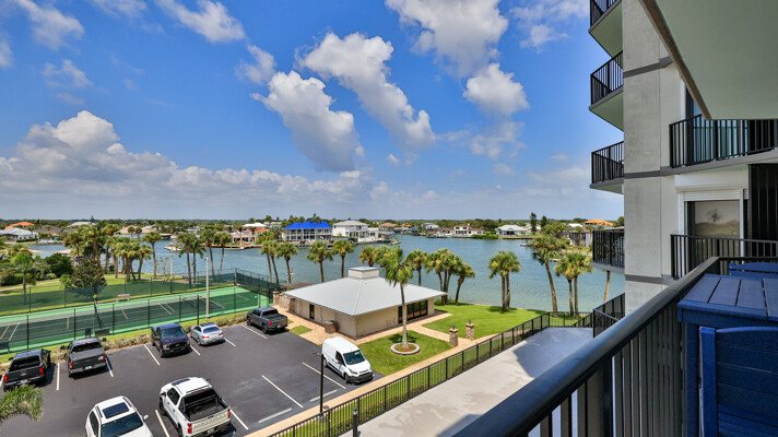 BRING YOUR BOAT, this beautifully renovated unit comes with a deeded boat slip with new lift and large dock box. Enjoy Intracoastal views and living at it finest at Diamond Head Point. This unit has been very nicely renovated in recent years, including new wind rated sliding glass doors throughout, wood look tile flooring throughout most of the condo, custom plantation shutters and crown moldings. Custom kitchen with floor to ceiling wood cabinetry most featuring soft close drawers and doors including a center island and extra built-cabinets in the adjoining dining area, and stainless steel appliances. All appliances convey including a full size stackable washer & dryer. Multiple balconies around this unit take on great water views. Huge master suite with his and hers closets, newly renovated bath with beautiful tiled large shower and vanity. Spacious guest suite with private balcony and adjoining guest bath. Diamond Head Point sits on 5 acres of beautifully manicured grounds. This beautiful condo is on the 2nd floor of living which is at the fourth level of the building. Amenities include a totally renovated clubhouse overlooking the canal, with kitchen available to rent upon request, riverfront pool, tennis/pickle ball courts, outdoor kitchen, plus a second grill off the pool deck, waterfront firepit area, fitness center, billiards table, meeting space, onsite office with fulltime manager, secure entrance, garage, and elevator lobby area, camera surveillance in multiple areas, ice machine room, kayak storage racks available to rent, fenced in dog park, and more. This beautiful condo comes with deeded boat slip number one with new lift and large dock box 205. There is a storage locker off the garage #205, deeded parking space #205 in the garage, plus additional guest/owner parking outside the garage. A short walk or golf cart ride across the bridge from this unit and you are on Flagler Avenue where you can enjoy shopping, dining, the beach and more. A Milestone Report has been completed and passed. This is a great opportunity for you to enjoy fine living and have your boat right there.
