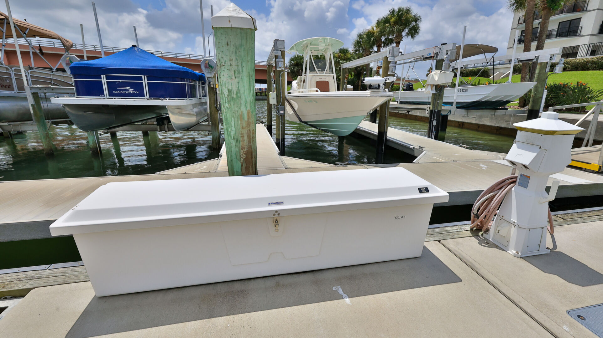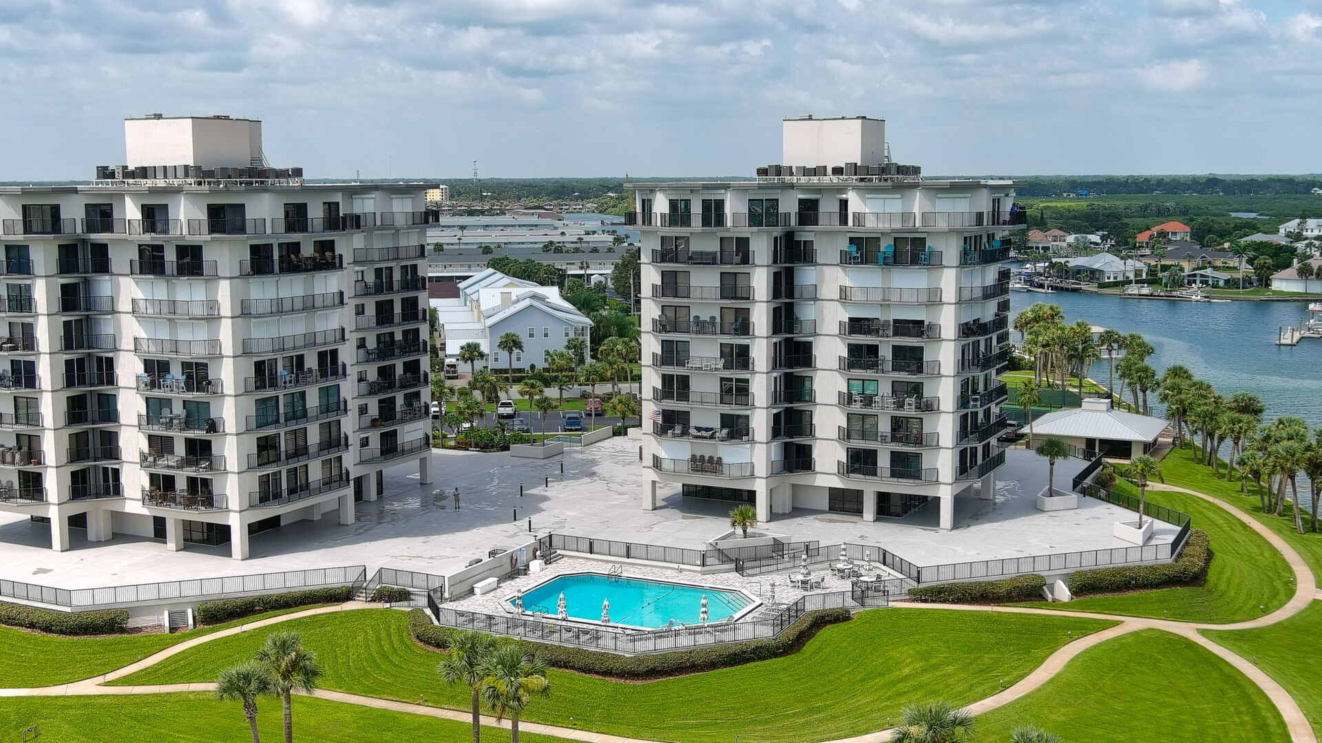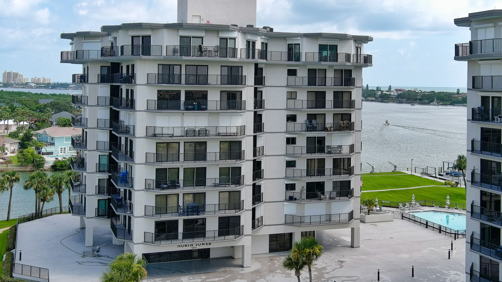 BRING YOUR BOAT, this beautifully renovated unit comes with a deeded boat slip with new lift and large dock box. Enjoy Intracoastal views and living at it finest at Diamond Head Point. This unit has been very nicely renovated in recent years, including new wind rated sliding glass doors throughout, wood look tile flooring throughout most of the condo, custom plantation shutters and crown moldings. Custom kitchen with floor to ceiling wood cabinetry most featuring soft close drawers and doors including a center island and extra built-cabinets in the adjoining dining area, and stainless steel appliances. All appliances convey including a full size stackable washer & dryer. Multiple balconies around this unit take on great water views. Huge master suite with his and hers closets, newly renovated bath with beautiful tiled large shower and vanity. Spacious guest suite with private balcony and adjoining guest bath. Diamond Head Point sits on 5 acres of beautifully manicured grounds. This beautiful condo is on the 2nd floor of living which is at the fourth level of the building. Amenities include a totally renovated clubhouse overlooking the canal, with kitchen available to rent upon request, riverfront pool, tennis/pickle ball courts, outdoor kitchen, plus a second grill off the pool deck, waterfront firepit area, fitness center, billiards table, meeting space, onsite office with fulltime manager, secure entrance, garage, and elevator lobby area, camera surveillance in multiple areas, ice machine room, kayak storage racks available to rent, fenced in dog park, and more. This beautiful condo comes with deeded boat slip number one with new lift and large dock box 205. There is a storage locker off the garage #205, deeded parking space #205 in the garage, plus additional guest/owner parking outside the garage. A short walk or golf cart ride across the bridge from this unit and you are on Flagler Avenue where you can enjoy shopping, dining, the beach and more. A Milestone Report has been completed and passed. This is a great opportunity for you to enjoy fine living and have your boat right there.