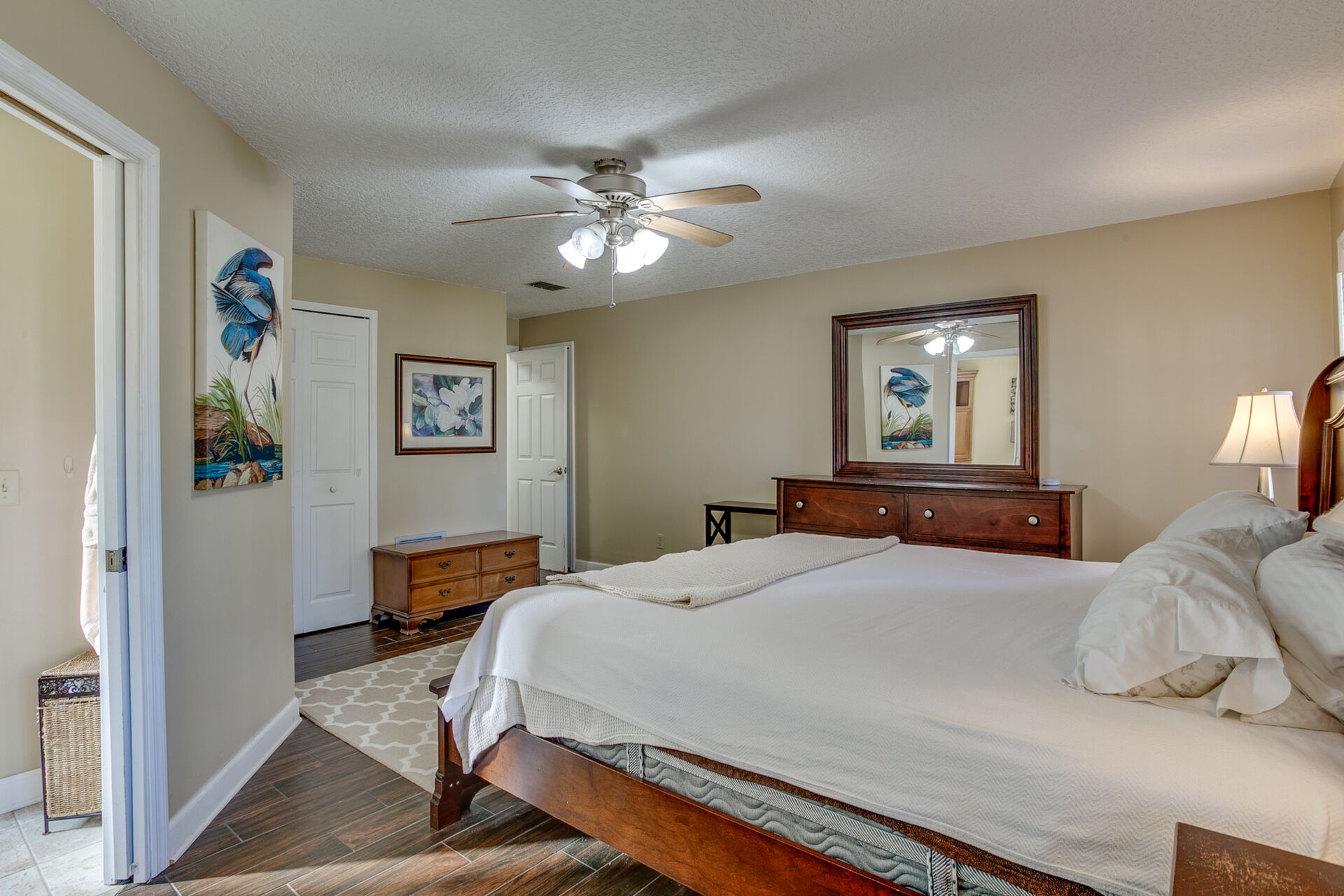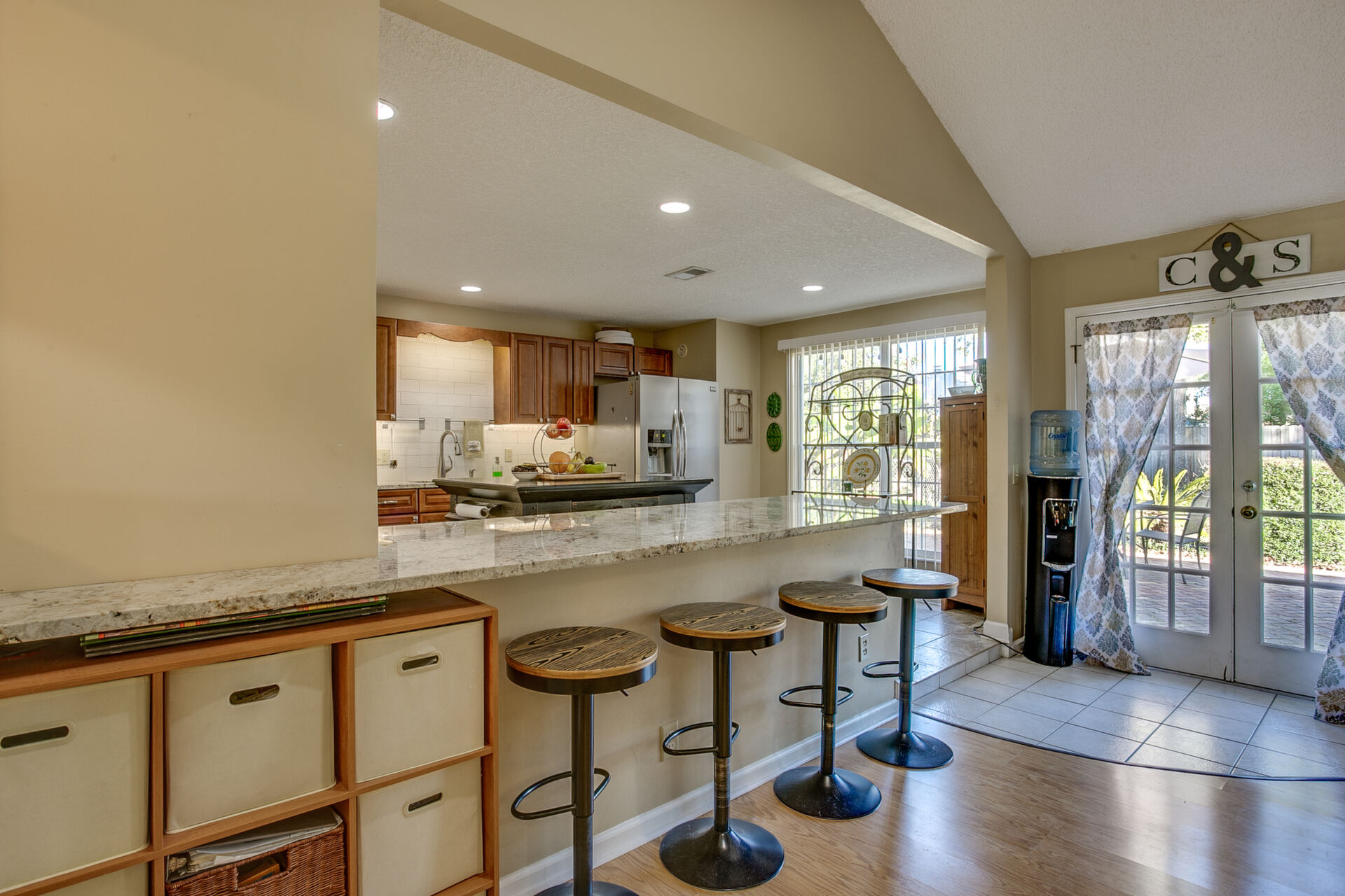 Must see lovely updated home in mature neighborhood. New roof, update electrical and pluming. Updated open kitchen with granite counter, prep-Island & stainless appliances . Solid surface floors through out home. Large mater bedroom w/ lots of closet space & nice size updated MB, large wraparound paver patio, with new fencing.
