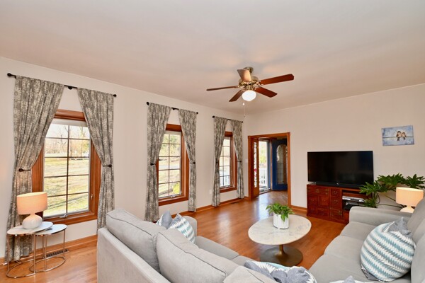 Enjoy hardwood floors, large light filled rooms, a primary suite with an updated bath with deluxe shower, finished recreation room and so much more.