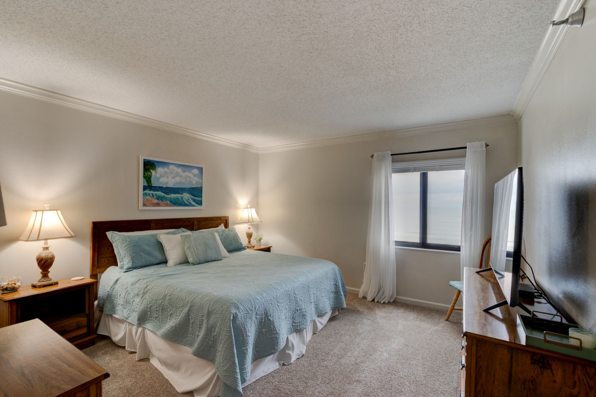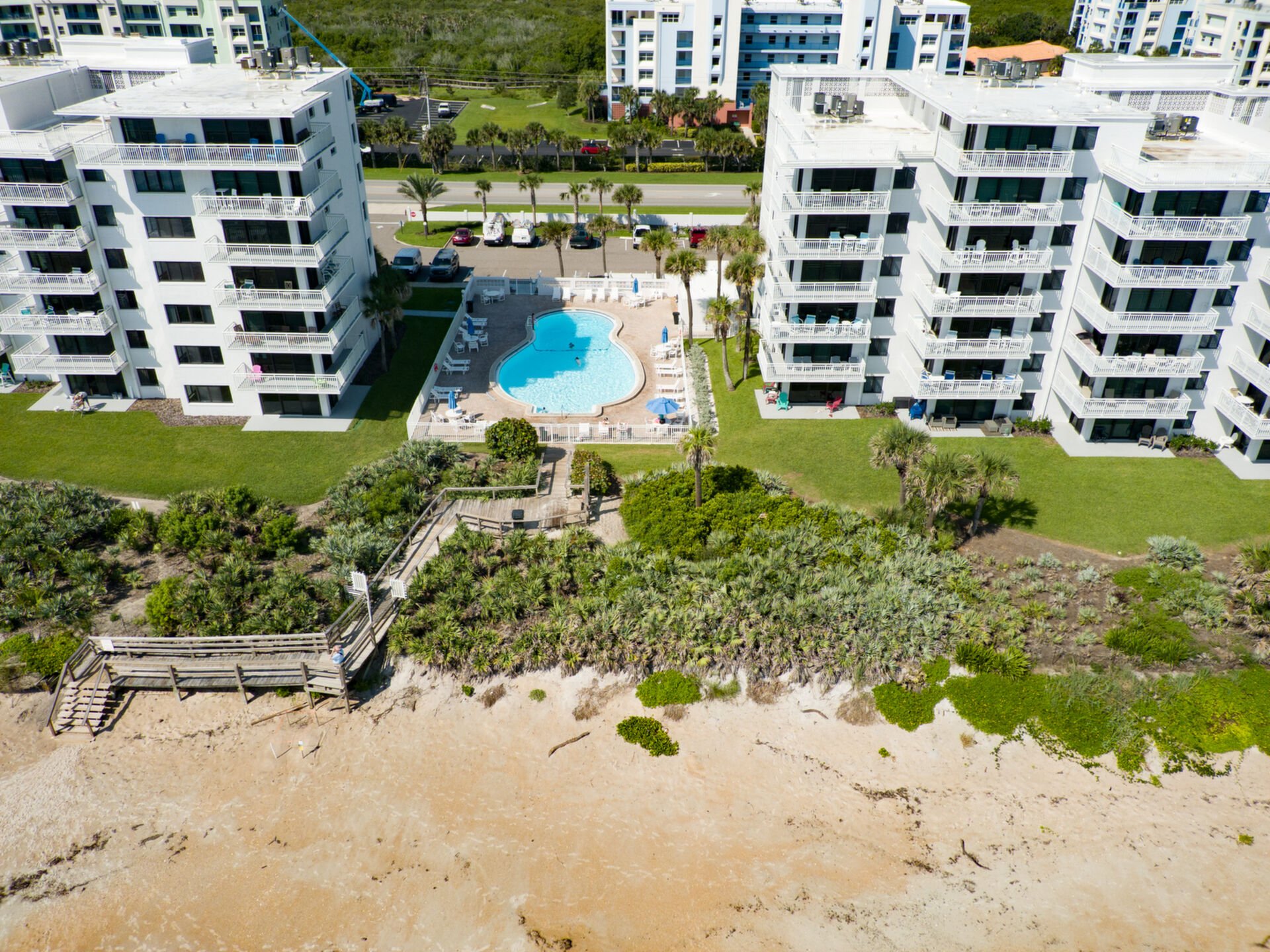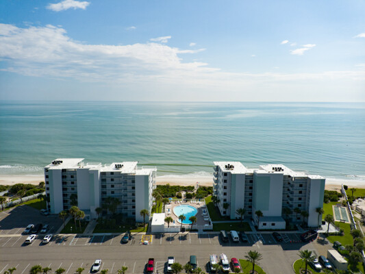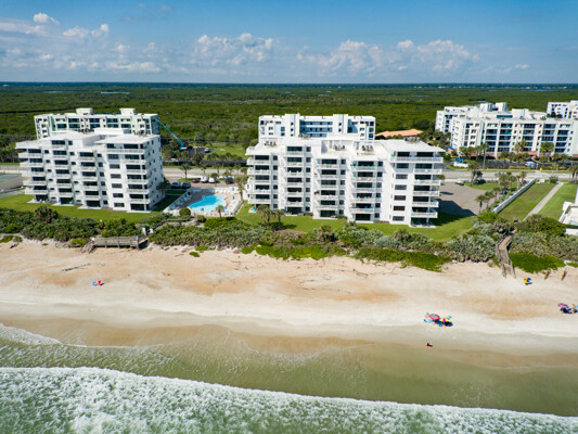 Imagine waking up each morning to the soft hues of sunrise over the Atlantic Ocean, visible from your wrap-around balcony in this beautiful 2-bedroom, 2-bathroom, direct oceanfront condo. Located on the coveted No Drive Beach of South New Smyrna, this unit offers panoramic views of miles of pristine coastline. The interior has been thoughtfully furnished with a coastal design and an open-concept living area drenched in natural light. The primary suite offers a serene retreat with a king-size bed, a large ocean-viewing window, and an elegant en-suite primary bathroom. A spacious guest bedroom and guest bathroom provide comfort and convenience for visitors. The unit also includes a stackable washer and dryer and features neutral tile and luxury vinyl plank flooring with carpet in bedrooms to complete this retreat home. Shorehom By The Sea, renowned for its rental zoning, has recently undergone extensive renovations, including newly restored balconies, and hurricane-rated windows, sliders, and doors, making this complex one of the most updated in New Smyrna Beach. All assessments have already been paid. Additional amenities include a walk-in closet in the primary bedroom, an owner closet within the condo, a large shared storage area on the 5th floor, a gas grill for the complex, multiple outdoor showers, and new restrooms in the pool area. Residents also benefit from a full-time property manager on-site. As a resident, you’ll enjoy private beach access, a heated pool for year-round enjoyment, and the peace of mind that comes with a meticulously maintained property. Located minutes from the vibrant dining and shopping experiences of Flagler Avenue and Canal Street, and just a short drive from Canaveral National Seashore, this condo offers the perfect blend of luxury, convenience, and potential for lucrative rental income. Don’t miss your chance to own a piece of paradise; this stunning beachfront retreat won’t last long.