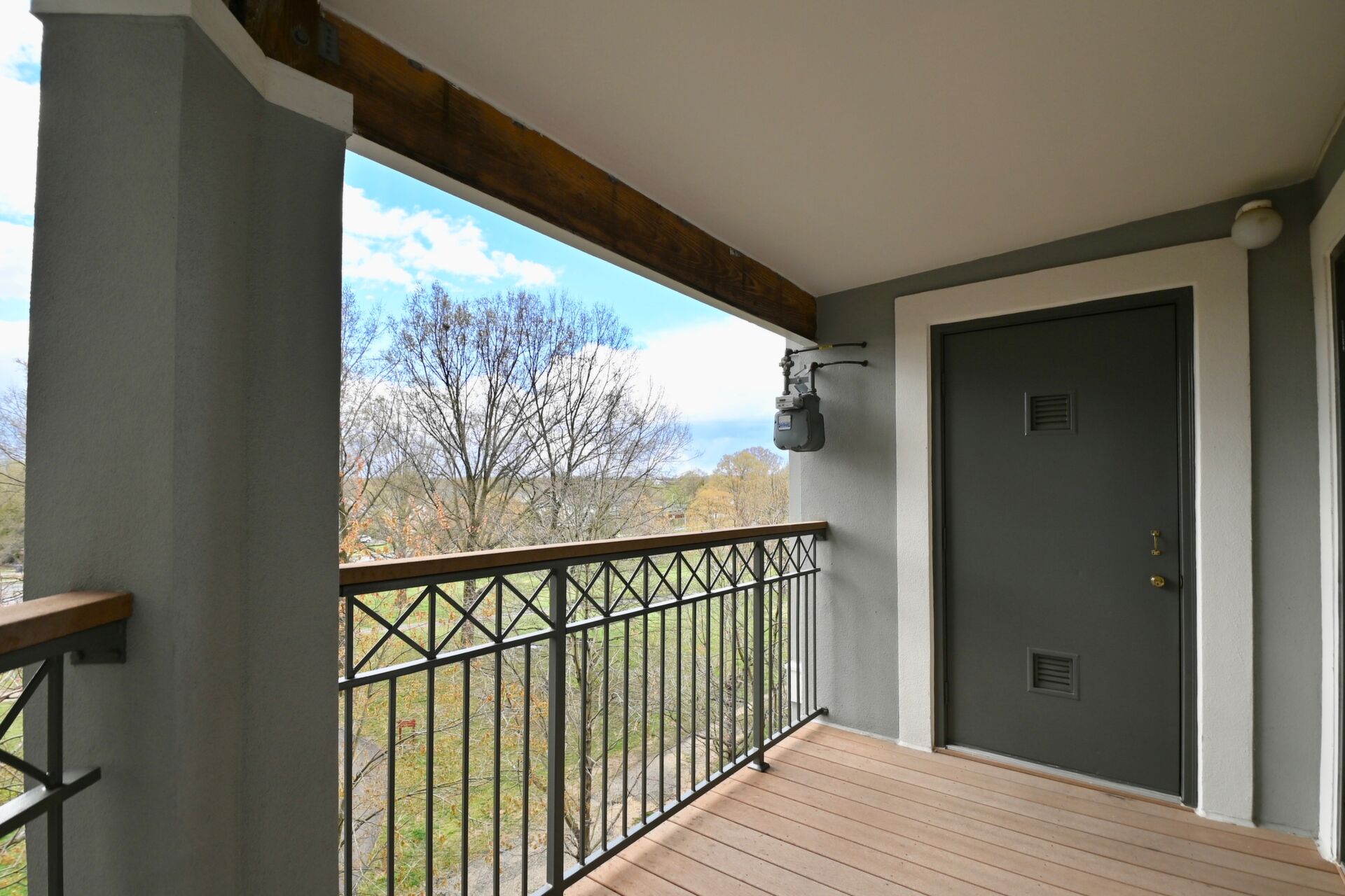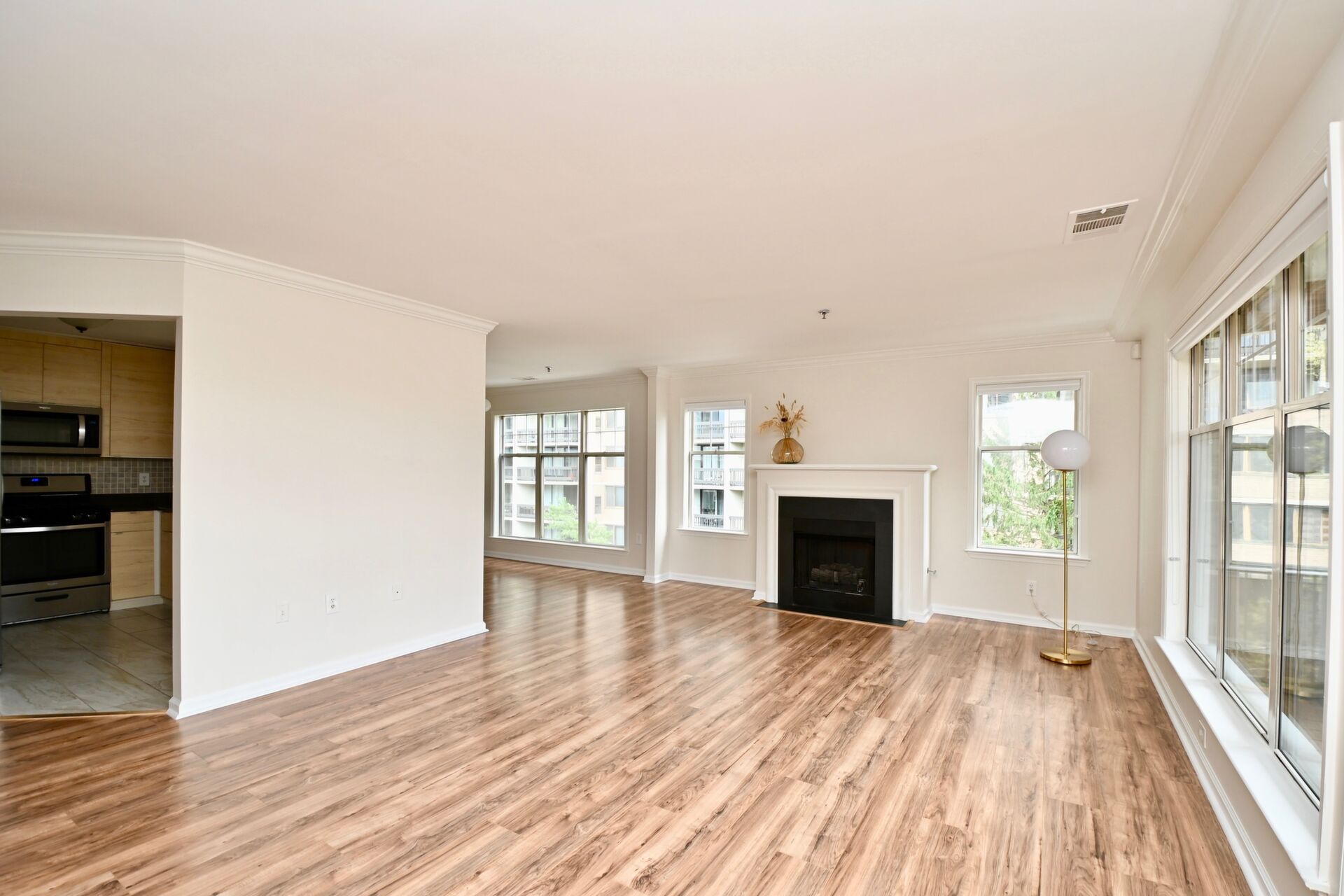 This home boasts a large sun filled living room with a cozy fireplace, primary bedroom with private bath and walk-in closet and a balcony that is perfect for relaxing on after a long day.