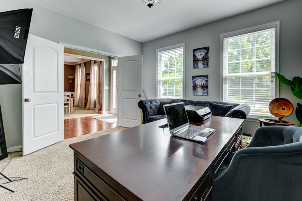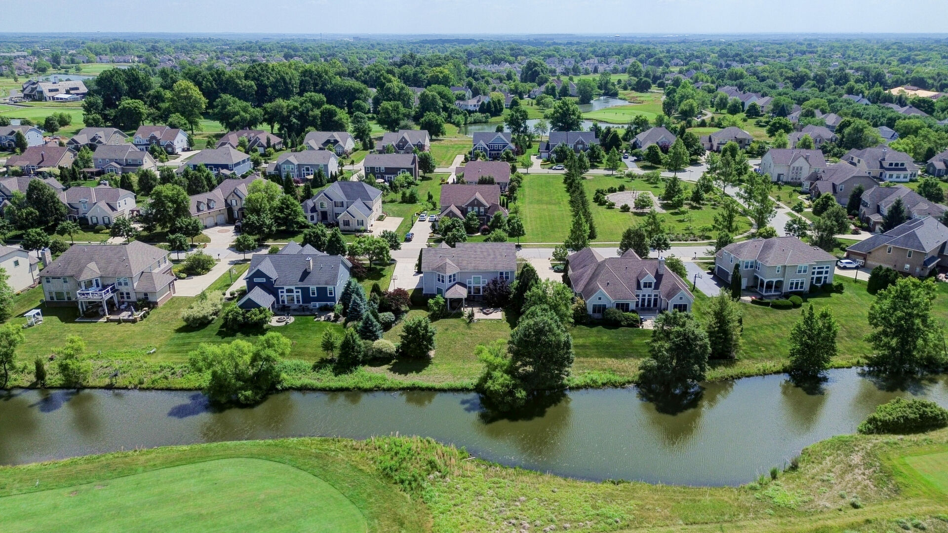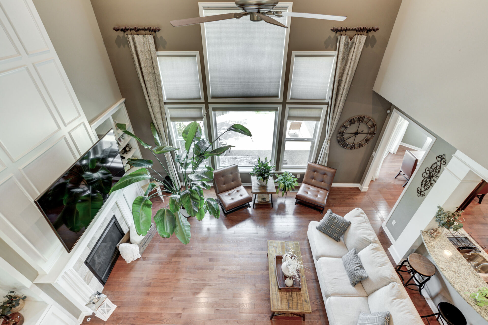 The main floor features a formal dining room, private den, and a flexible space perfect as a guest bedroom or additional family room. The heart of the home is the expansive great room, showcasing a breathtaking wall of windows with panoramic views of the golf course.