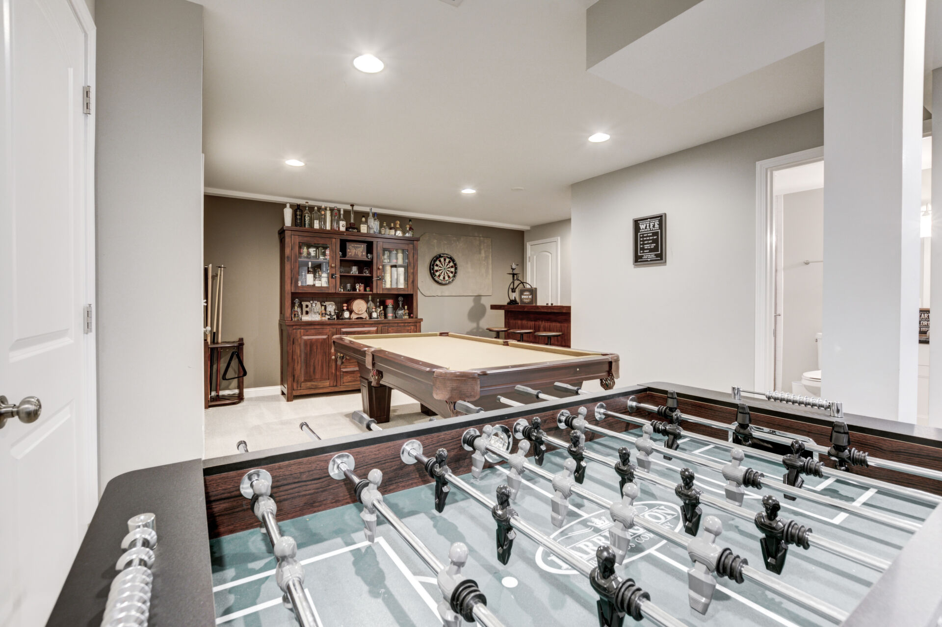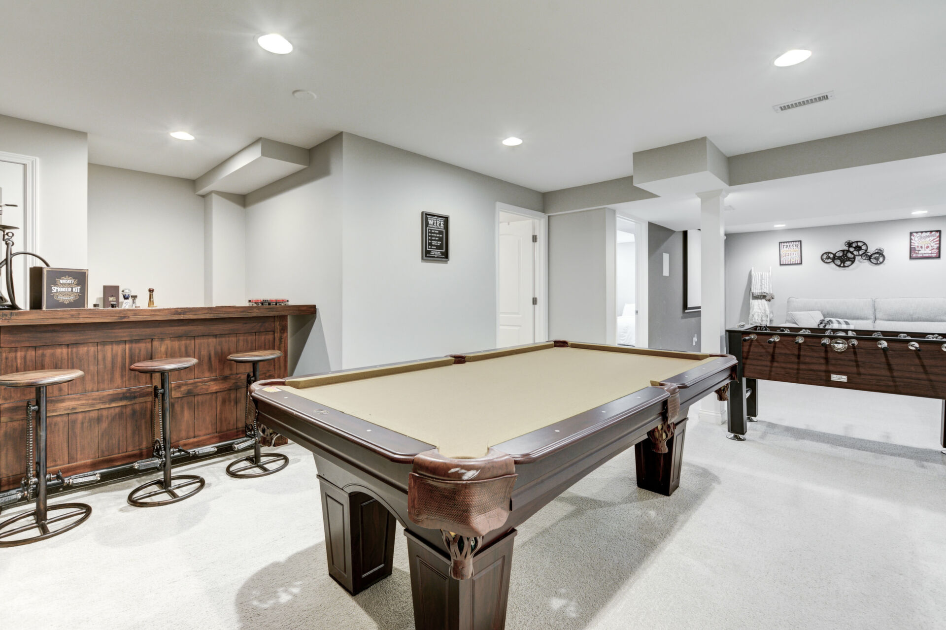 Upstairs, the luxurious owner's suite includes a serene sitting area with more stunning views, a spa-like bath with double vanity, and a massive walk-in closet. The fully finished lower level expands your living space with a media room, exercise area, and recreational space perfect for games like pool or foosball.