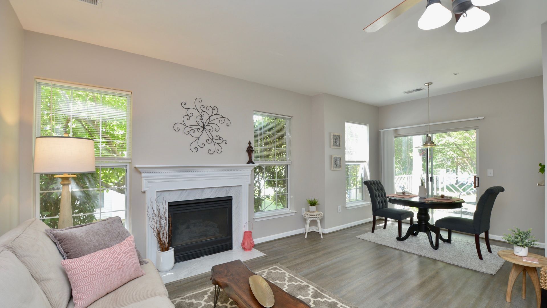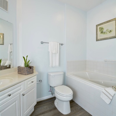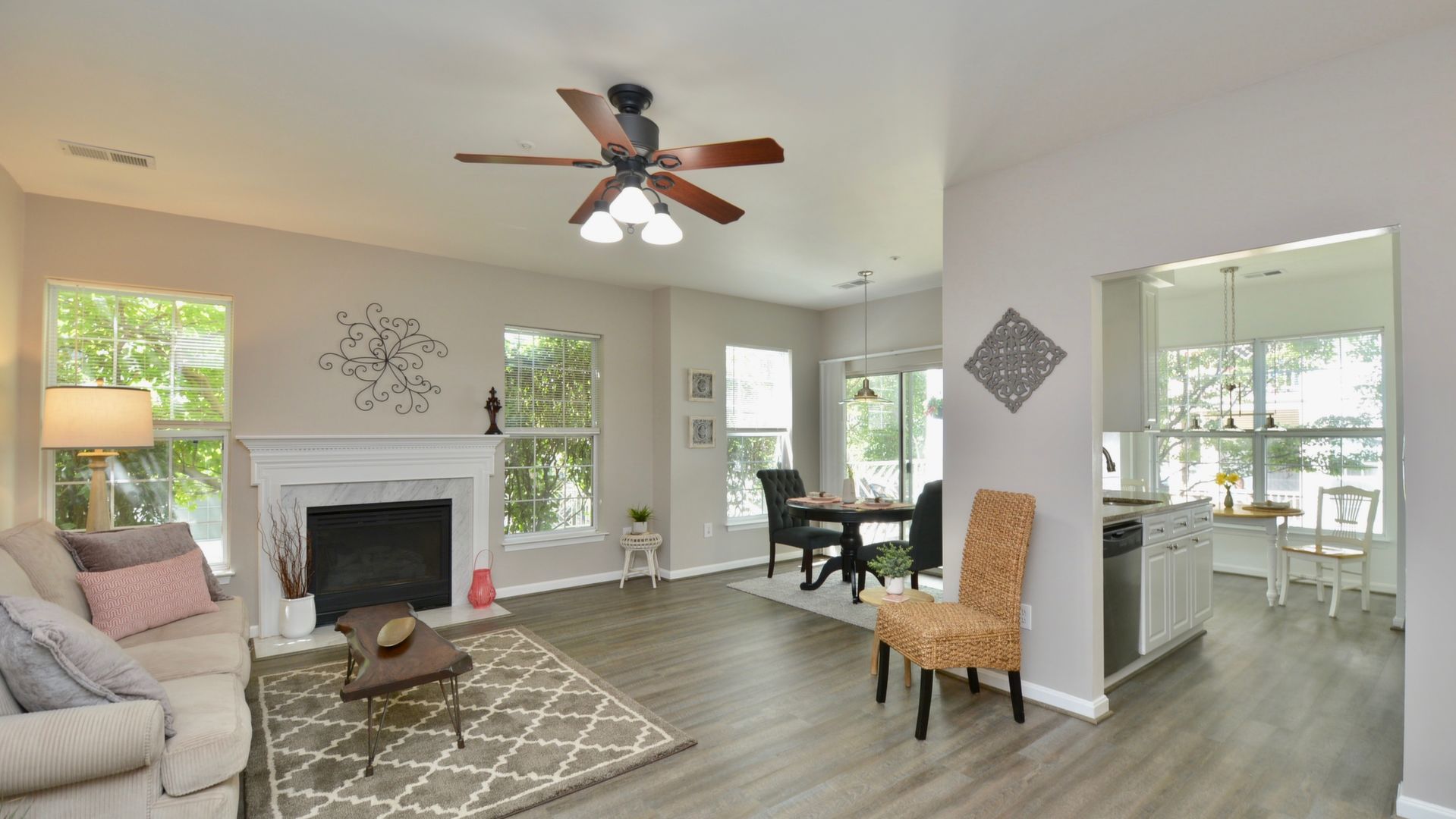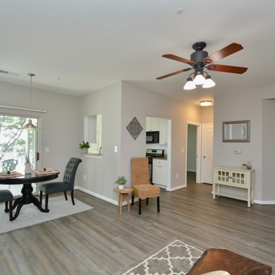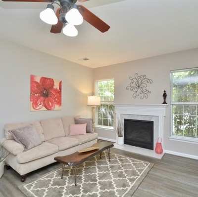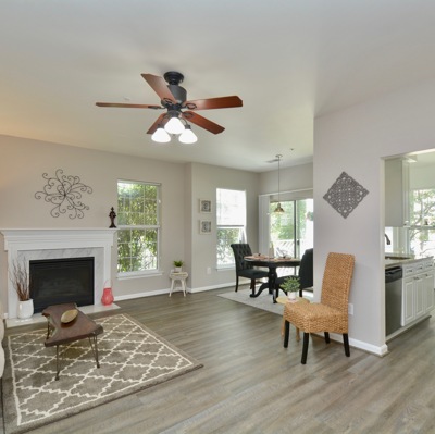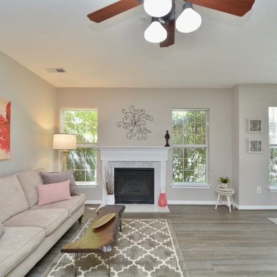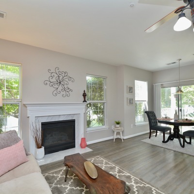 Enjoy one level living that is located right across from the community center. This home features updated floors, newer kitchen and updated baths. On summer days unwind on your patio or in your Jacuzzi tub. On cold winter nights cozy up in front of this fireplace!