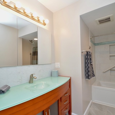 Single-family home feel, but with condo convenience & amenities! Fully renovated, spacious 3 bedroom/2 bath home that is ready to move into & enjoy! Enjoy the treehouse feel, as you relax on your two enclosed balconies with sunrise and sunset views, trees, city lights, & even the Potomac River. Or entertain with the updated, open, newer kitchen & separate dining room; you will appreciate the convenience of the renovated bathrooms, one with a step-in shower & the other with a soaking tub. This home includes a GARAGE space as well as STORAGE space. Montebello offers a community center (undergoing renovation soon) & so many amenities that you will see no need to leave! But if you do, the shuttle or path will take you to the Huntington Metro & shopping, & we are 2 traffic lights from 495!