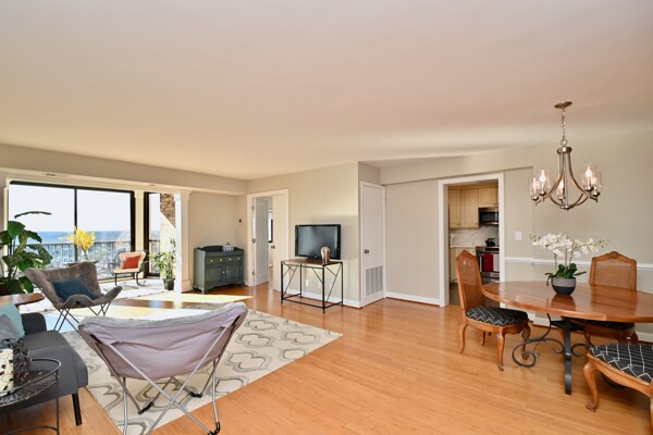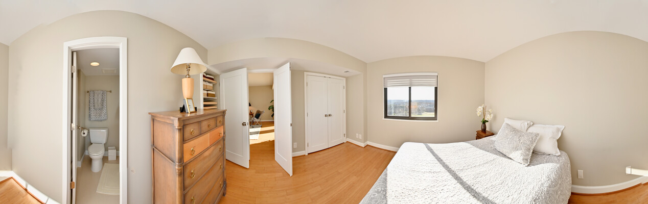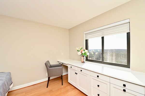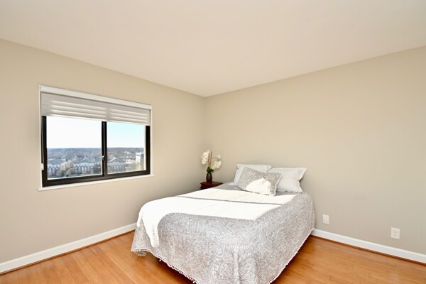 Experience a carefree lifestyle in the luxurious Montebello resort community, minutes from Old Town Alexandria! This tastefully renovated condo boasts dramatic bamboo flooring throughout and a stunning kitchen. You will love the versatility and elegance, with an enclosed balcony seamlessly opened to the living room for year-round enjoyment that offers panoramic sunset views from the 15th level. This is the only model that offers the privacy of two bedroom suites, on opposite sides of the common areas. (Both with Elfa closet systems, too!) Upgraded doors, hardware and lighting adorn the space, while the enclosed balcony features dramatic trim and additional outlets. Say goodbye to popcorn ceilings as they've been removed throughout, and the dining room has chair rail molding.