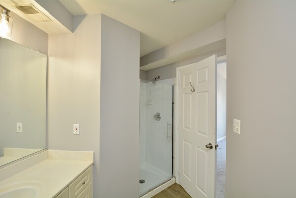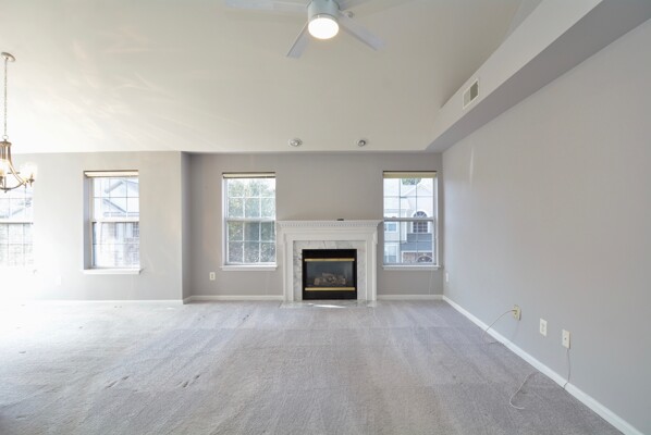 This home features fresh paint, a beautiful bright open living/dining combination with a cozy fireplace, primary bedroom with a walk-in closet and each bedroom has its own bathroom!