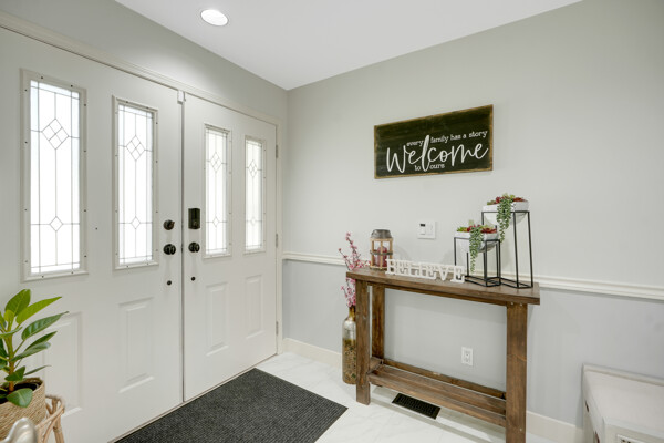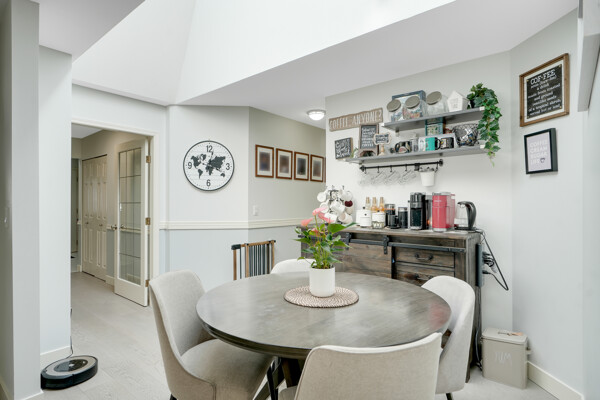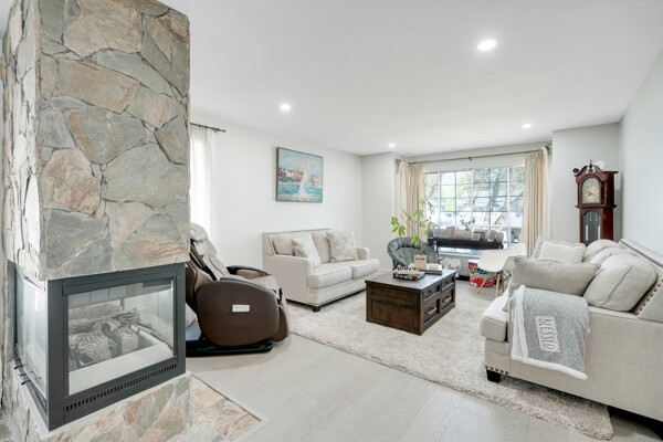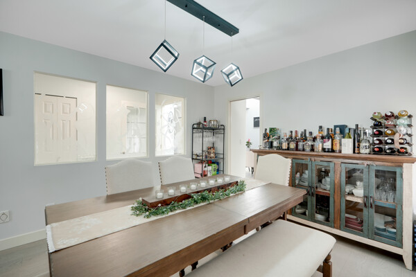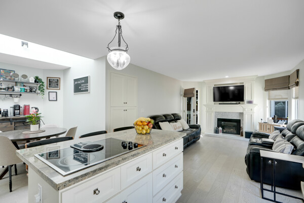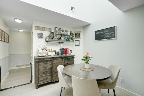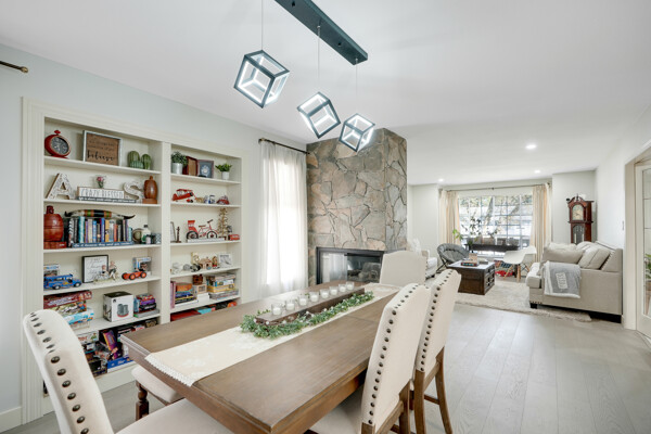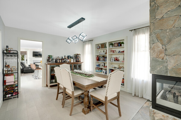 conditioning and two cozy fireplaces. High-end crown moldings grace the dining room, while engineered hardwood floors add elegance throughout.