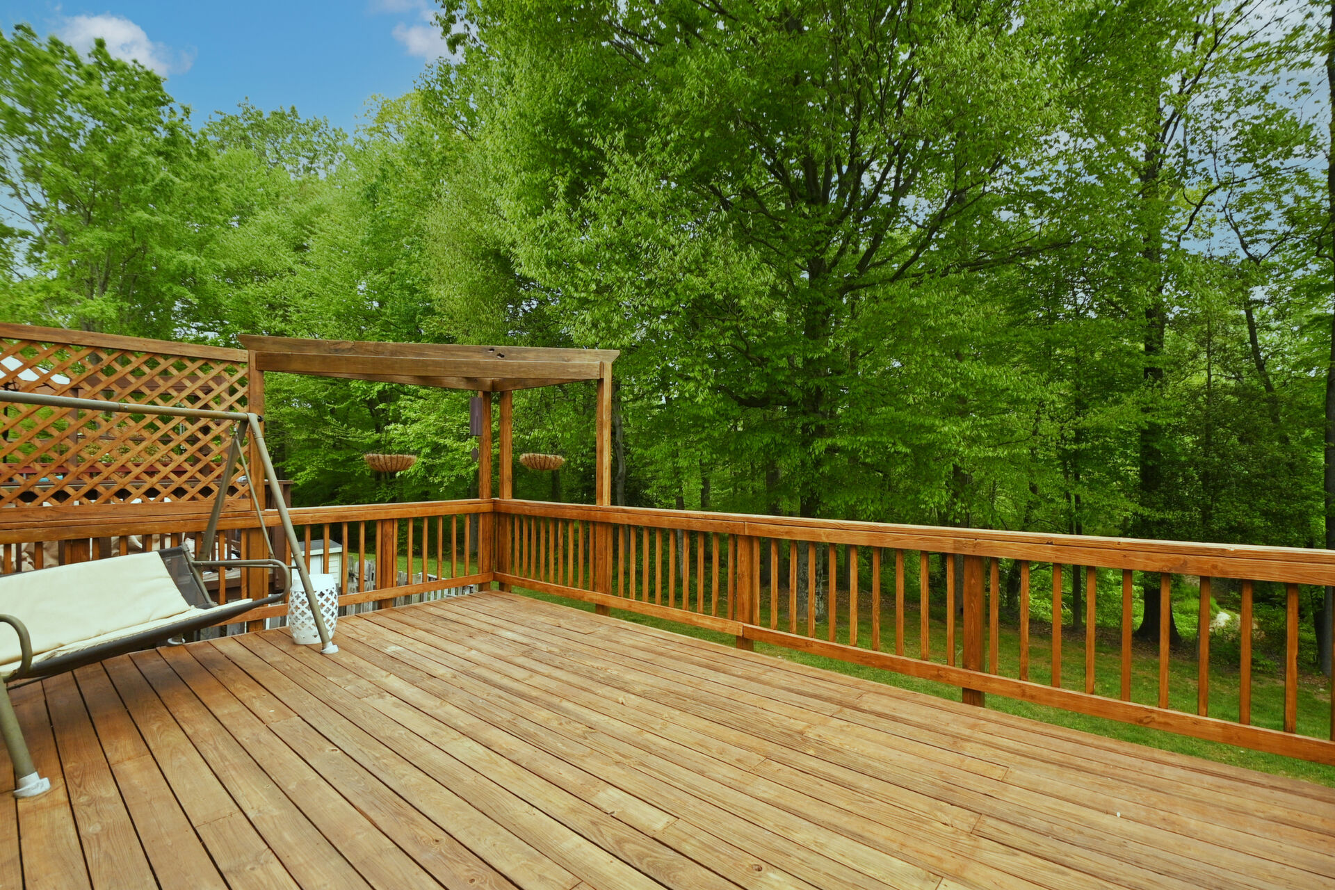 Come home at the end of the day and relax on your deck while enjoy a view of the woods and creek.