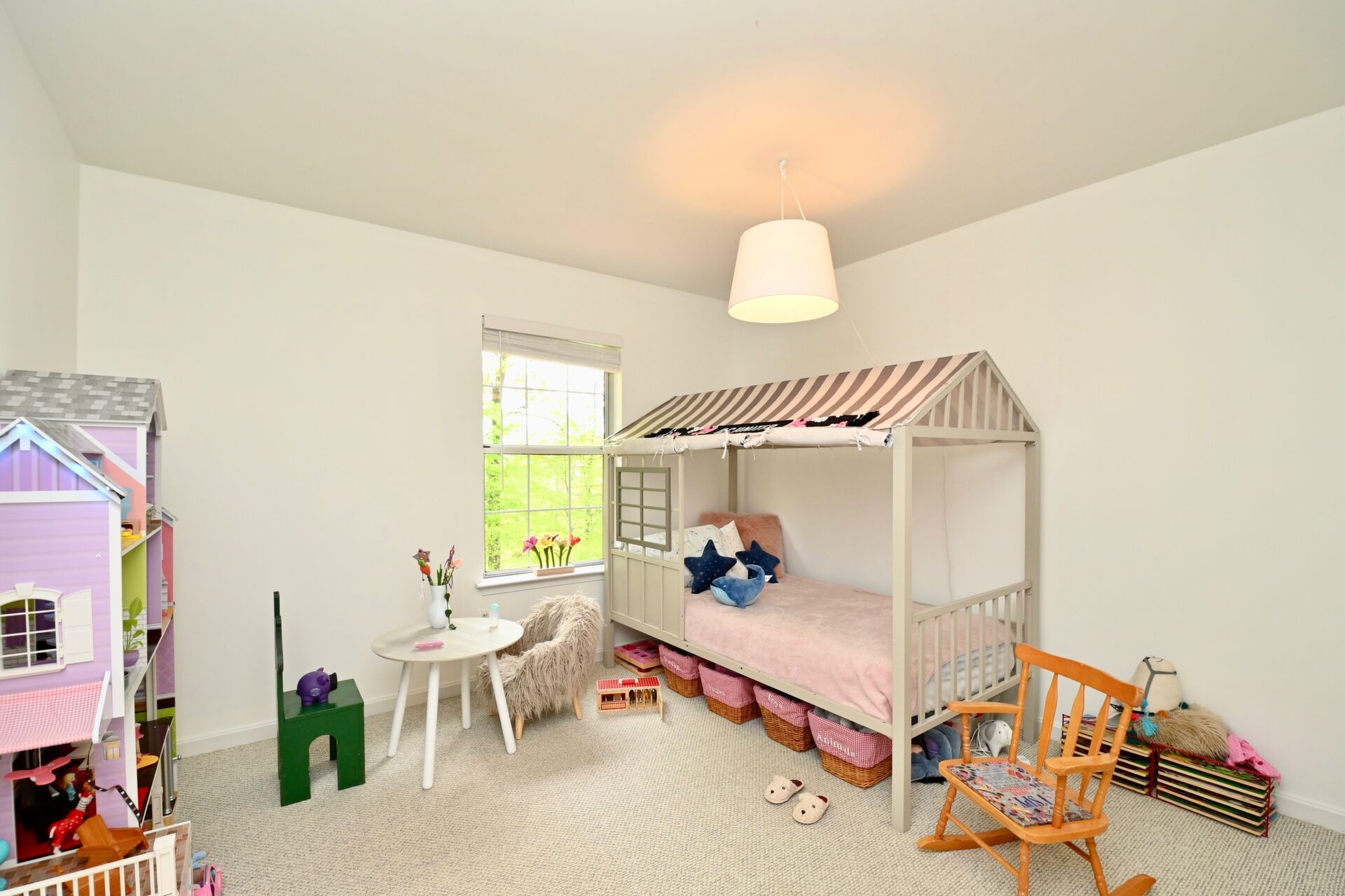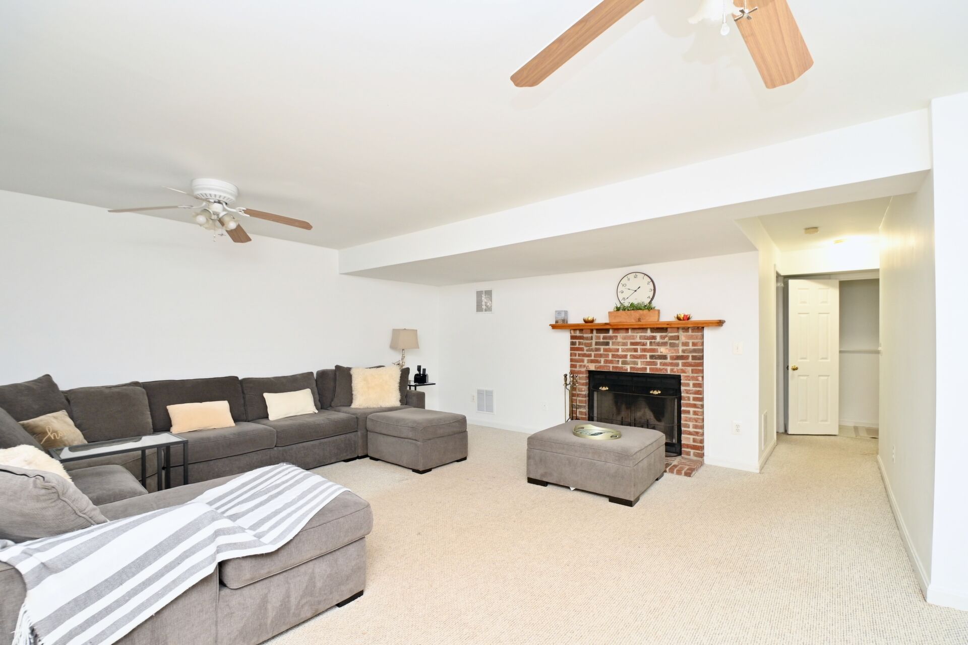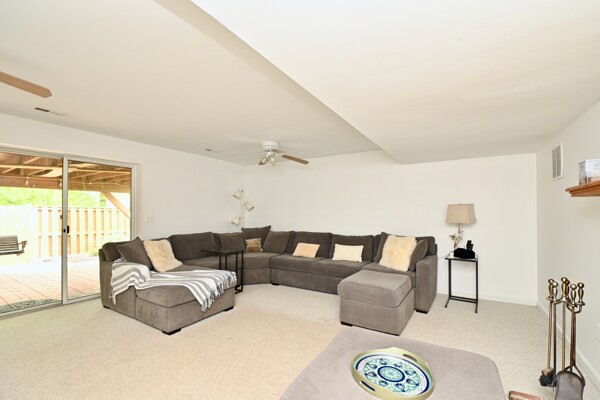 This home boasts a cozy fireplace in the recreation room, large primary bedroom with private bath, beautiful open kitchen with island seating and more.