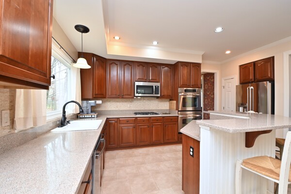 This home features hardwood floors, elaborate crown molding, recessed lighting, kitchen with stainless steel appliances, beautiful traditional floor plan and just so much more.