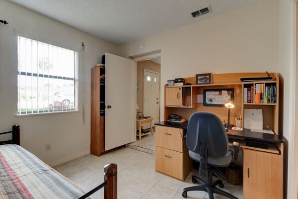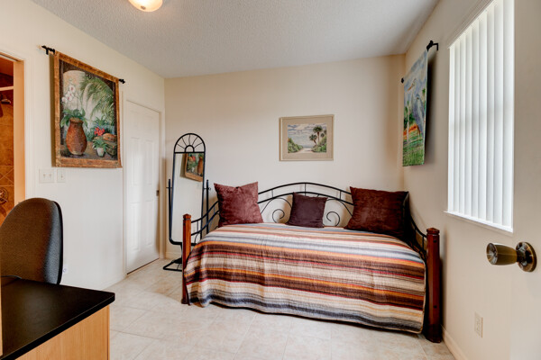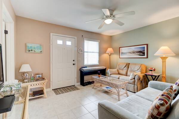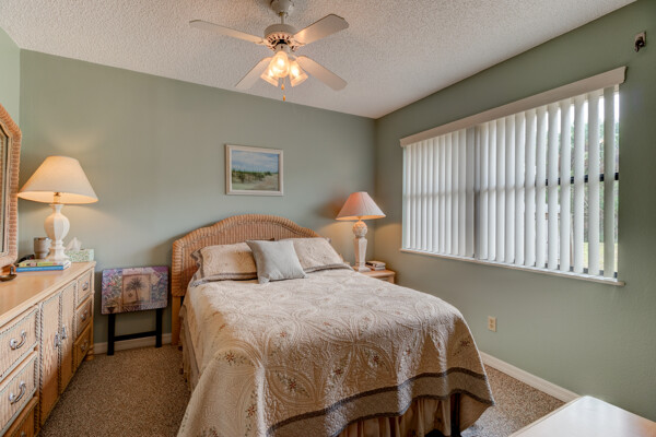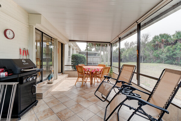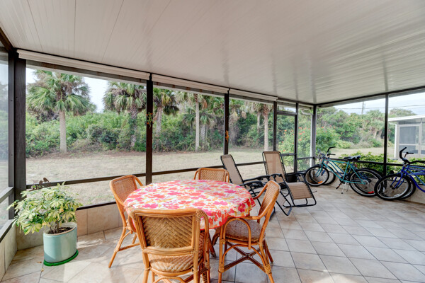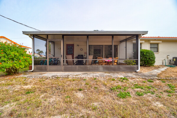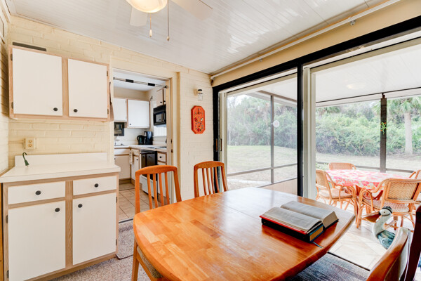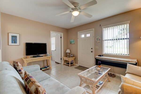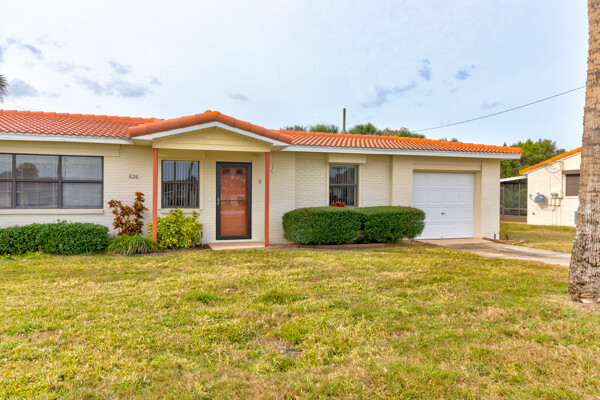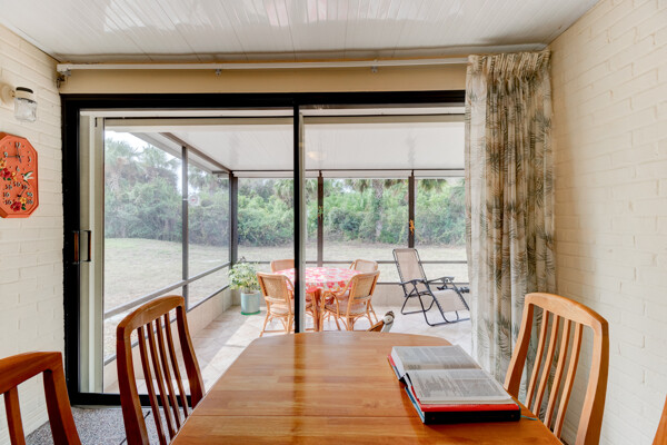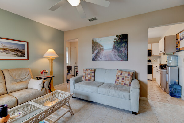 Tired of paying those high Condo fees? This semi-detached bungalow allows you the beach life without the cost. Fully furnished and equipped throughout, this 2 private bedrooms and 2 full remodeled bathrooms plus a driveway, garage, and a workbench makes this Villa stand out from the rest. Extra large tiled lanai with new screening, lots of cupboard space in the kitchen plus a separate dining room with a 8 foot patio door to lanai allows more room to roam also a separate conveniently located laundry closet with large W/D. These Villas are well cared for by HOA including exterior, painting, grass cutting, trimming, pressure-washing, plus a short walk to the pool, tennis, and shuffle board courts all included for just $90 per month! New A/C 12/22, concrete tile roof 12/23, refrigerator 11/23, and a bug bond makes this home move-in ready without the expensive overhead you might be concerned with. Hurricane shutters with remote shuttered patio door gives you peace of mind while you are away. Conveniently located to the beach, parks, and restaurants.