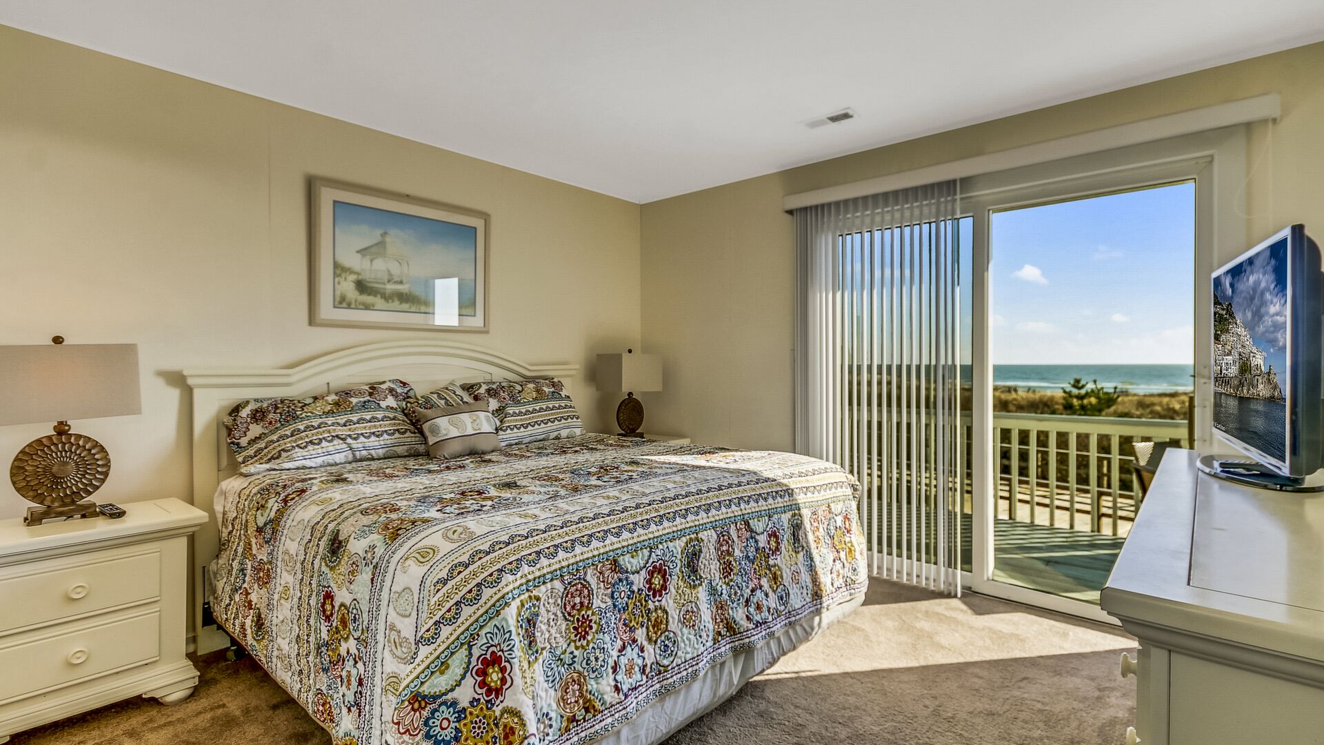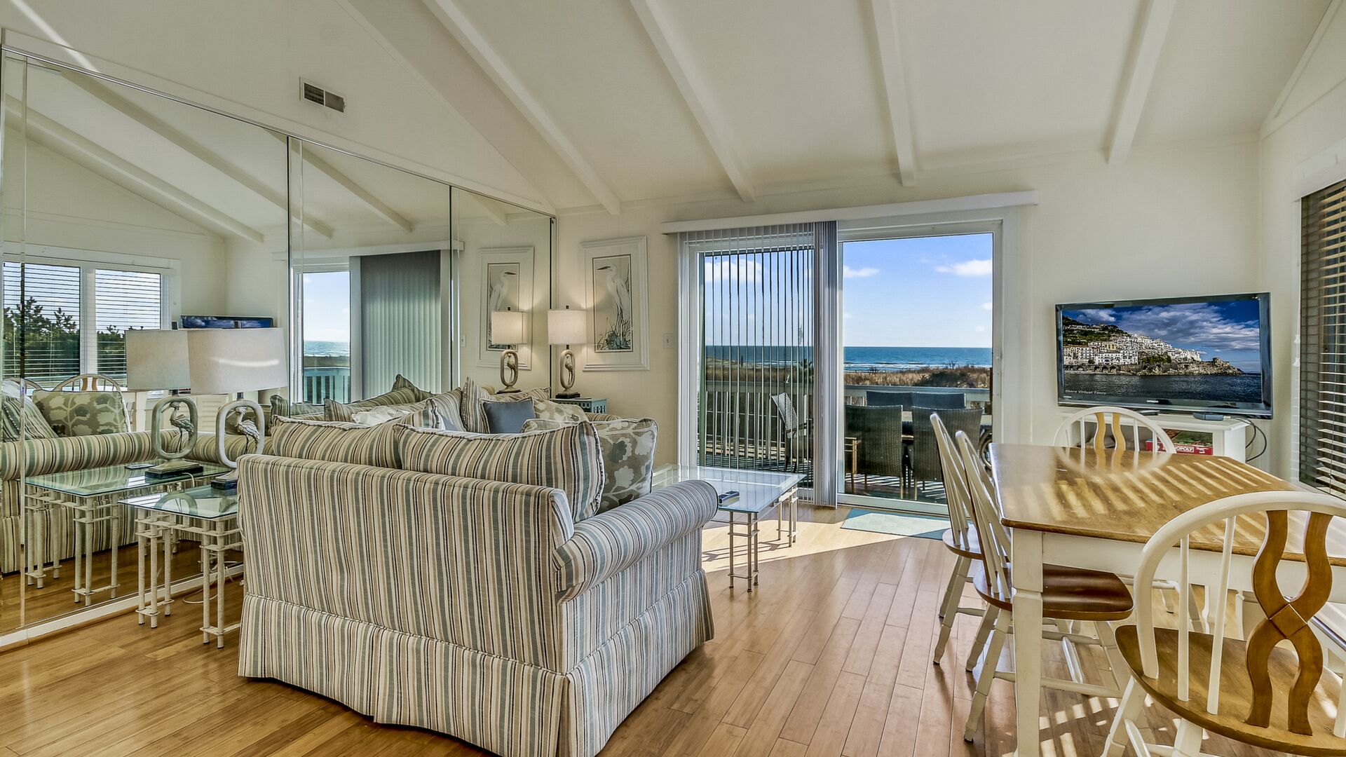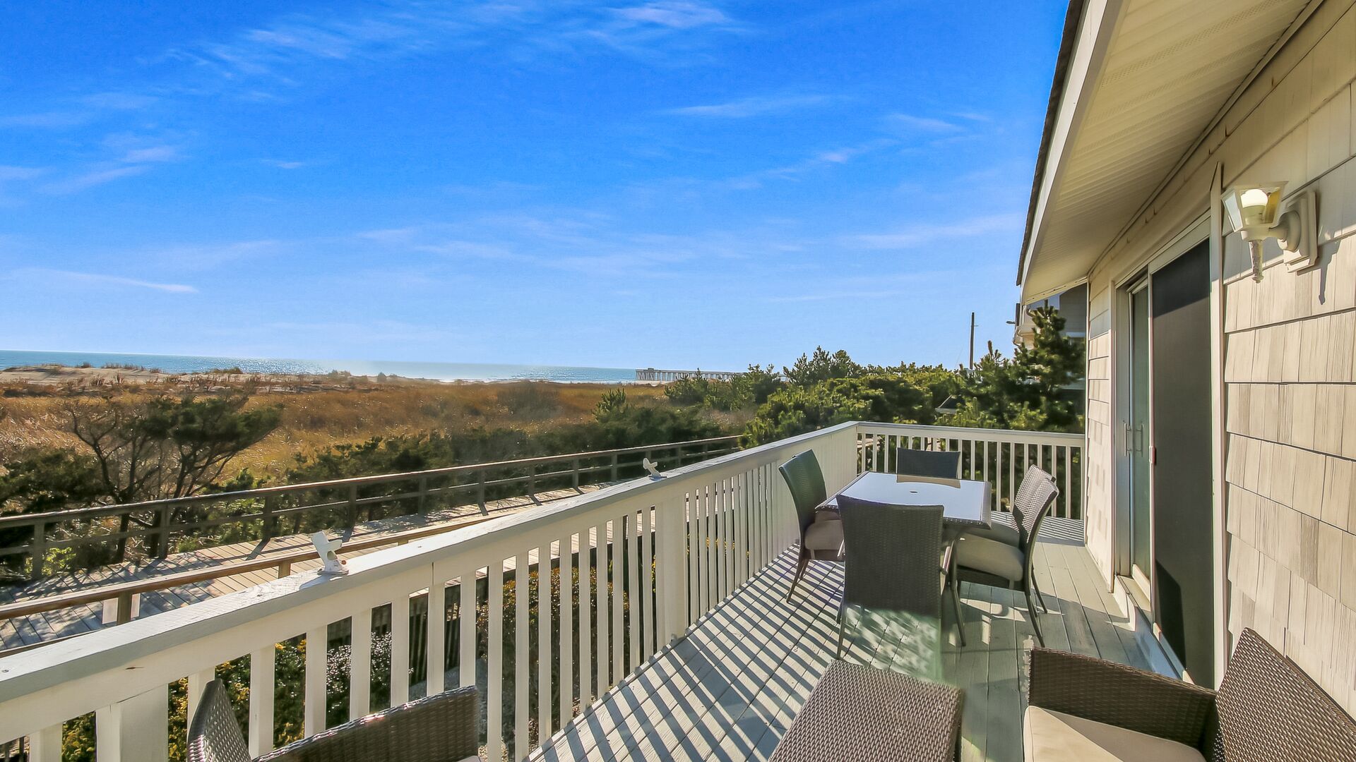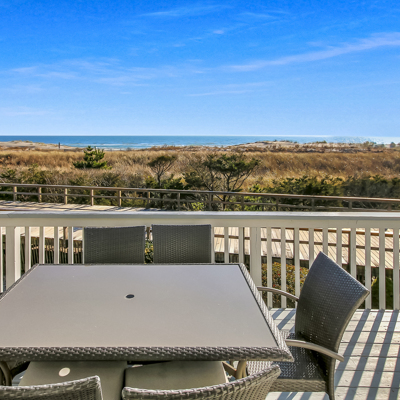This beach front 4 bedroom 2 bath town home offers beautiful views, pleasant and comfortable accommodations with the beach and boardwalk right outside your door.