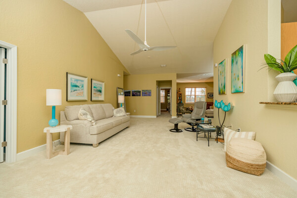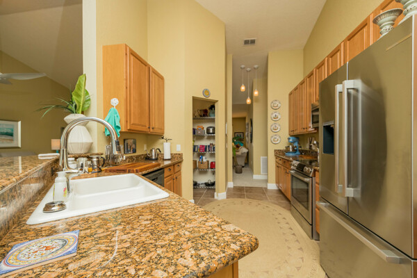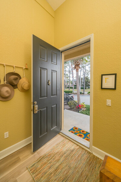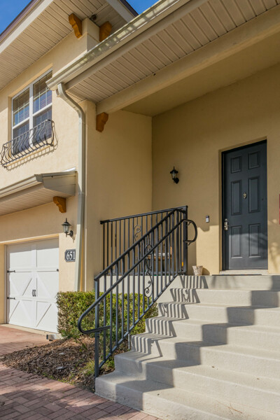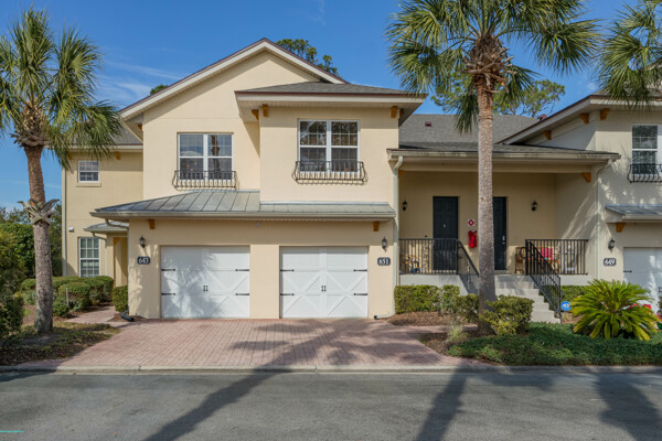 Simply magnificent. A decorator's dream, revealing the most enviable lifestyle, this 3 bedroom, 3 bath condo will knock your socks off! Drive into the oversized garage and put your cares away in this maintenance-free home overlooking the golf course. This Casa Bella condo offers high-end luxury at an affordable cost. The living area is all on the second floor, with numerous upgrades and attention to detail. Stay for hours on the fabulous balcony, or tuck into the primary suite, which is divine, with an eye-popping walk-in closet and huge bath, with a large soaking tub. Perfectly separated from the primary are 2 bedrooms, both of which are private and served by full baths steps away. The common areas are large, bright and relaxing. The kitchen is adorned with granite counters, new Bosch appliances, a new Kohler cast iron sink & faucet, and an open, well-functioning pantry. The dining area just off the kitchen, boasts a whimsical designer glass globe chandelier, which brightens the room on even the most cloudy days. The unusually spacious laundry room hosts a folding counter, cabinets for storage and a Speed Queen washer & dryer. New roof, Culligan soft water system, ceiling fans, mirrors, light fixtures, window treatments, hot water heater and almost new A/C, offer a welcomed change from the ordinary. Other resort-style amenities include a pool, fitness room, community access to the intracoastal, large clubhouse and more. Find your paradise in this quiet, upscale condo only minutes to the unparalleled sandy beaches of St. Augustine and its iconic historic downtown. Make it yours today!