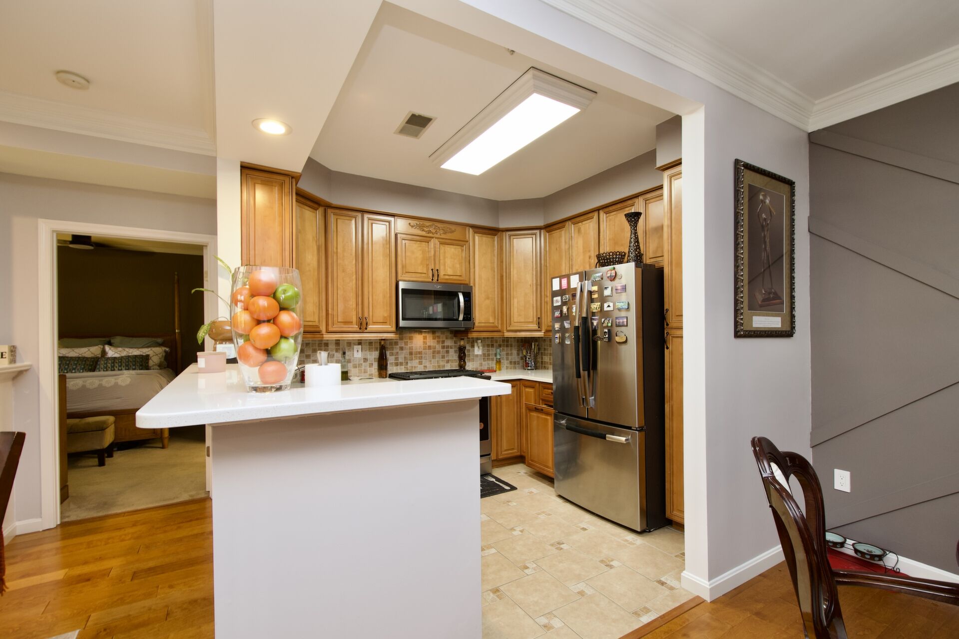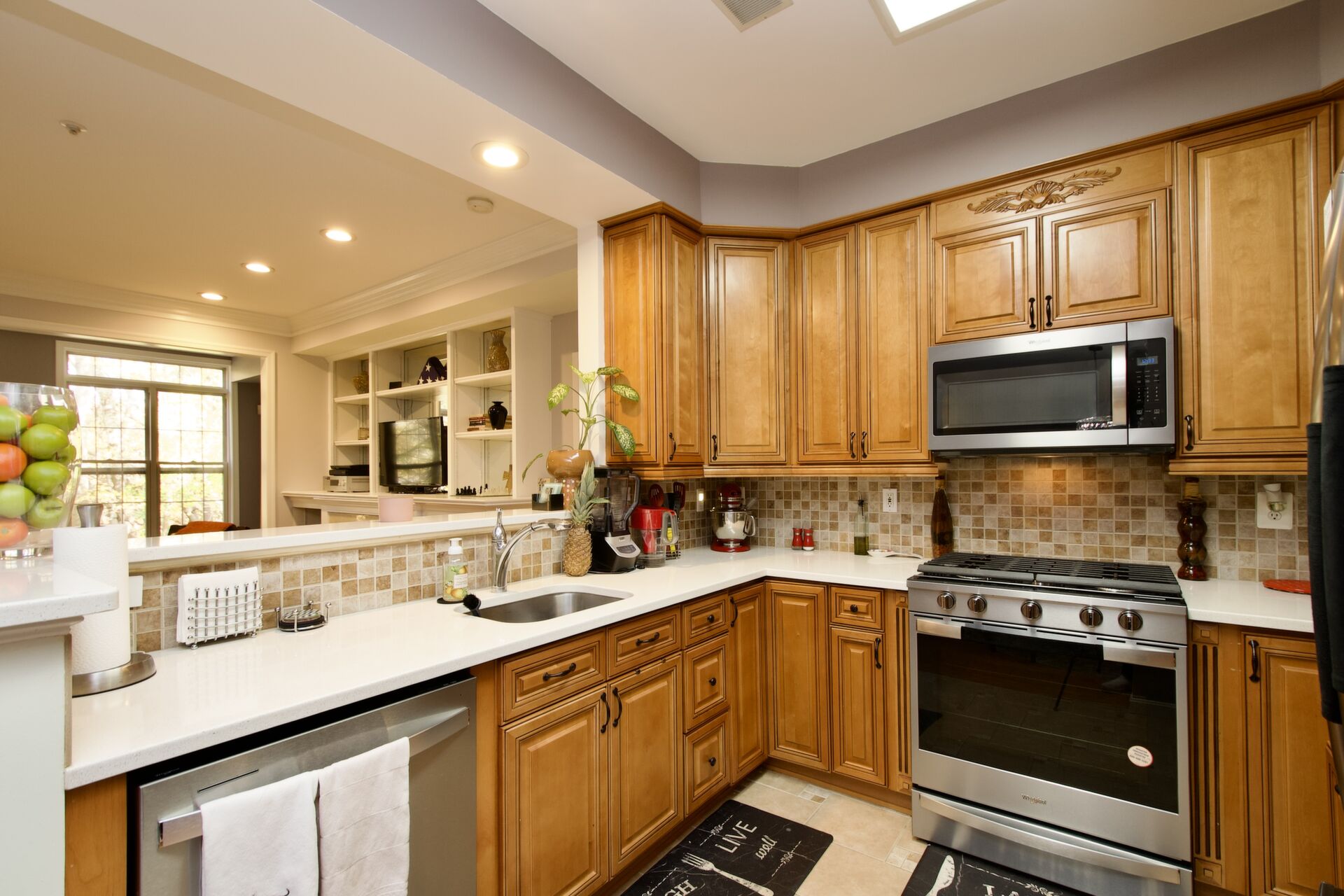 This home boasts style and grace. Enjoy island seating in the kitchen, large living room with cozy fireplace, sunroom that opens to your balcony and so much more.