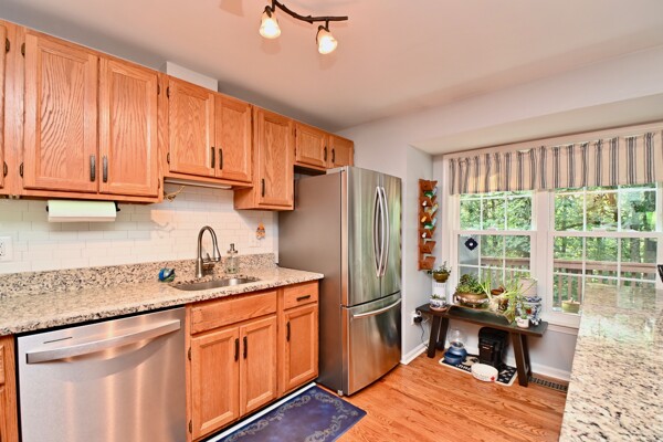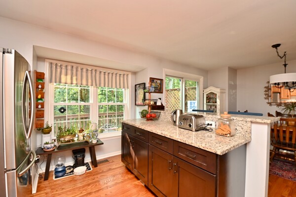 This lovely home features hardwood floors, updated kitchen and baths, primary bedroom with dual closets, finished recreation room with a cozy fireplace and so much more.