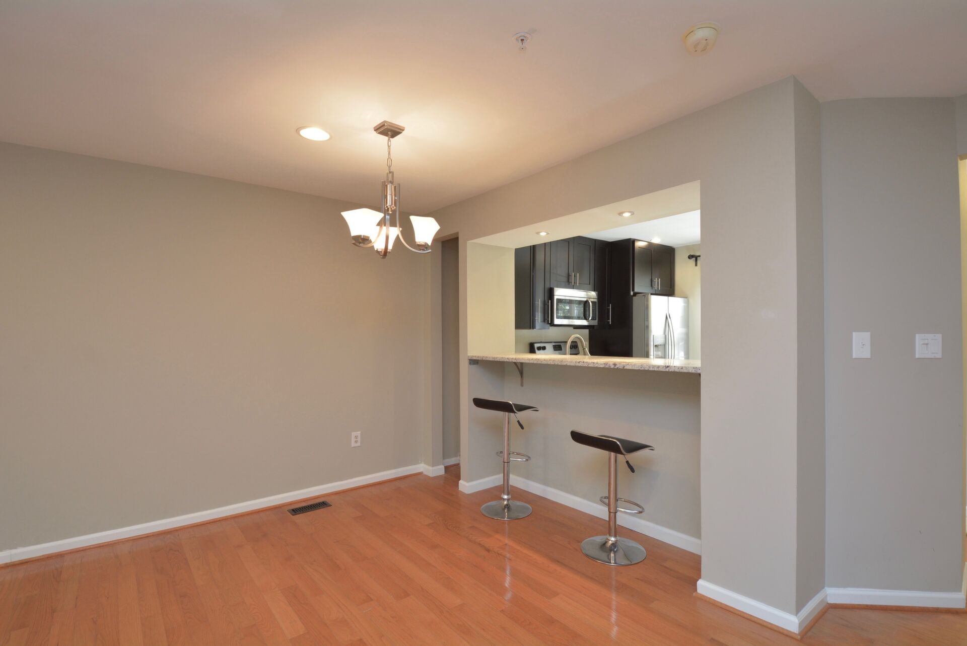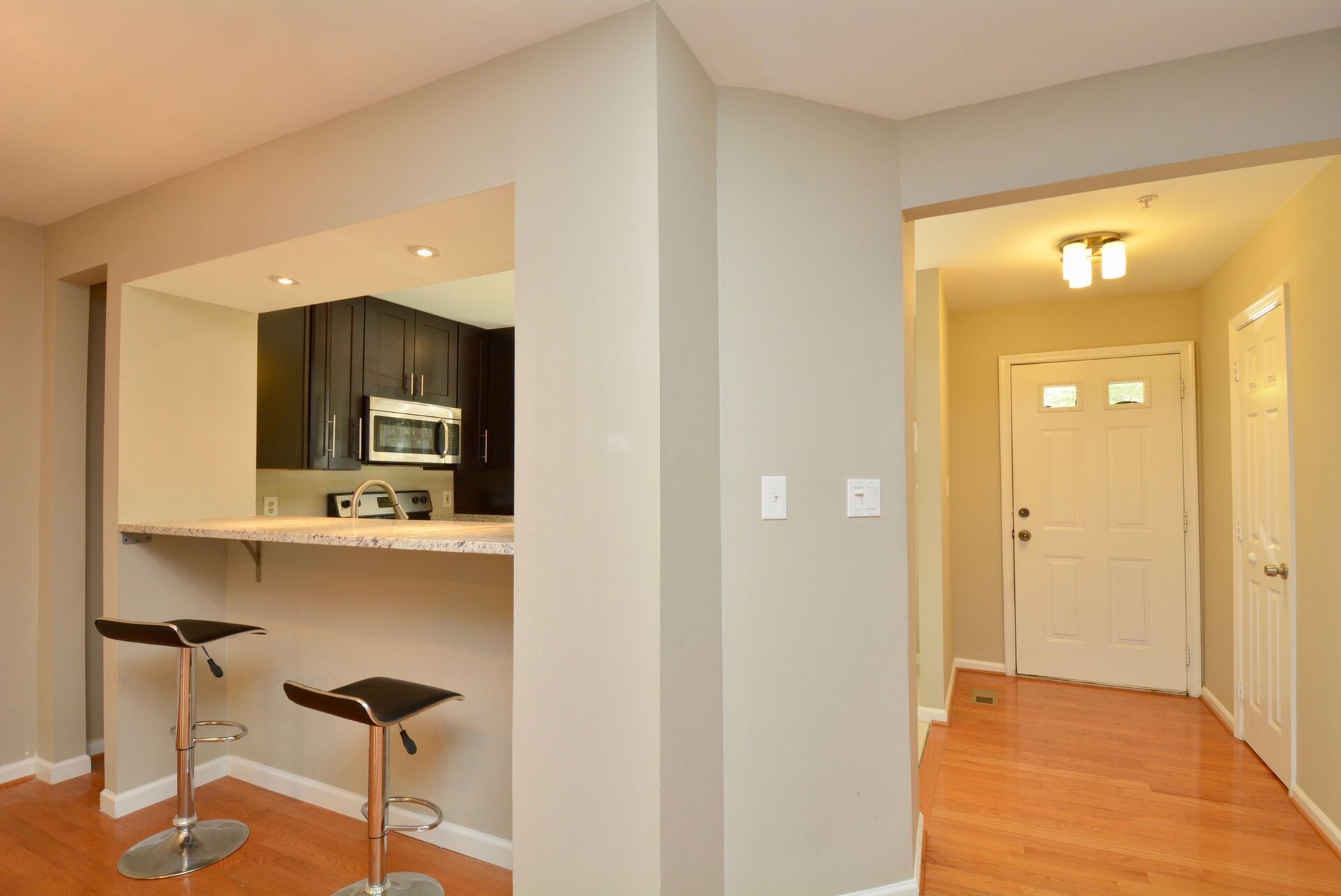 This home boasts hardwood floors, recessed lighting, a large primary bedroom with its own bath and dual closets.