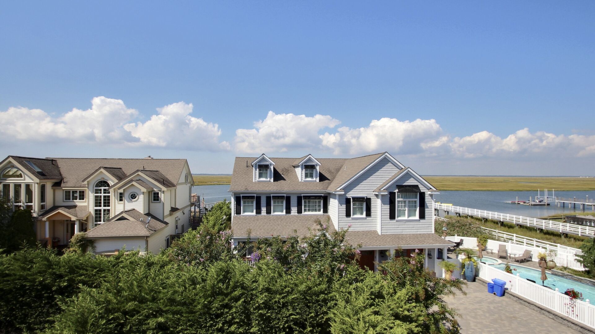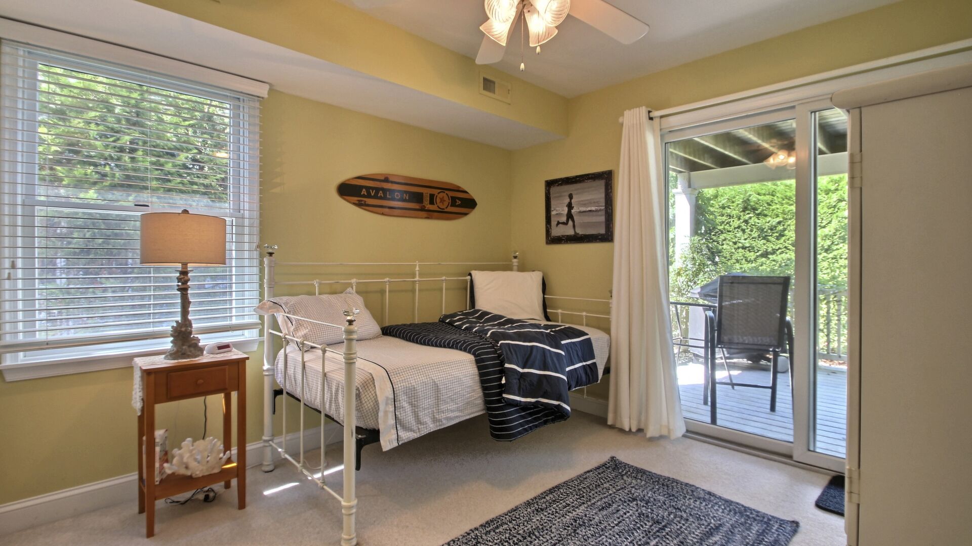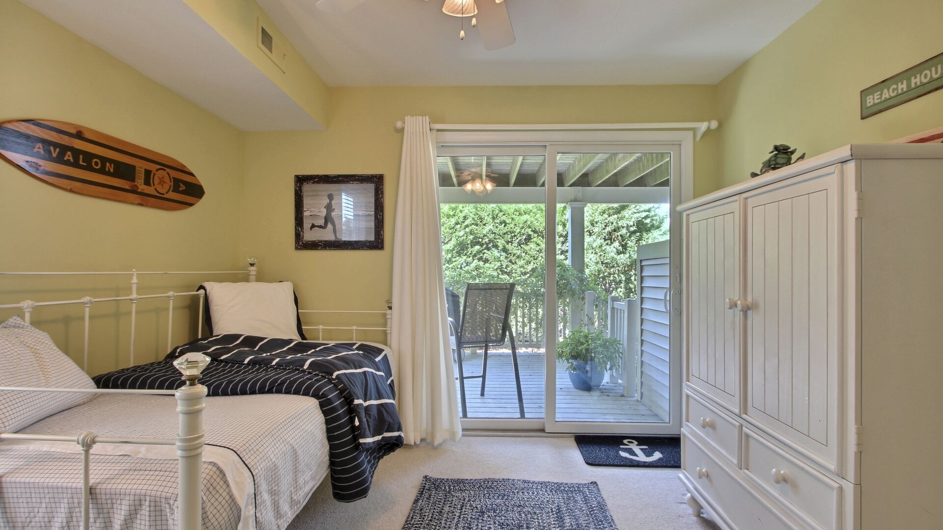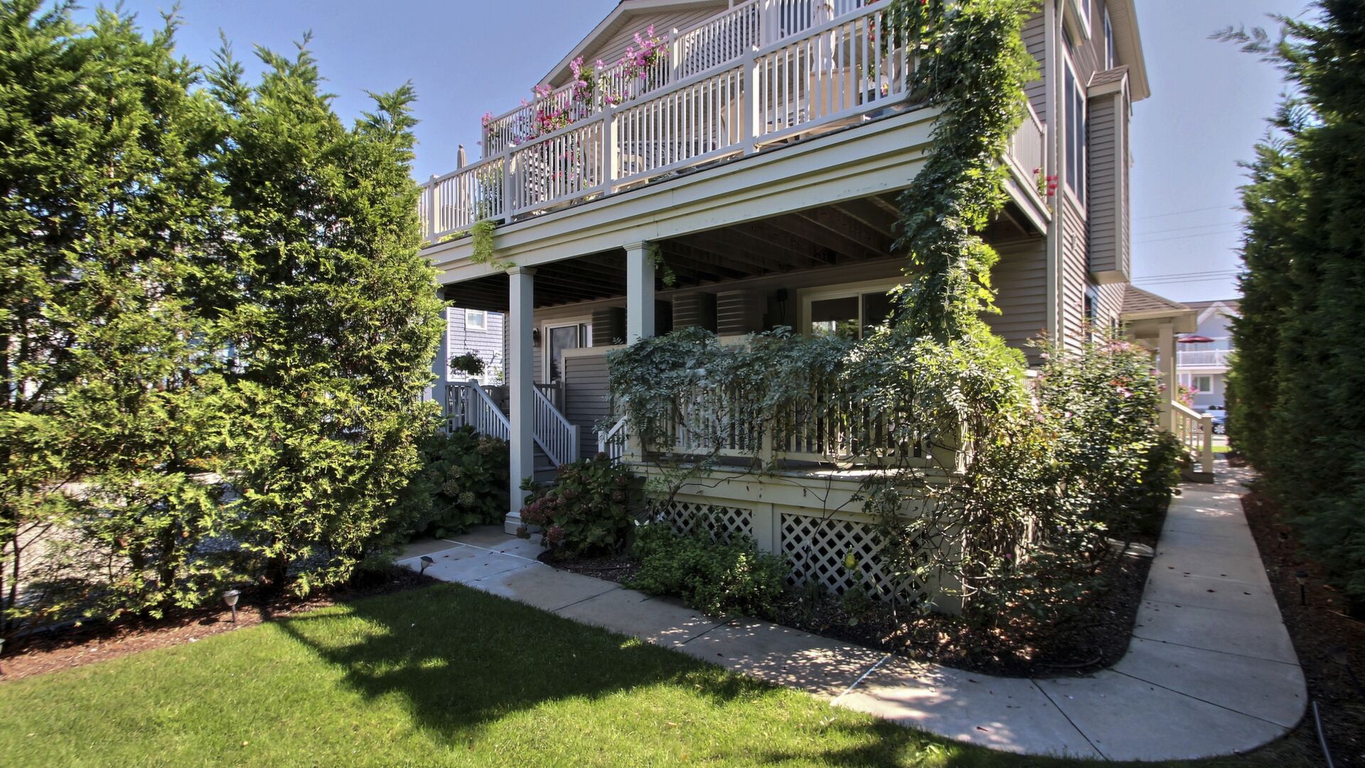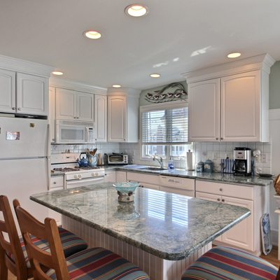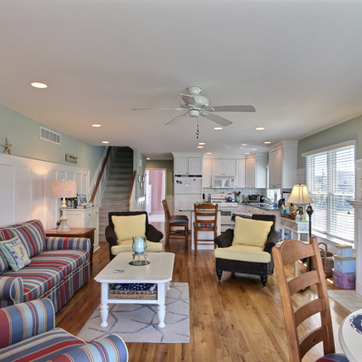 This beautiful townhome in the south-end of Avalon has 5 bedrooms, 4 beautiful full baths, is beautifully furnished and a very short walk to Avalon’s uncrowded south-end beaches. Home has central air, internet access, garage, off-street parking, bay views, 3 decks with furniture with views of the bay and lovely yard. Owner provides 9 beachtags for use during your stay.