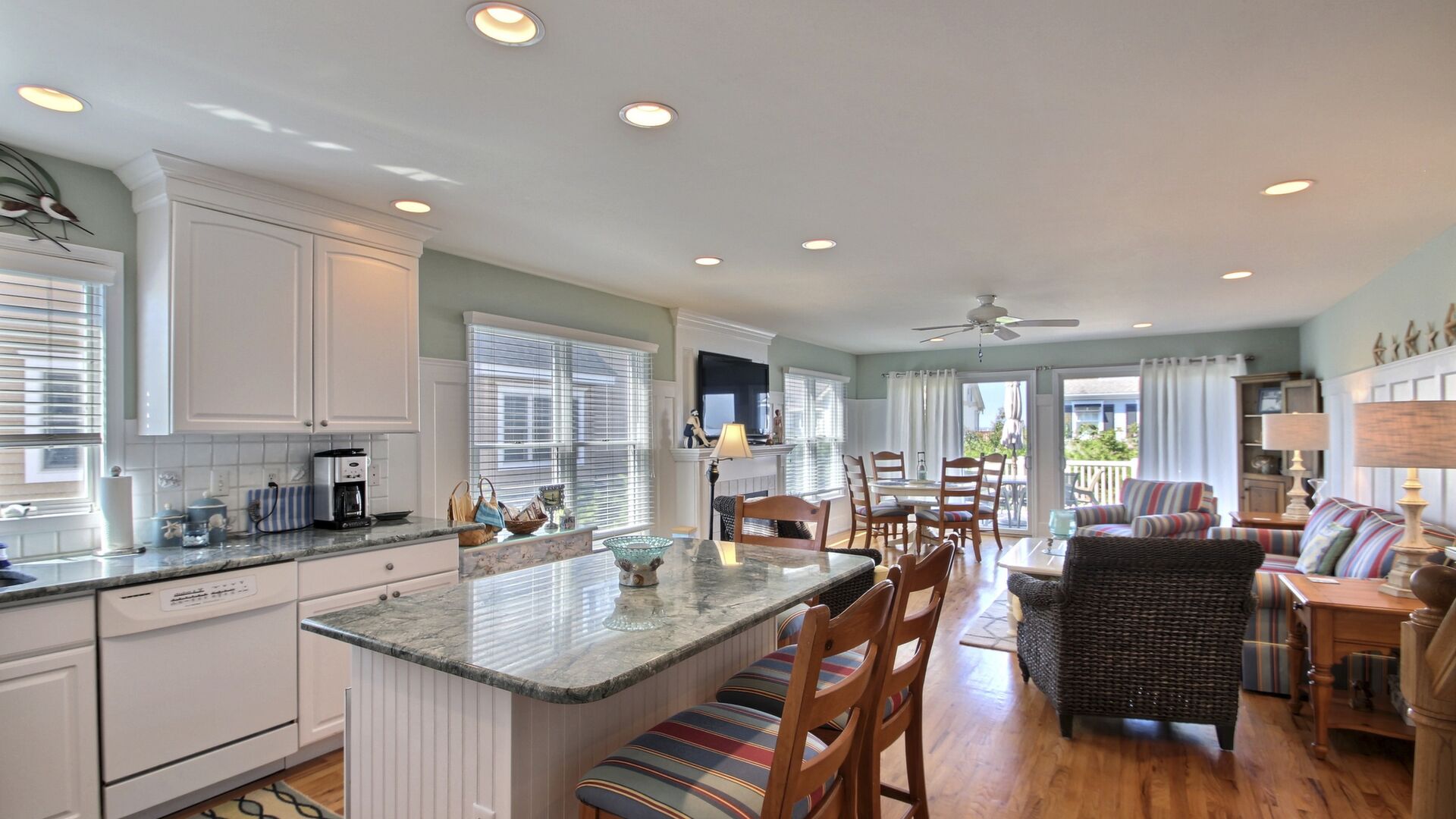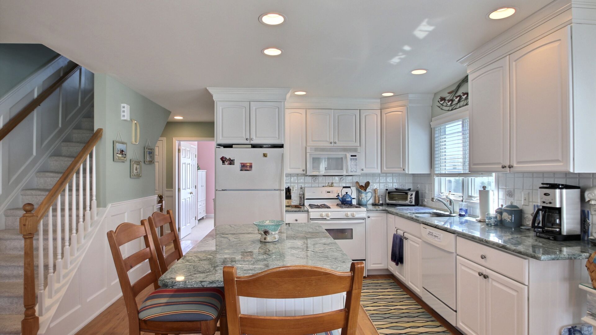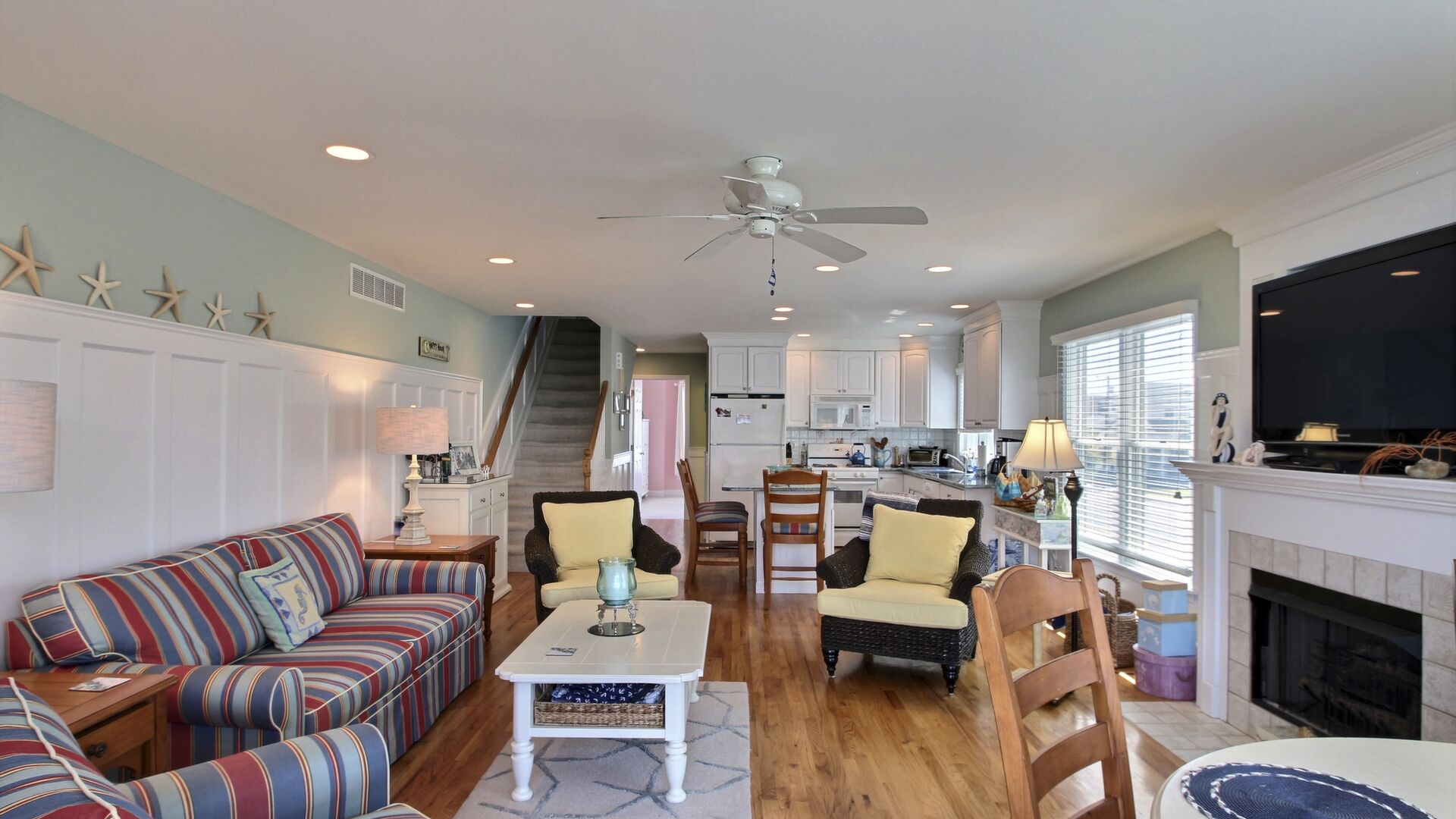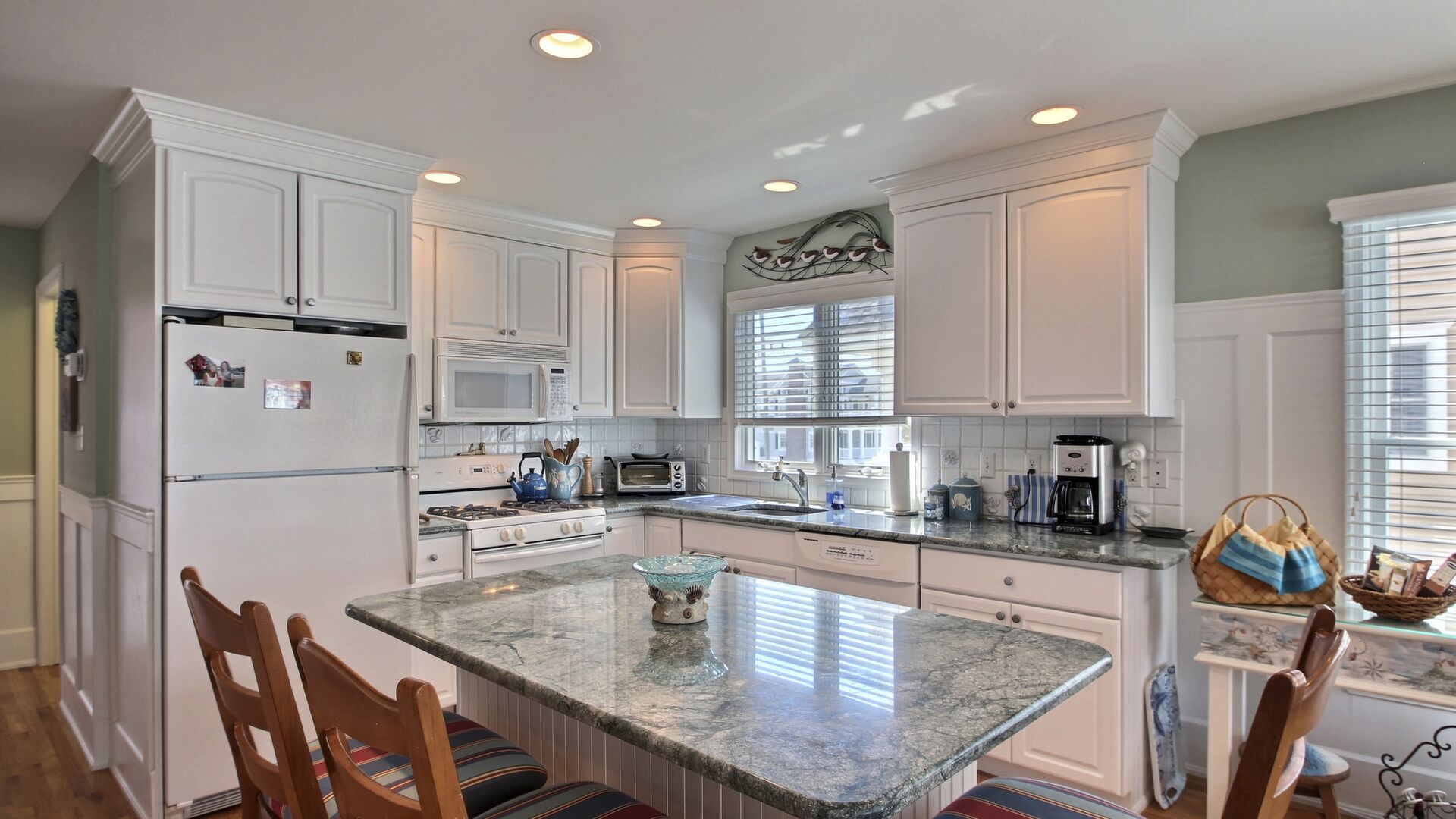 This beautiful townhome in the south-end of Avalon has 5 bedrooms, 4 beautiful full baths, is beautifully furnished and a very short walk to Avalon’s uncrowded south-end beaches. Home has central air, internet access, garage, off-street parking, bay views, 3 decks with furniture with views of the bay and lovely yard. Owner provides 9 beachtags for use during your stay.