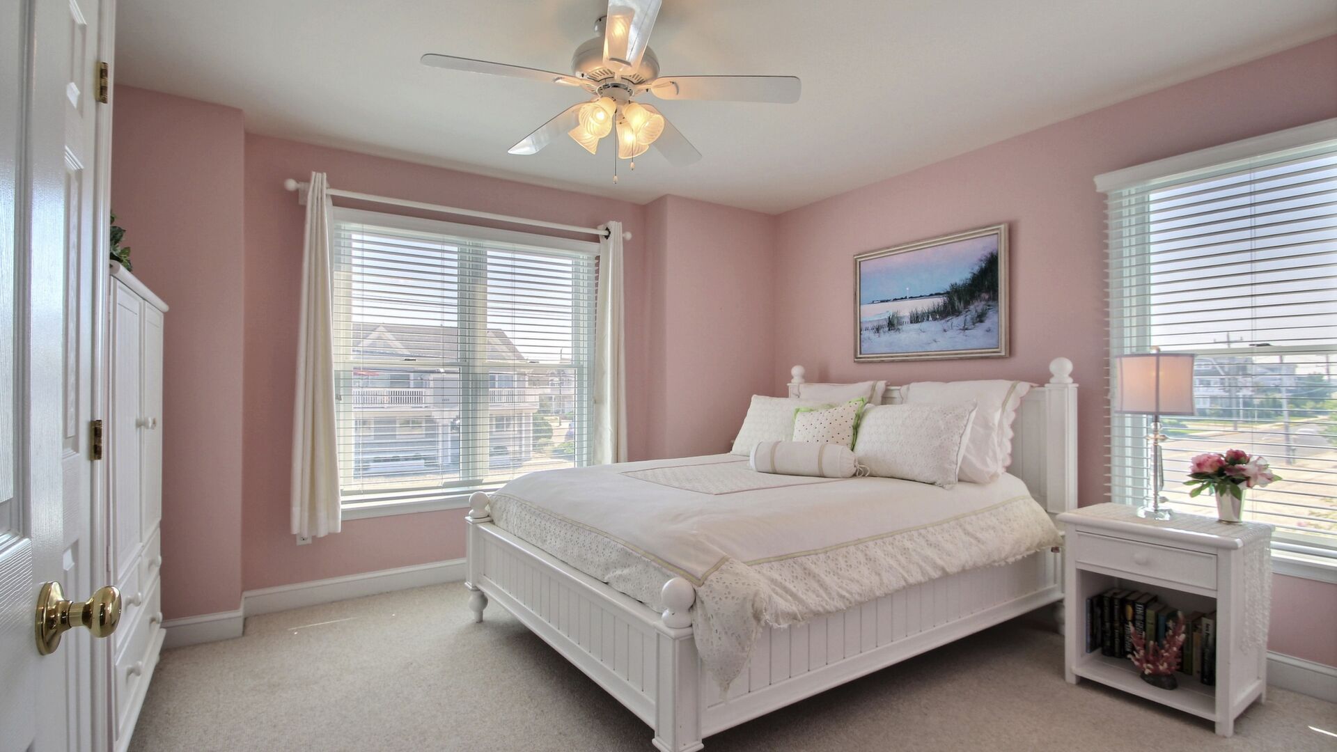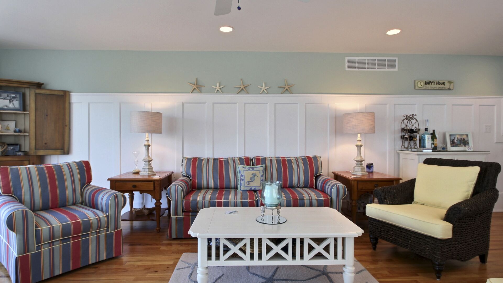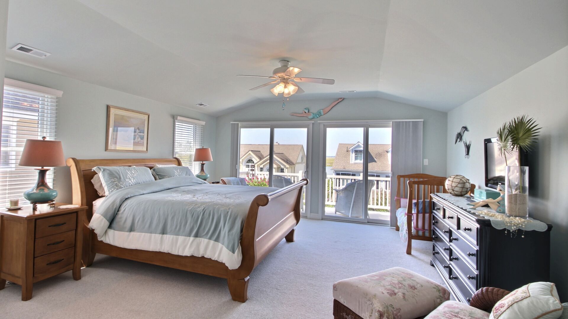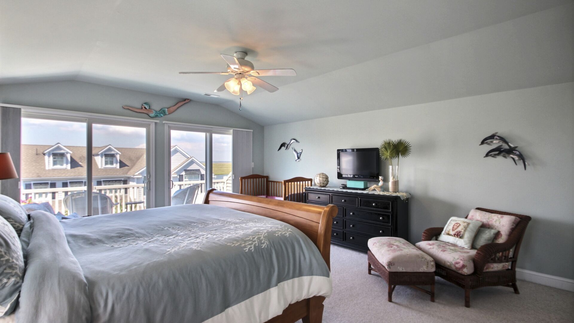 This beautiful townhome in the south-end of Avalon has 5 bedrooms, 4 beautiful full baths, is beautifully furnished and a very short walk to Avalon’s uncrowded south-end beaches. Home has central air, internet access, garage, off-street parking, bay views, 3 decks with furniture with views of the bay and lovely yard. Owner provides 9 beachtags for use during your stay.