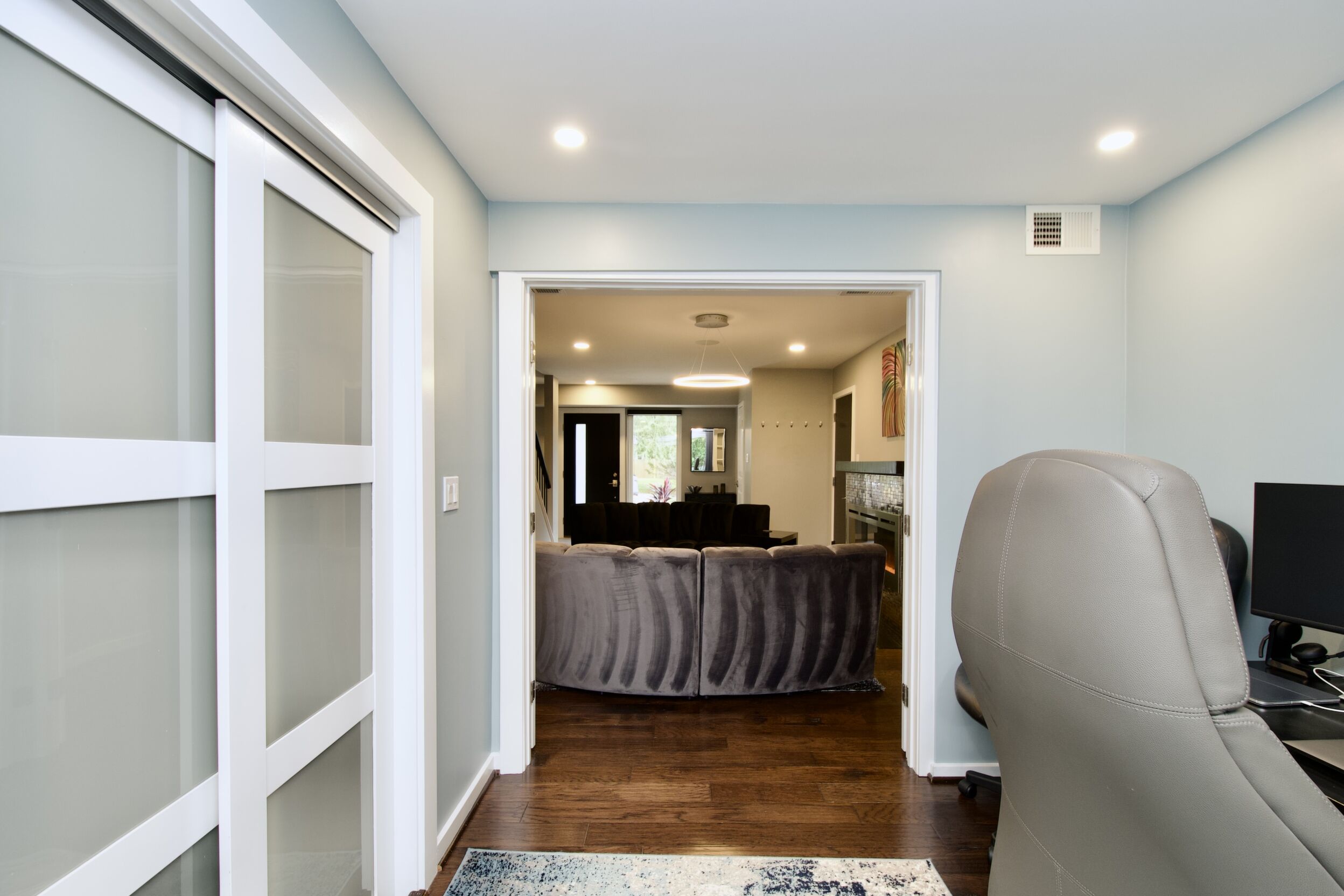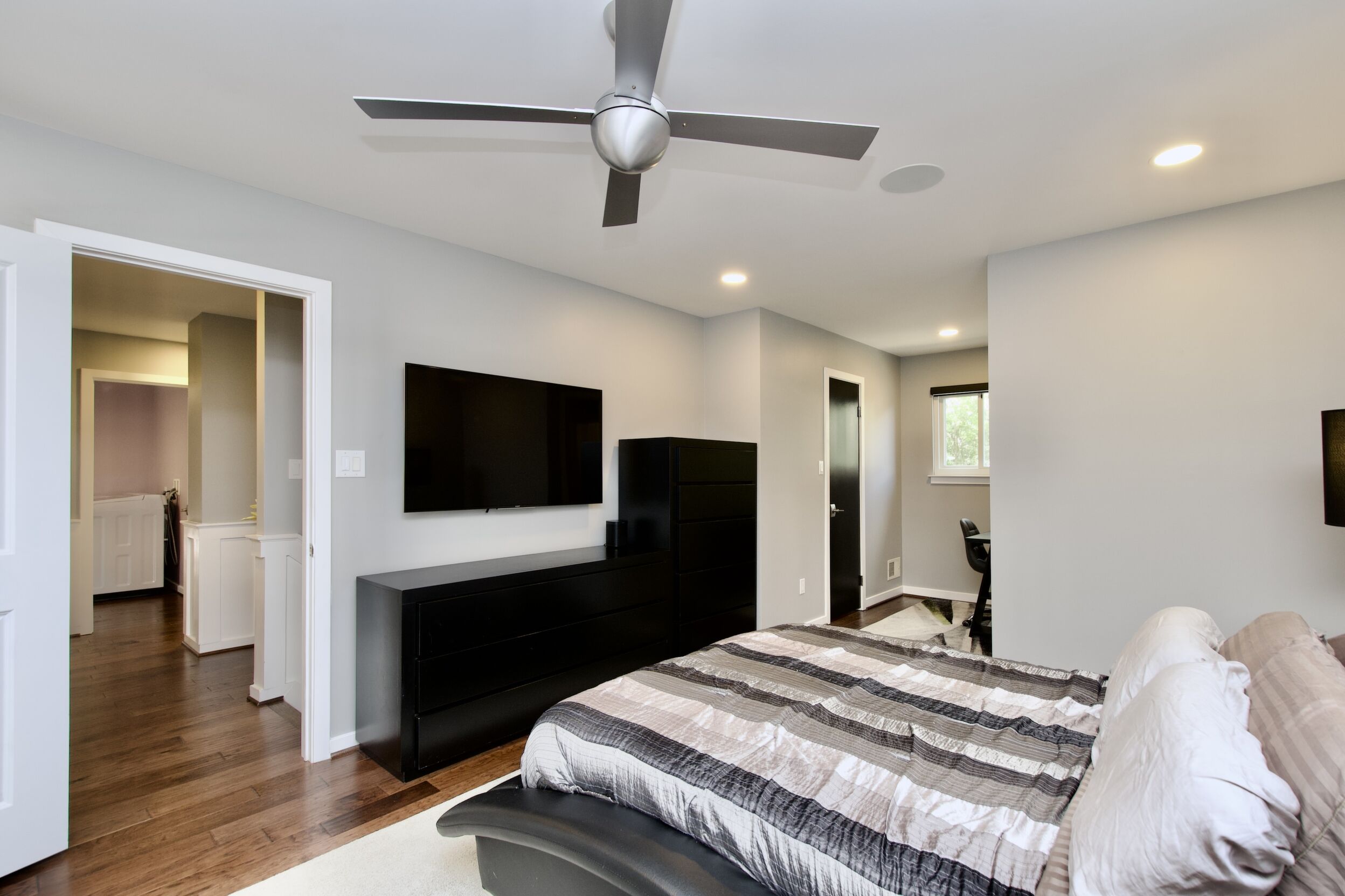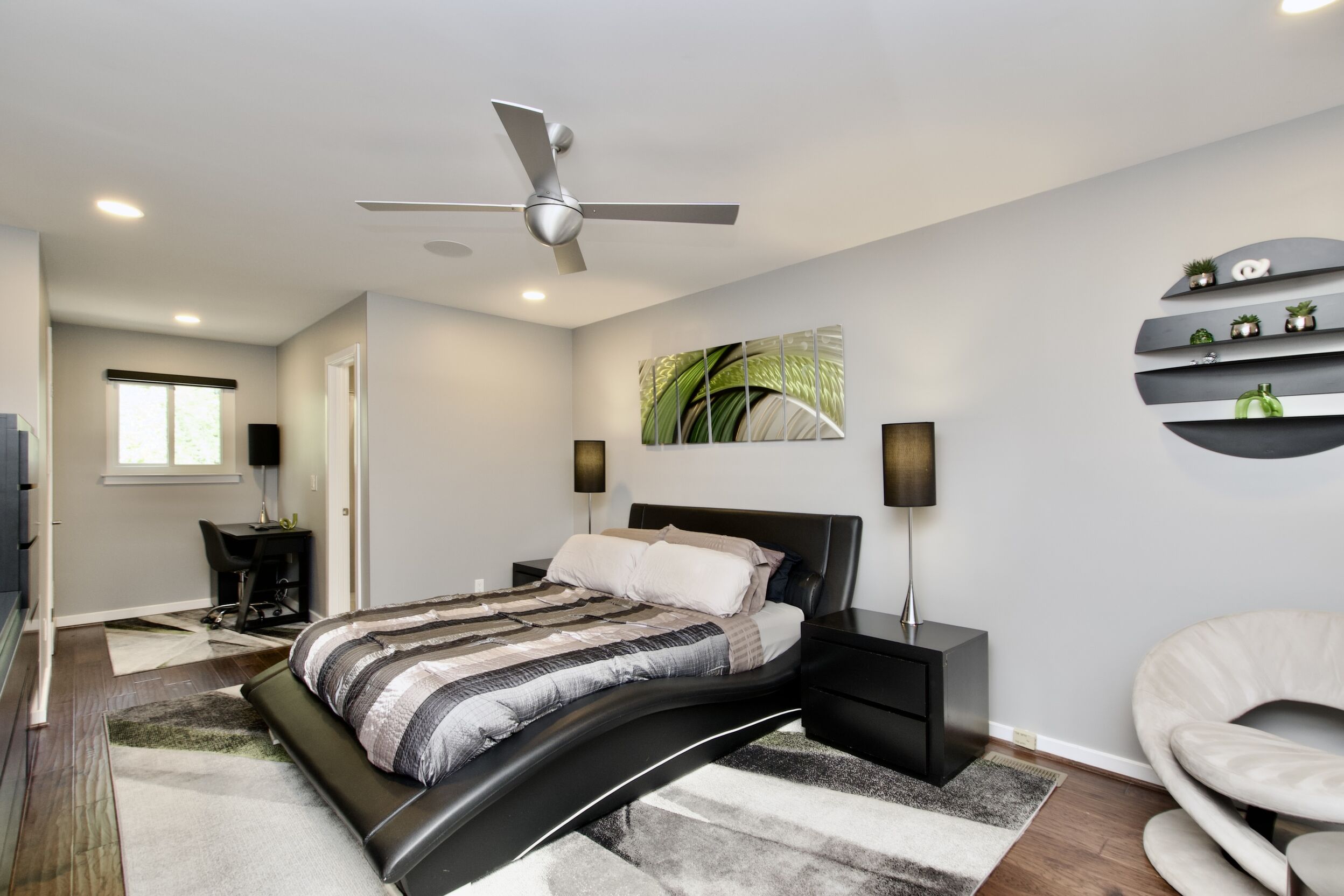 Welcome to this sleek and modern oasis in the heart of Alexandria. Step inside to find a spacious family room complete with a cozy fireplace, perfect for gathering with loved ones on chilly evenings. The elegant living and dining room is ideal for hosting dinner parties or simply relaxing in style. The primary bedroom is a true retreat, boasting a walk-in closet, private bath, and a private deck where you can enjoy your morning coffee in peace. Outside, a large patio overlooks a well-manicured backyard, providing the perfect space for outdoor entertaining or simply unwinding after a long day. This property is truly a gem, offering a perfect blend of luxury and comfort. Don't miss your chance to make this stunning home yours and experience the best of Alexandria living.