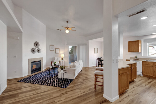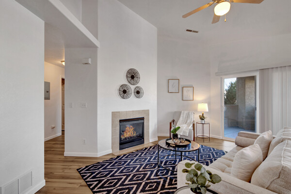 Welcome to this inviting, well maintained condo, nestled within a highly sought-after complex. From the moment you step inside, you'll be greeted by a sense of warmth and comfort that will make you feel right at home. This top-floor unit has been thoughtfully updated with fresh paint, new blinds and new LVT flooring throughout, giving it a modern and new feel. The generous size kitchen, complete with all appliances and a spacious pantry, offers ample countertop space, including a convenient bar top, perfect for preparing gourmet meals or hosting memorable gatherings. The living room, with its vaulted ceilings and a cozy gas fireplace, creates an inviting great room that's perfect for relaxation, especially during snowy nights. Step out from the living room onto your private covered balcony, which includes a handy storage unit. This outdoor space is large enough for a table and chairs, making it the ideal spot for enjoying warm Colorado summer nights. The primary bedroom is generously sized and includes a walk-in closet and an attached full bathroom, providing both comfort and privacy. Two additional spacious bedrooms share a well-appointed second full bathroom. This unit also offers the convenience of a washer and dryer, along with one assigned covered parking spot. The complex features a beautiful clubhouse nearby, complete with a recreation/gathering area, a well-equipped fitness room, and a large outdoor pool and hot tub. The meticulously maintained grounds further enhance the appeal of this wonderful community. Located in the vibrant Powers corridor, this property offers easy access to an abundance of conveniences, including restaurants, grocery stores, theaters, hospitals, and the airport. It's also conveniently close to schools and military installations. This property truly has it all and is ready for you to make it your cherished home. Don't miss the opportunity to experience the perfect blend of comfort and convenience that this condo offers.